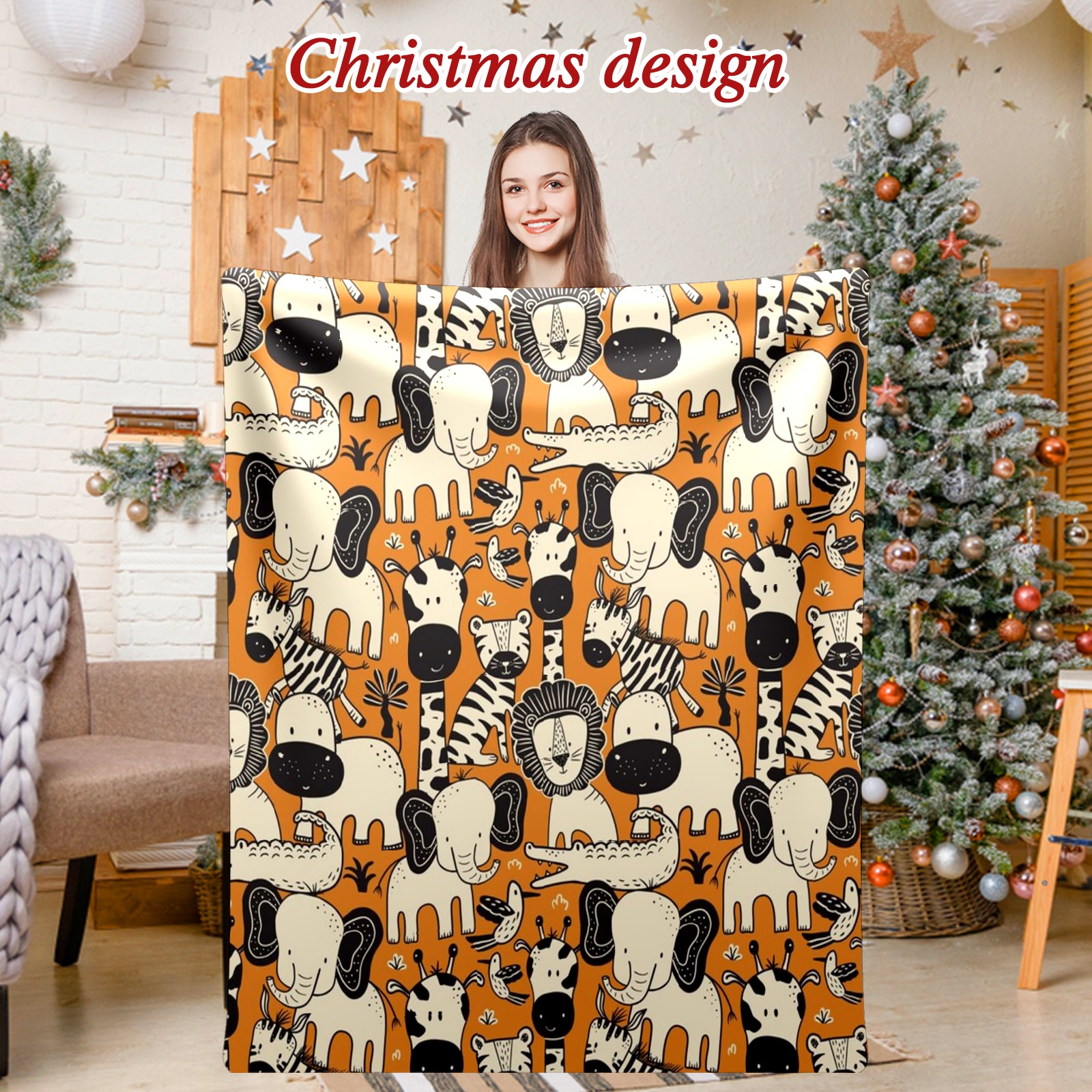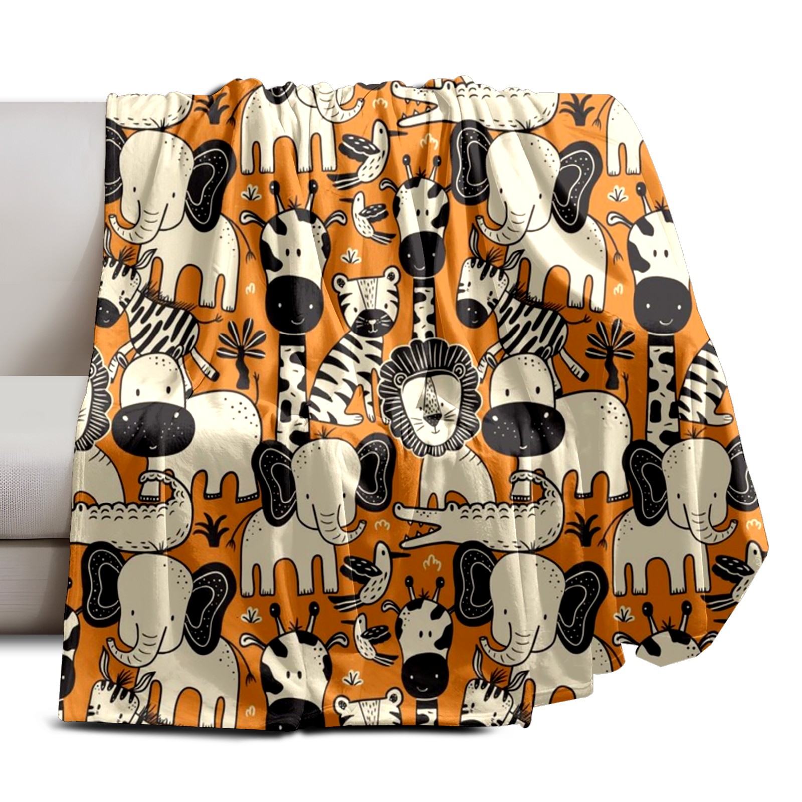 Премиальная фланелевая одеяло Orange Beige Animals
