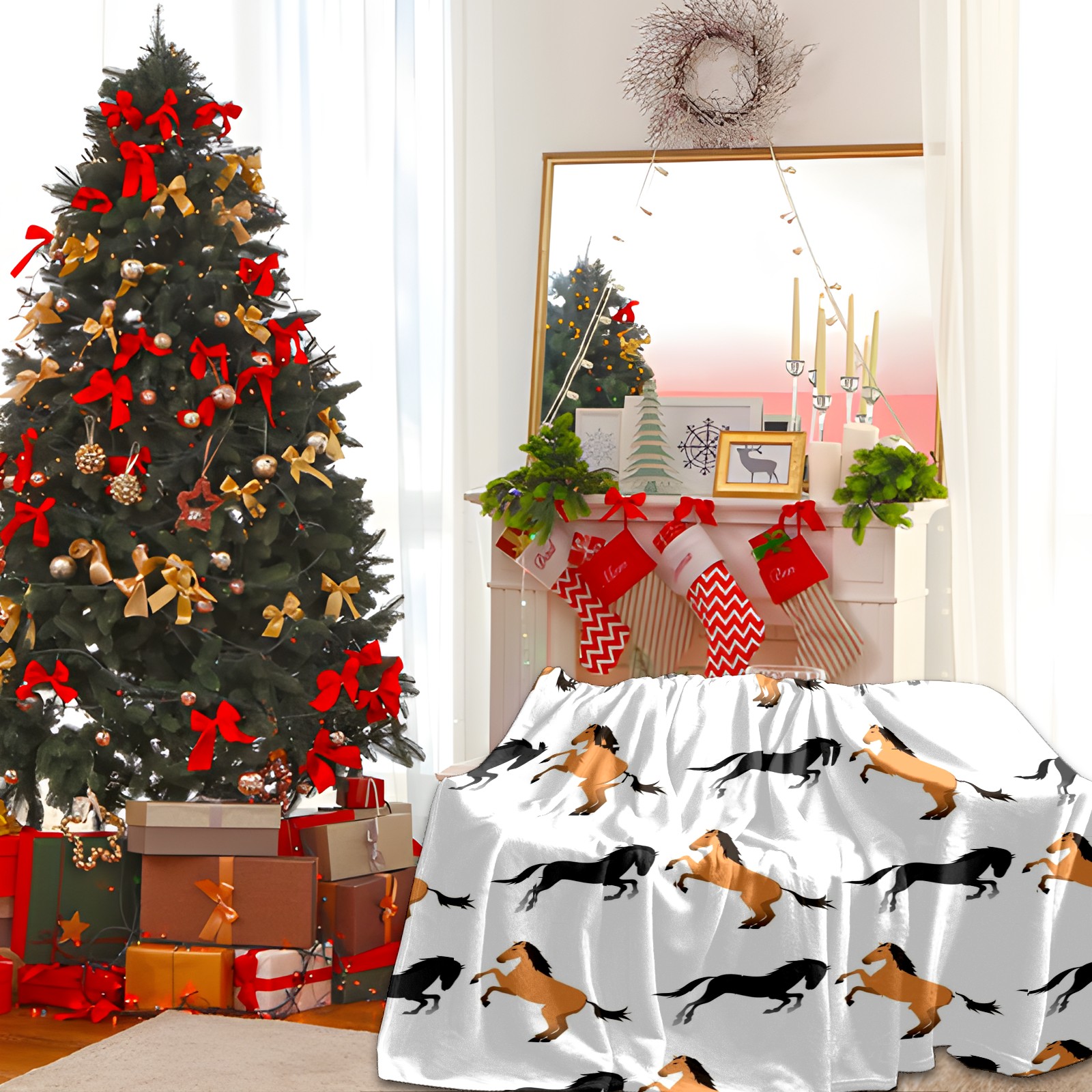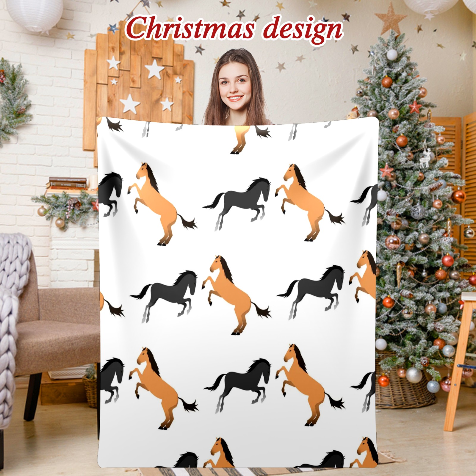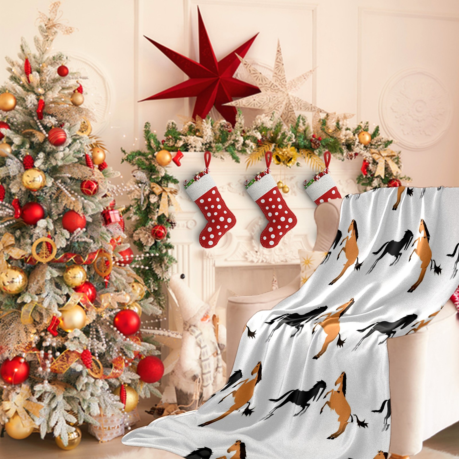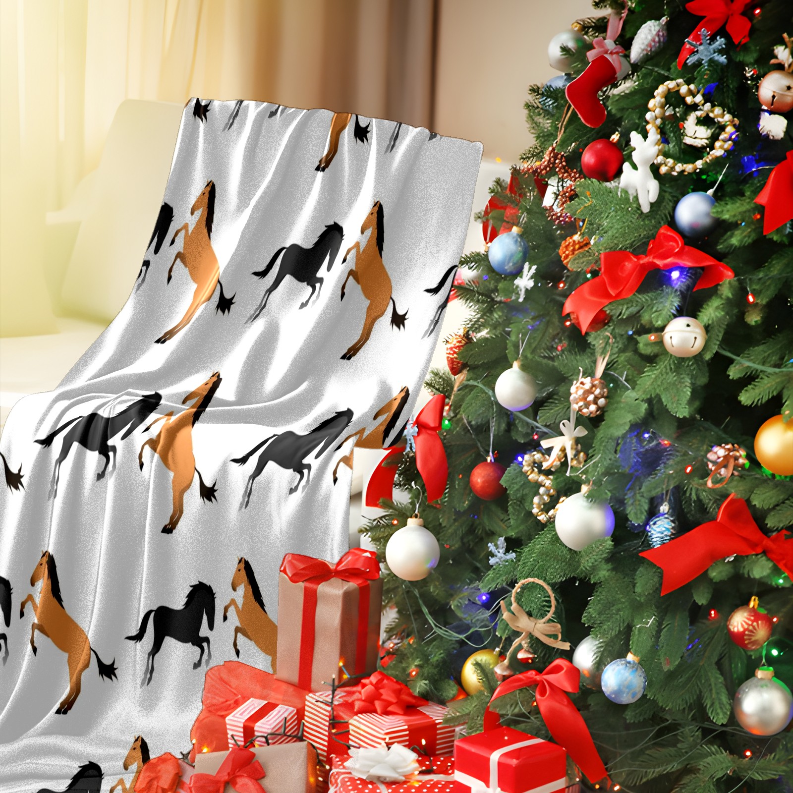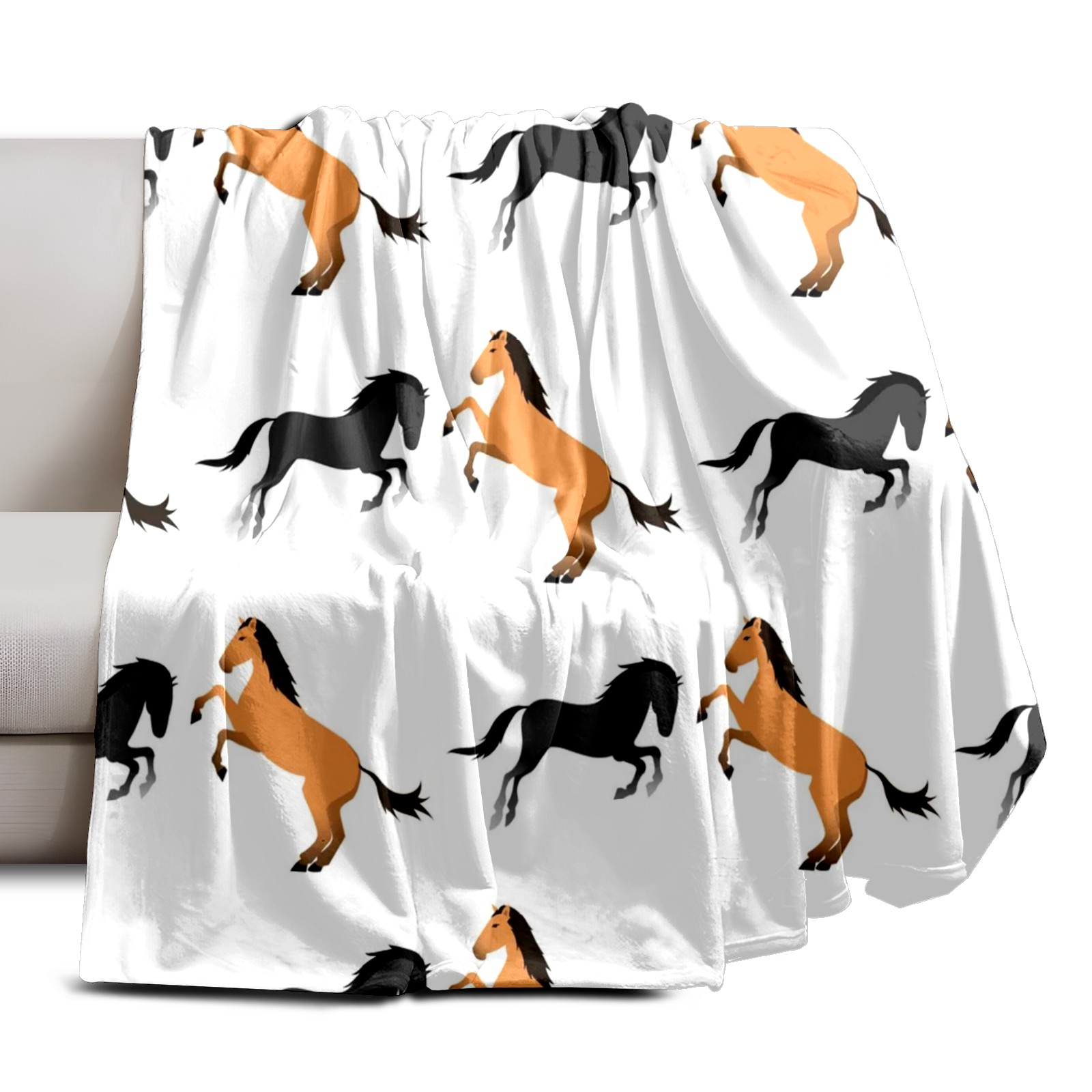 Премиальная фланелевая одеяло Grey Orange Horse
