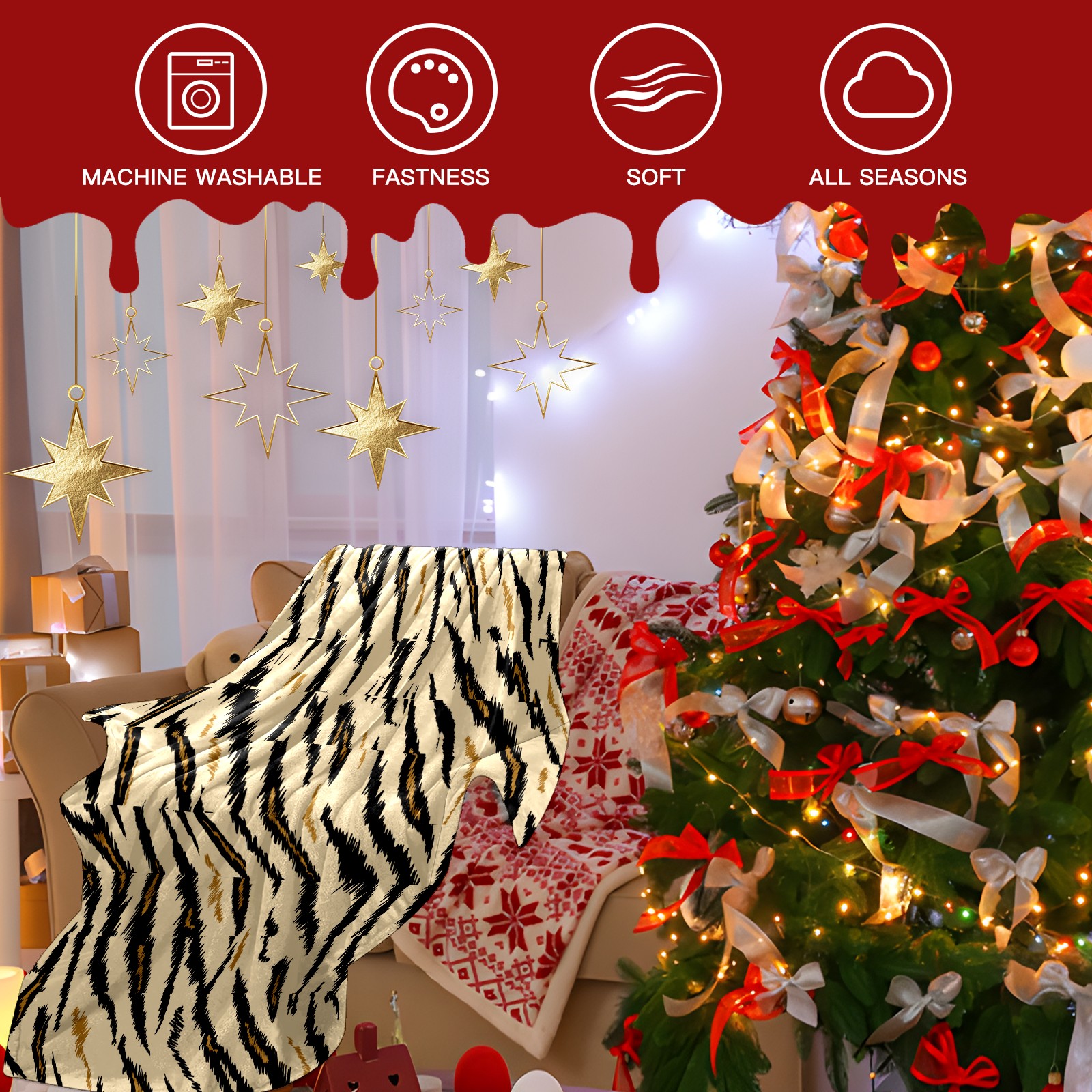 Премиальная фланелевая одеяло Khaki Black Tiger Print