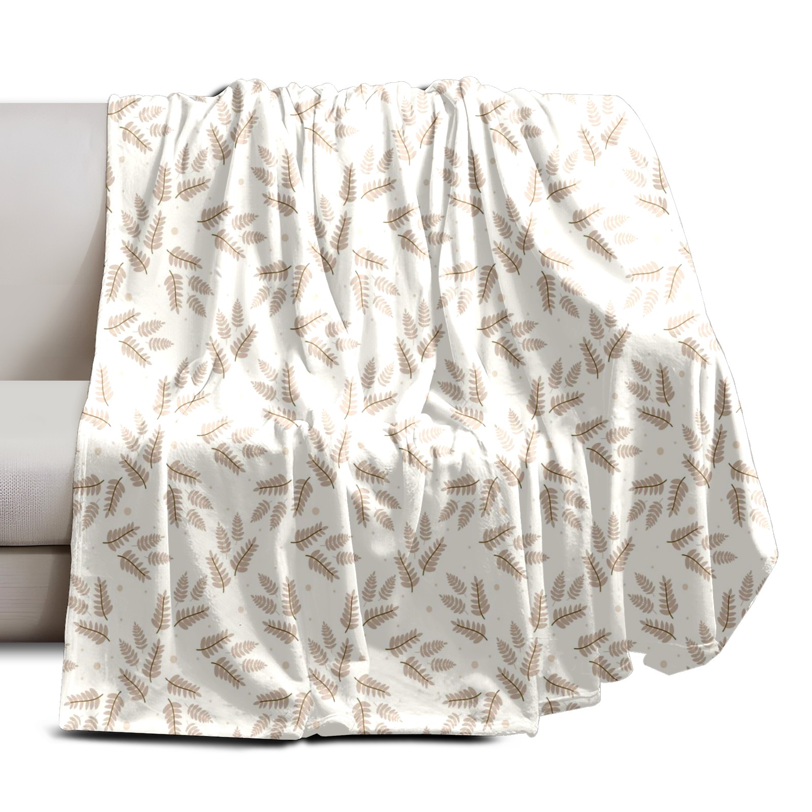Премиальная фланелевая одеяло Beige Leaves