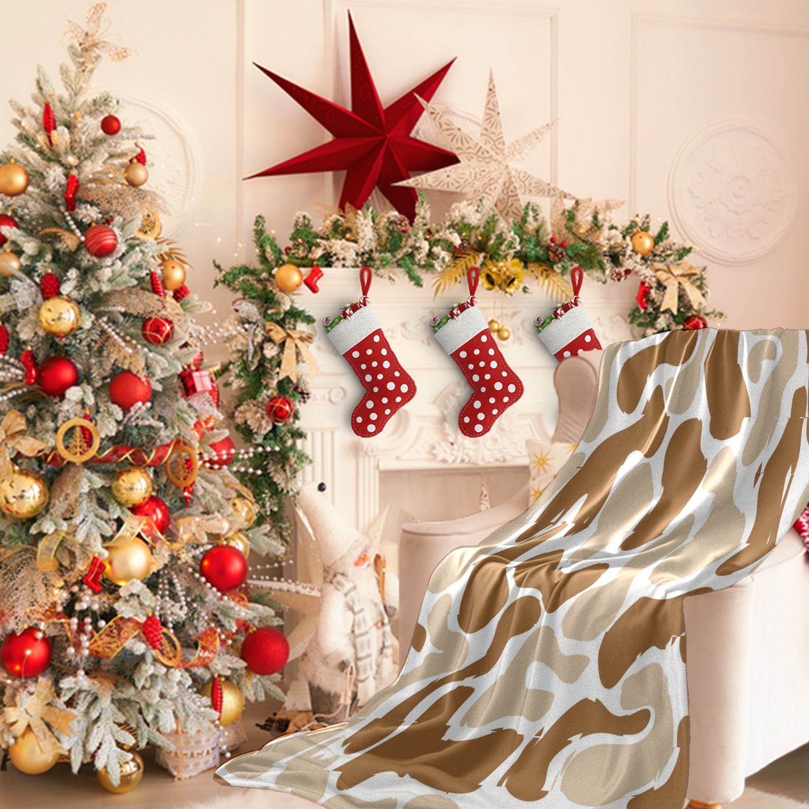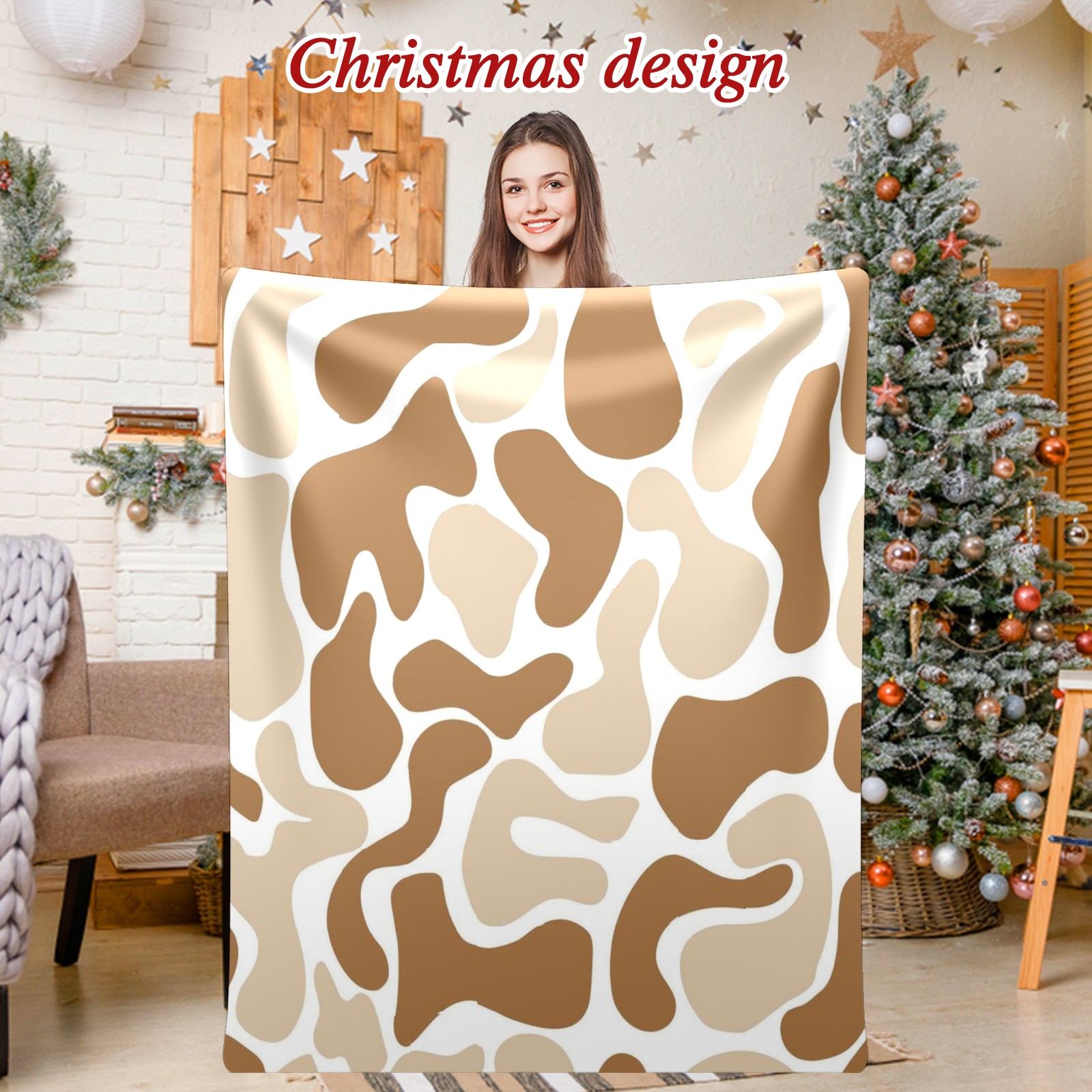 Премиальная фланелевая одеяло Beige Brown Spots
