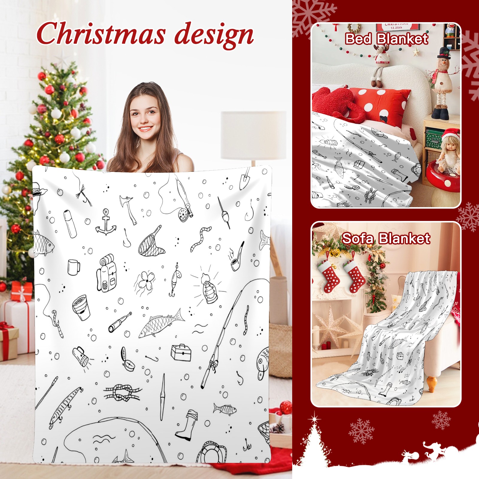 Премиальная фланелевая одеяло Fishing