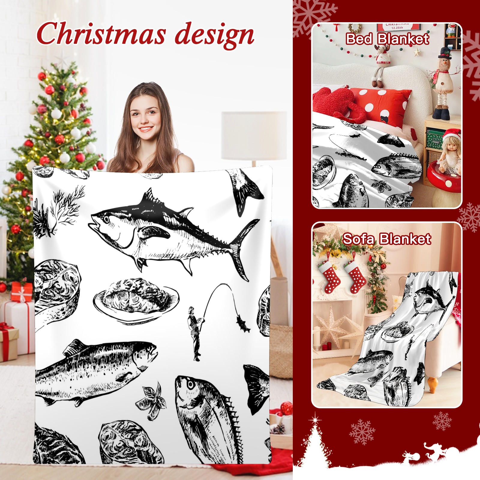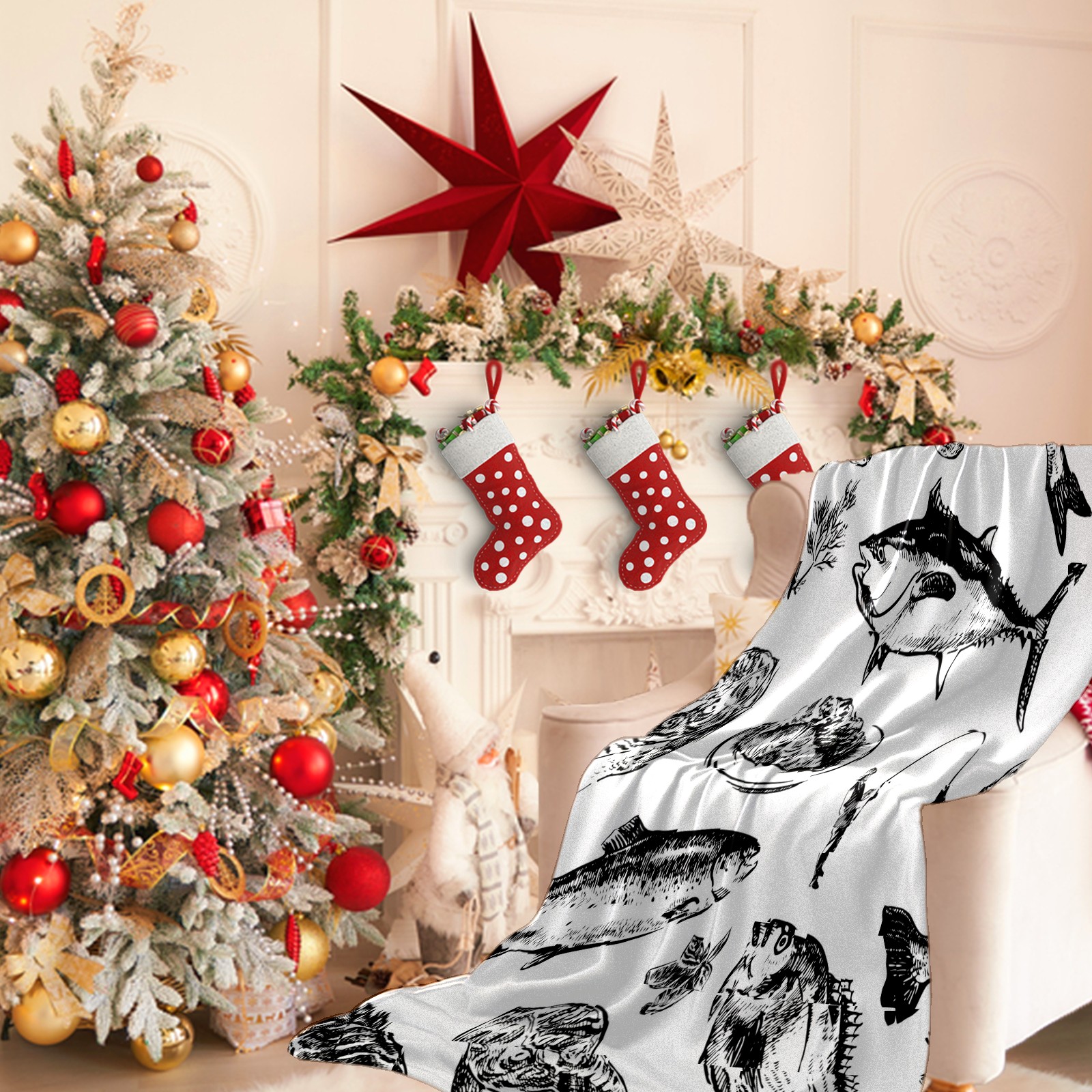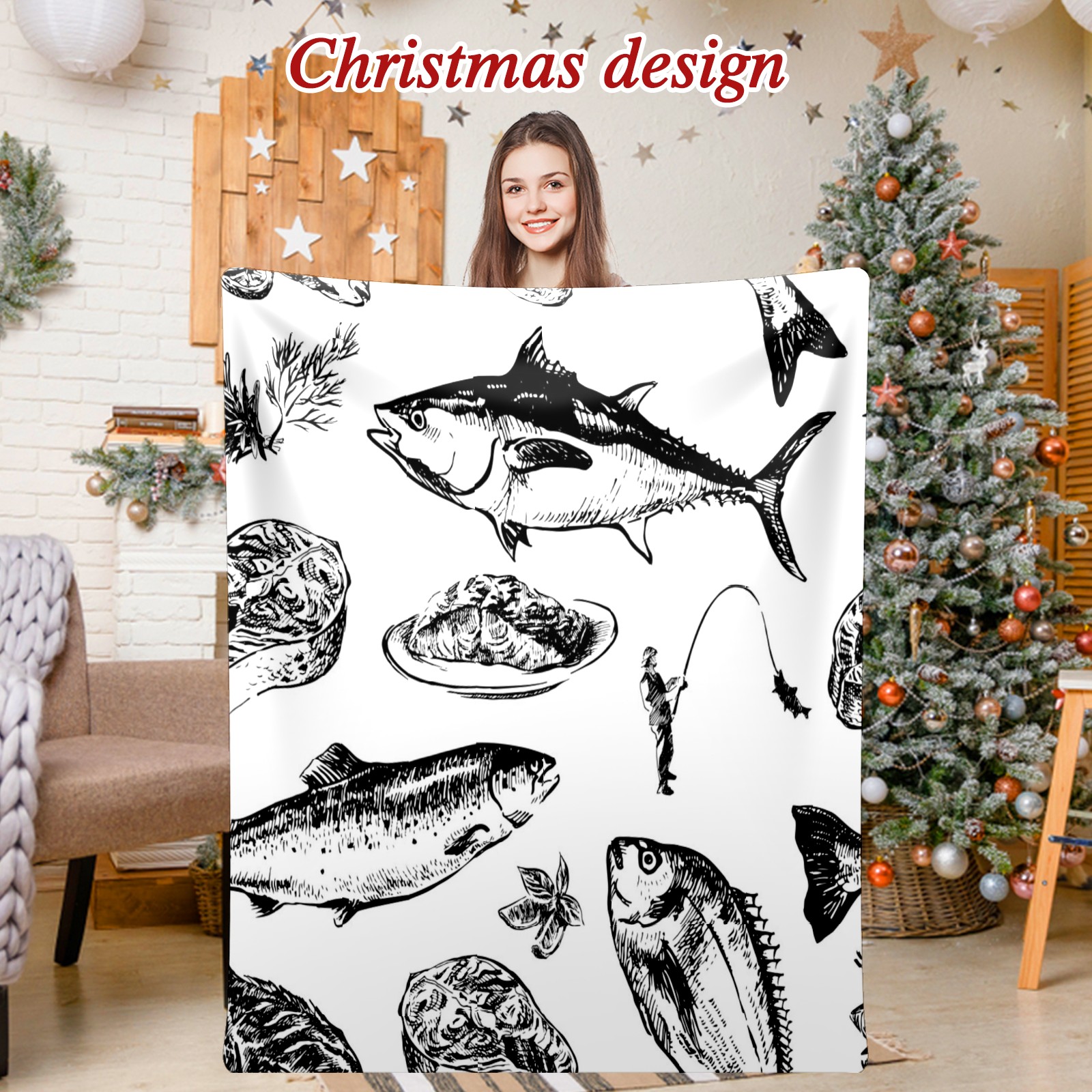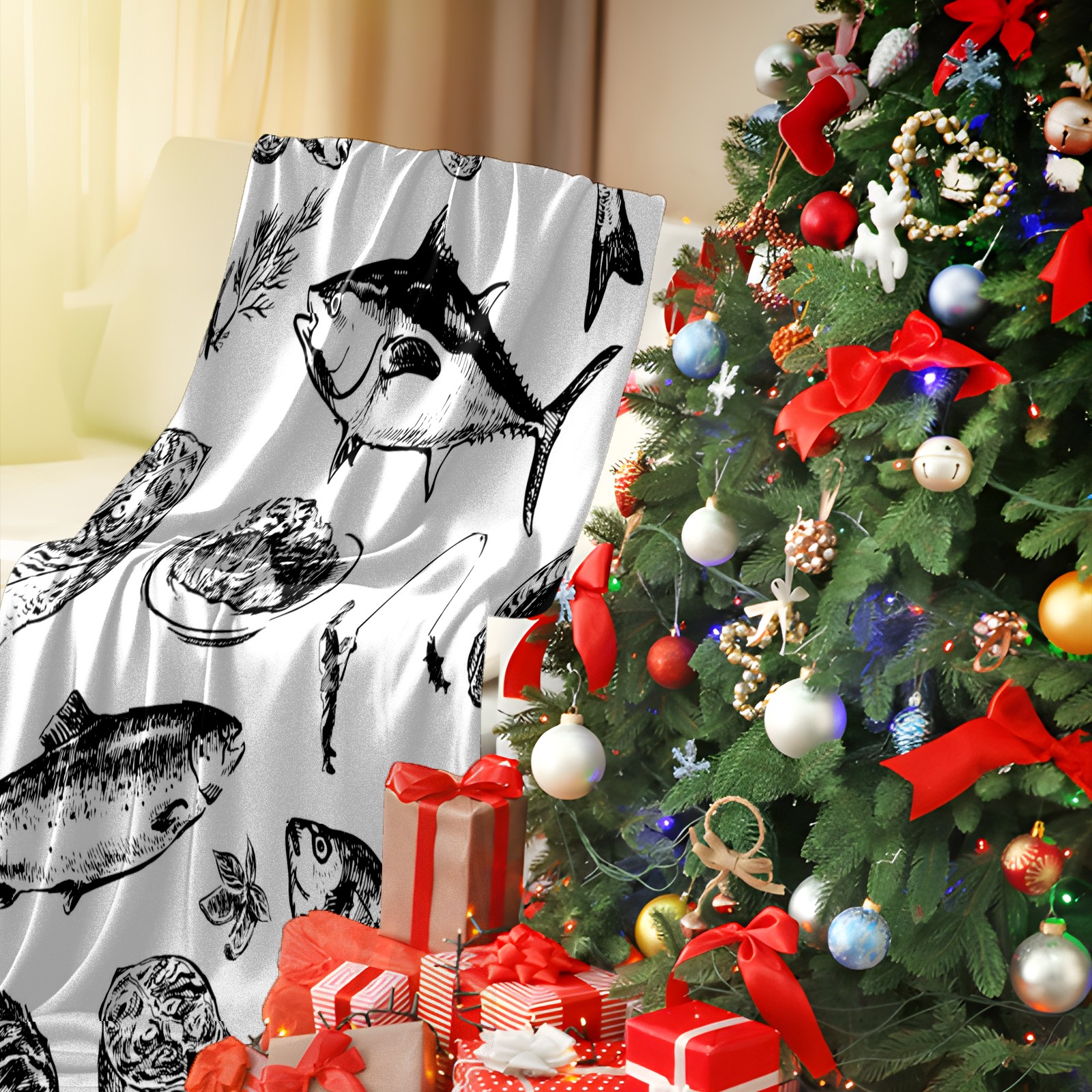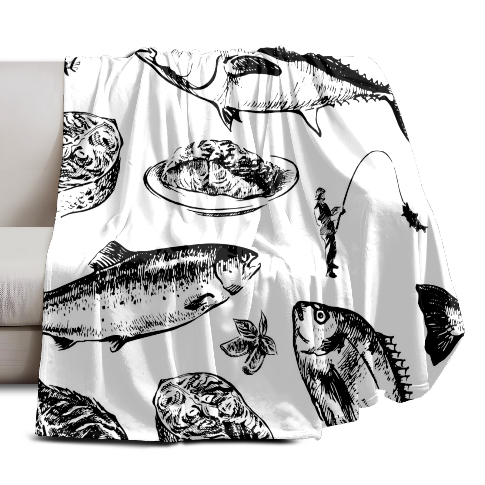 Премиальная фланелевая одеяло Fish