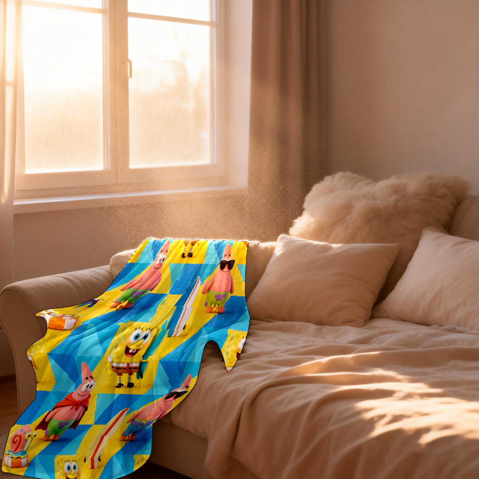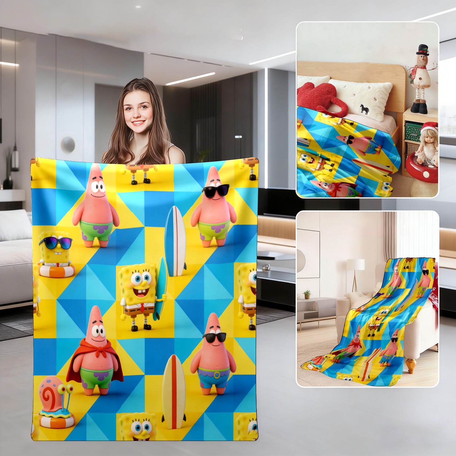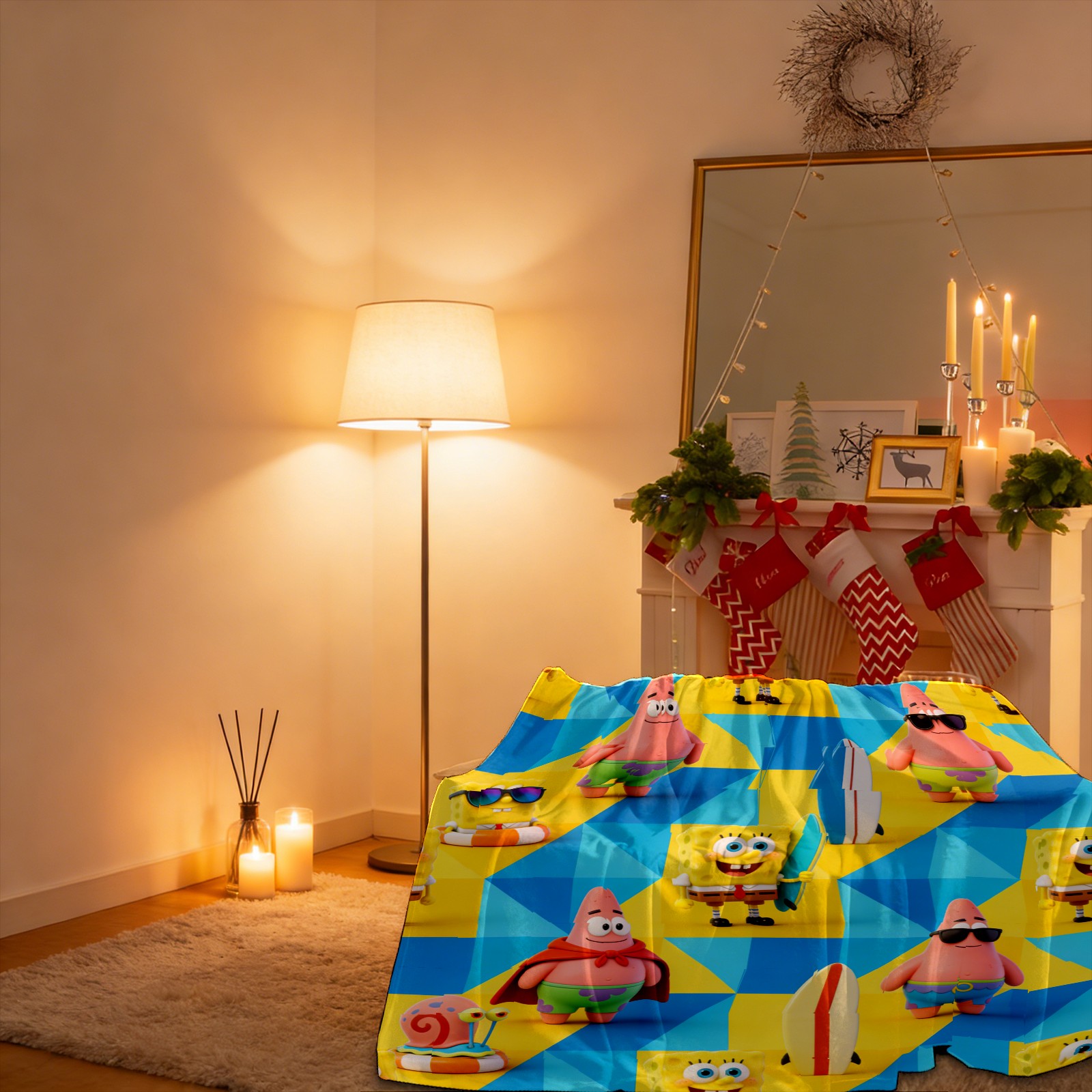Изготовленная из высококачественной фланели, эта ткань обладает мягкой, бархатистой текстурой, приятна для кожи, не вызывает раздражения и гипоаллергенна! Односторонняя печать и высокоплотные волокна обеспечивают устойчивость к образованию катышков, складок и усадке, сохраняя при этом цвет, не оставляя ворса и предотвращая расслоение или отслаивание краев. Прочный ворс гарантирует долговечность. Легкая и портативная, она компактно складывается и доступна в пяти размерах (от 30x39 дюймов до 59x80 дюймов), идеально подходящих для кроватей, диванов и кресел. Идеально подходит для повседневного использования дома, а также удобна для кемпинга, просмотра фильмов и путешествий. Прекрасный подарок для семьи и друзей, идеальный предмет личного пользования.