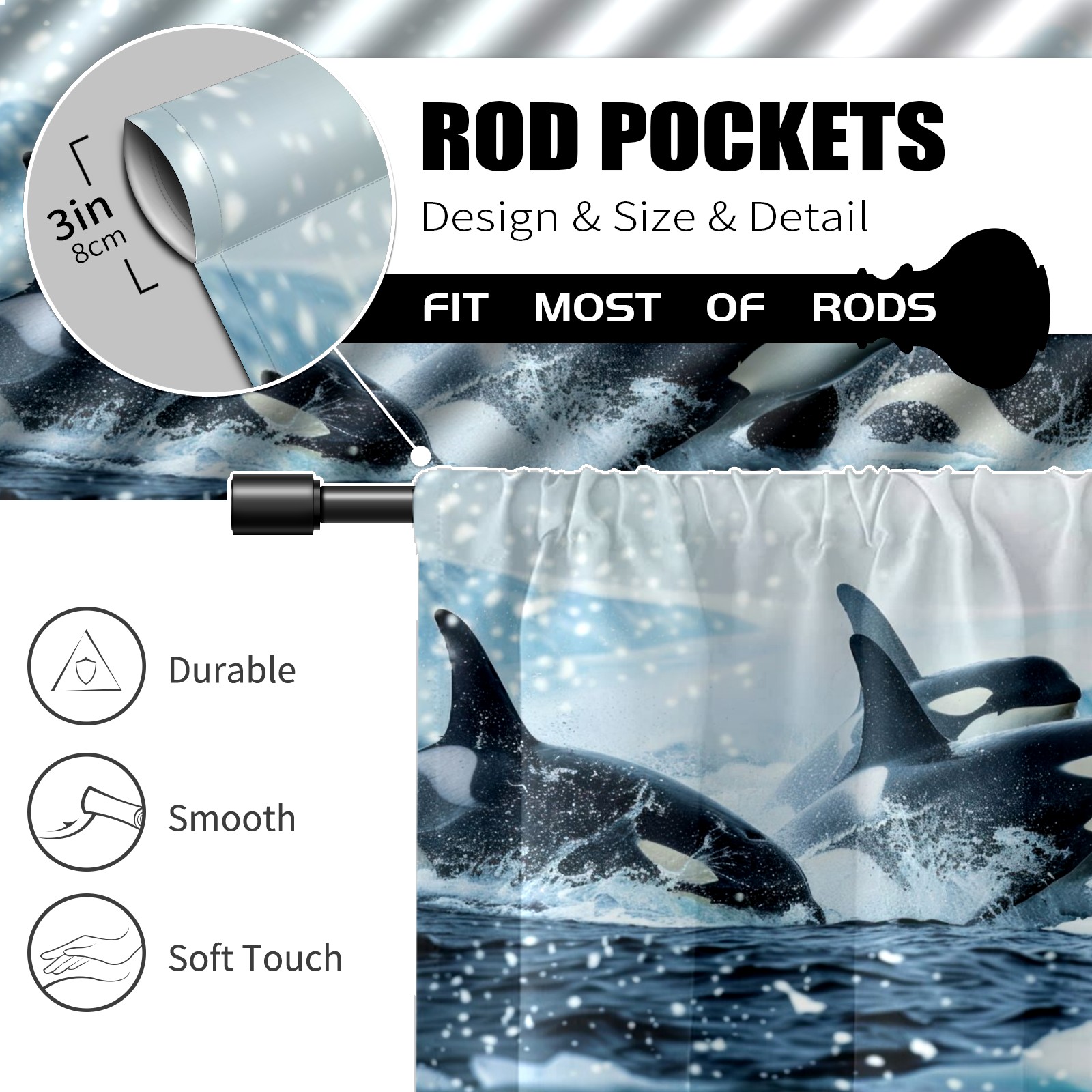 Шторы-панно для дома, декоративные драпировки для гостиной и спальни, легкие и прочные, Sea Blue Whale