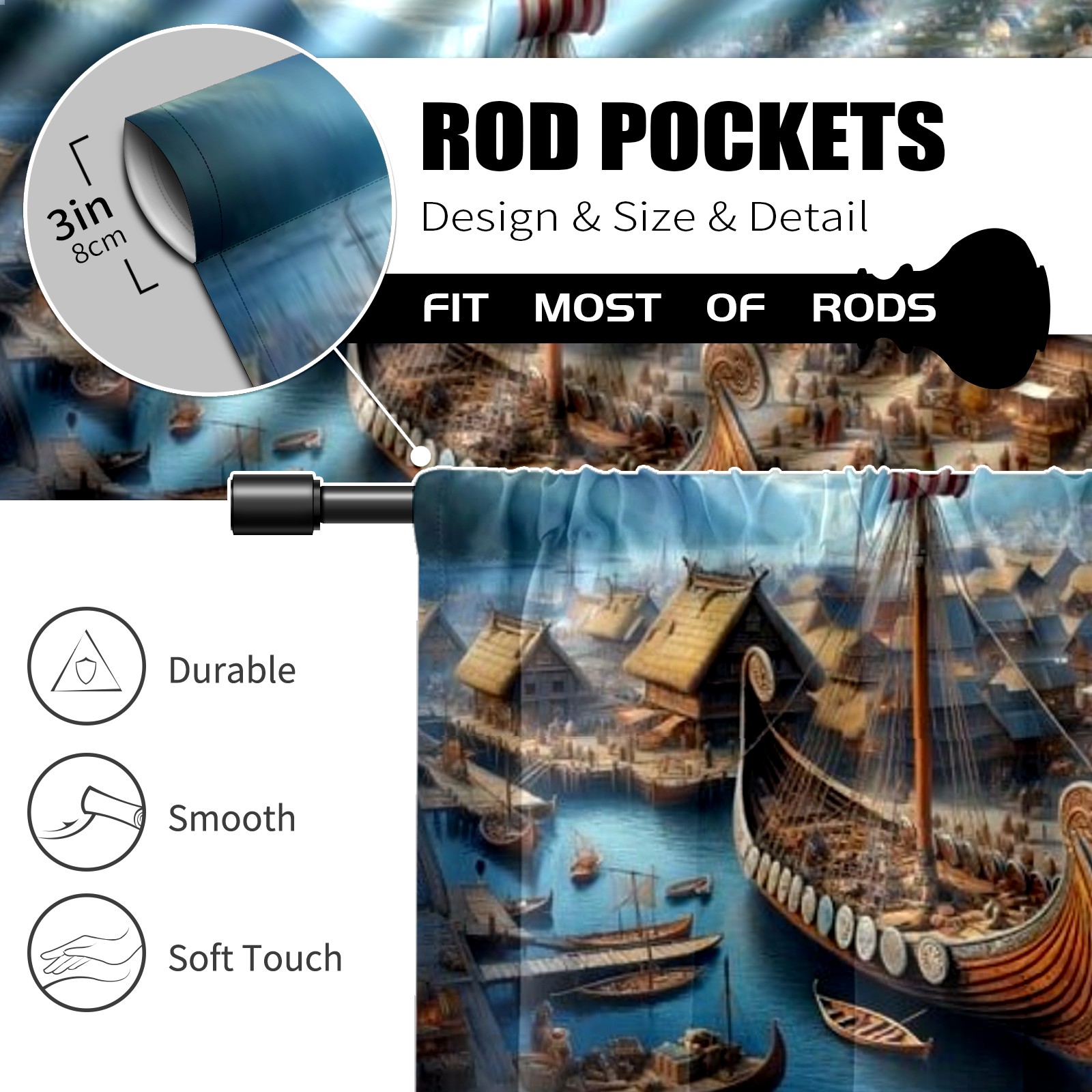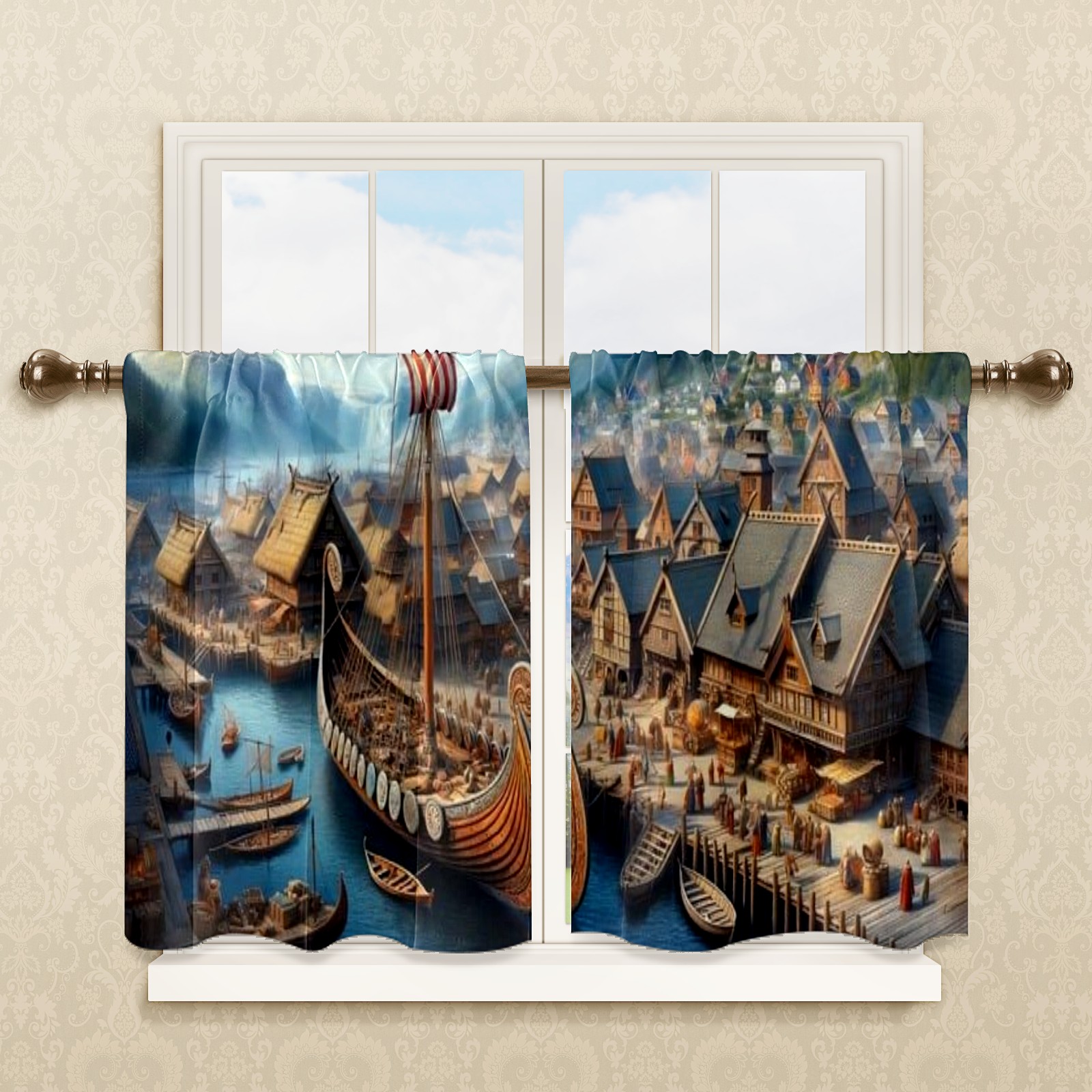 Шторы-панно для дома, декоративные драпировки для гостиной и спальни, легкие и прочные, Medieval Ports