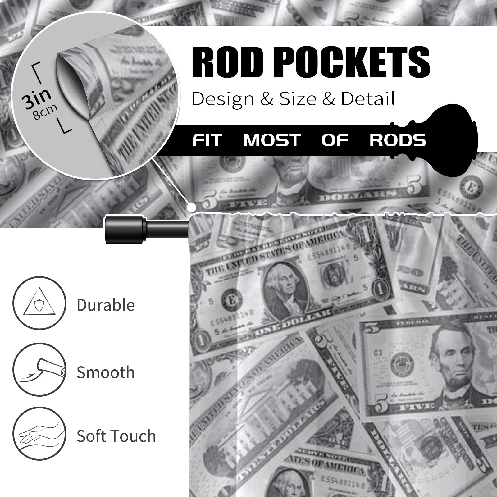 Шторы-панно для дома, декоративные драпировки для гостиной и спальни, легкие и прочные, Lincoln Banknote