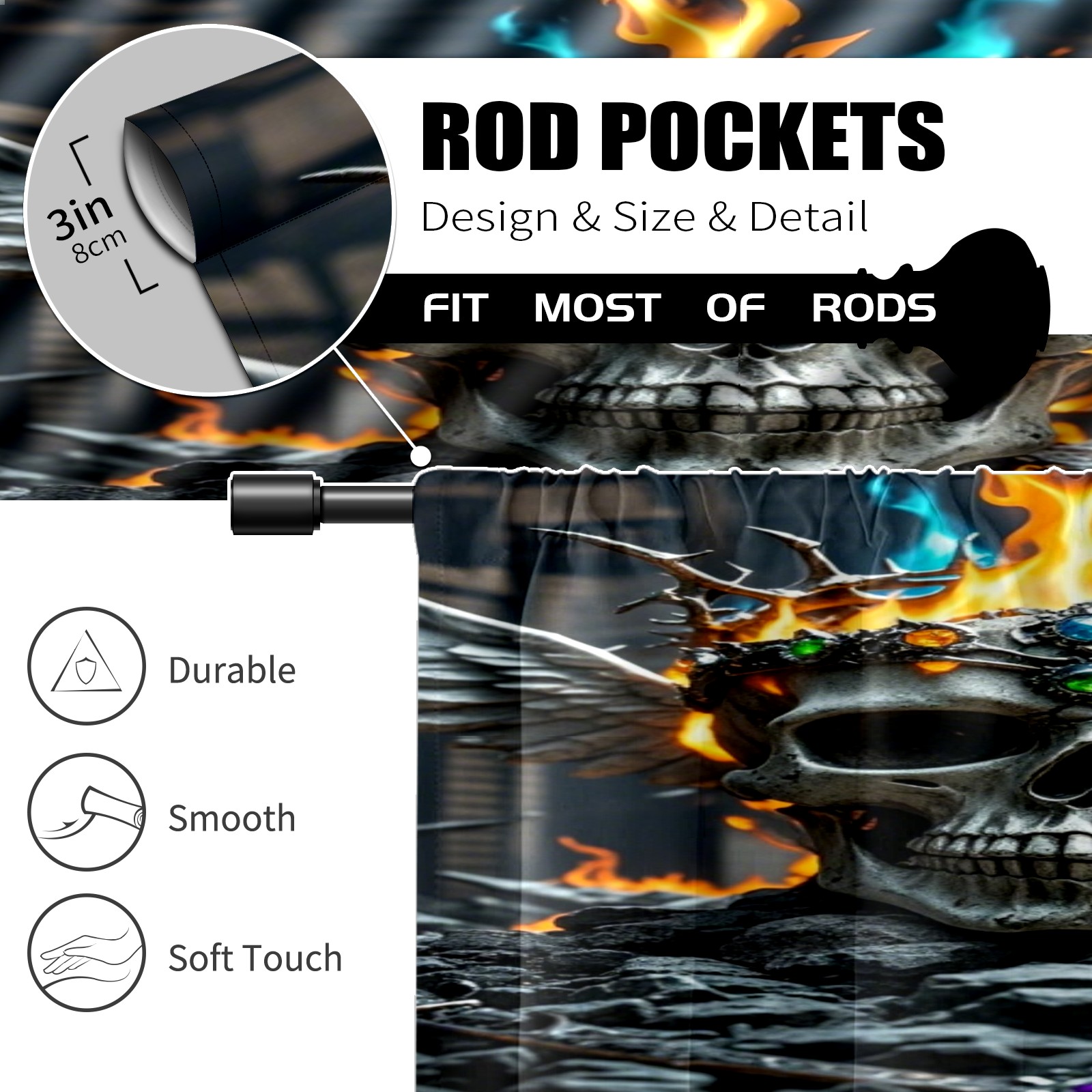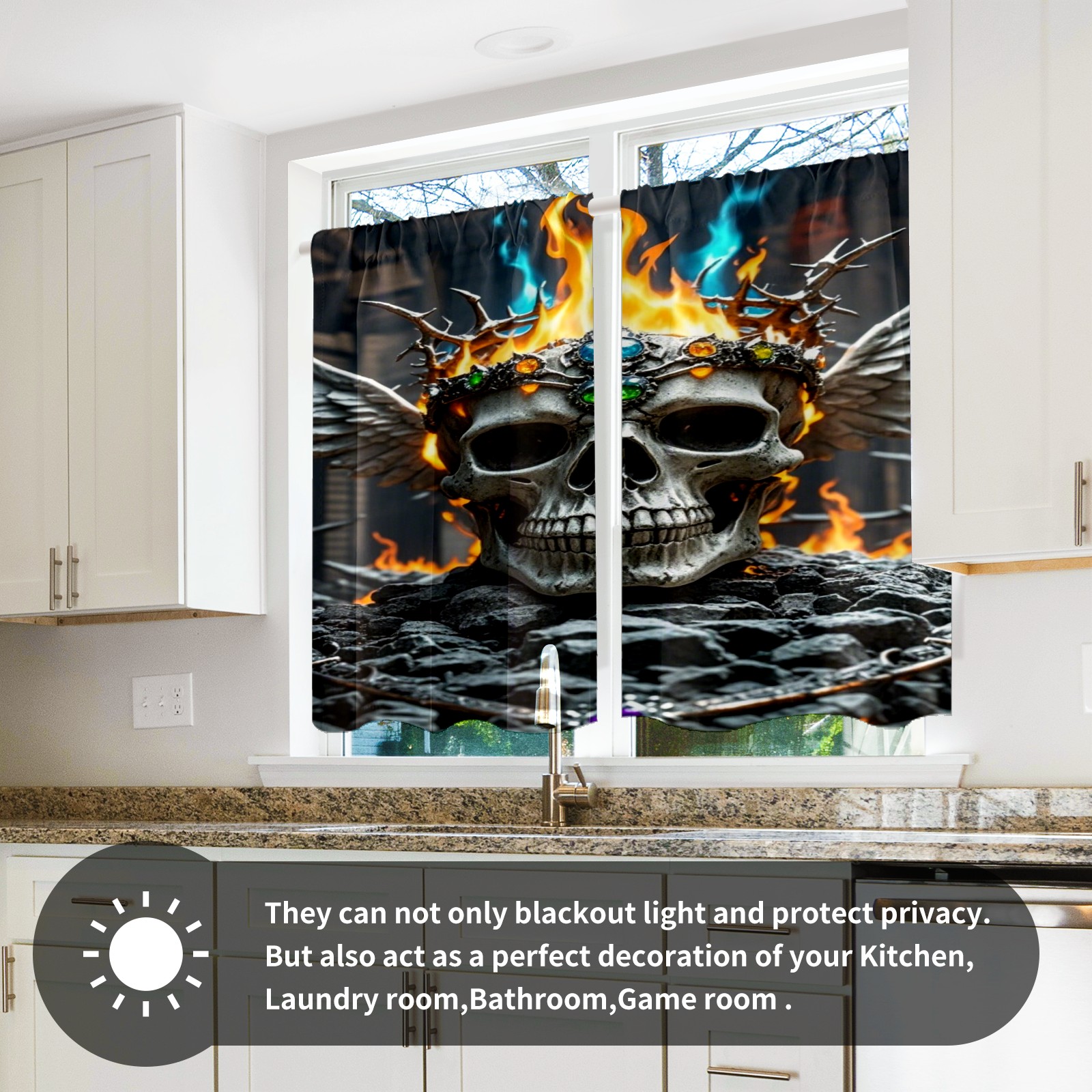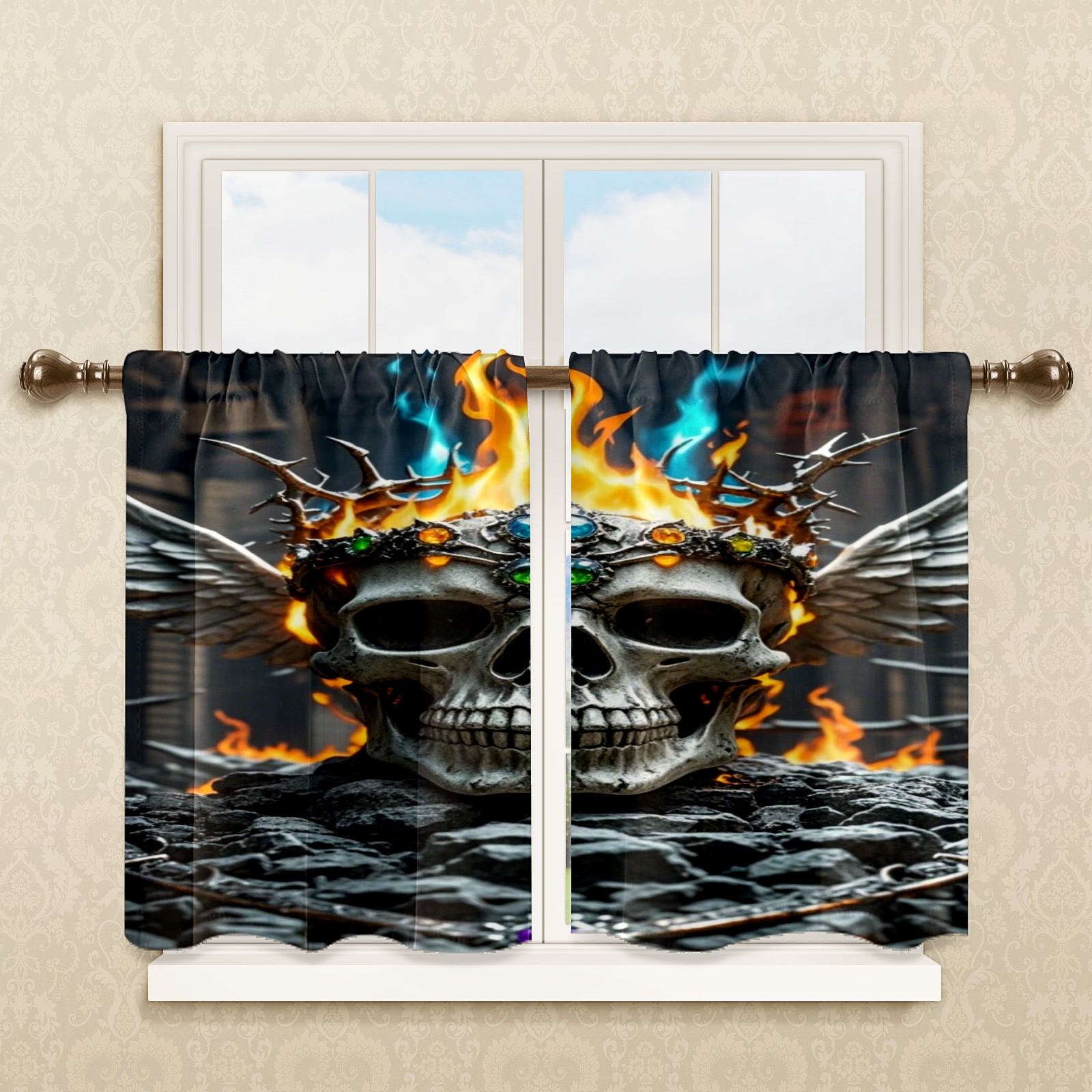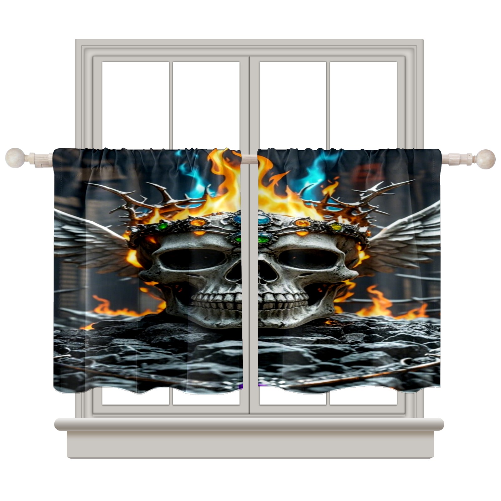 Шторы-панно для дома, декоративные драпировки для гостиной и спальни, легкие и прочные, Fire Skull Crown