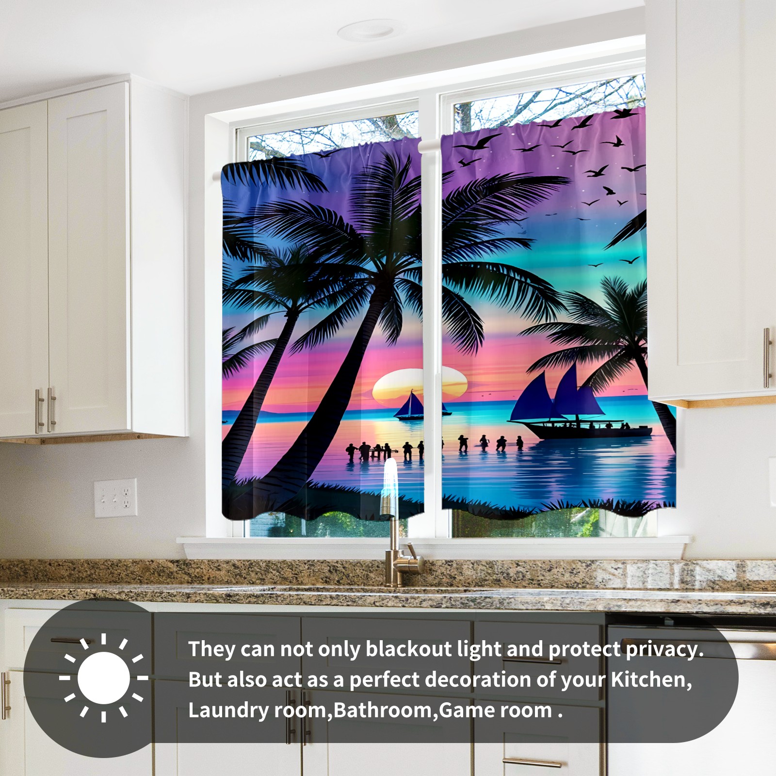 Шторы-панно для дома, декоративные драпировки для гостиной и спальни, легкие и прочные, Coconut Tree Sunset