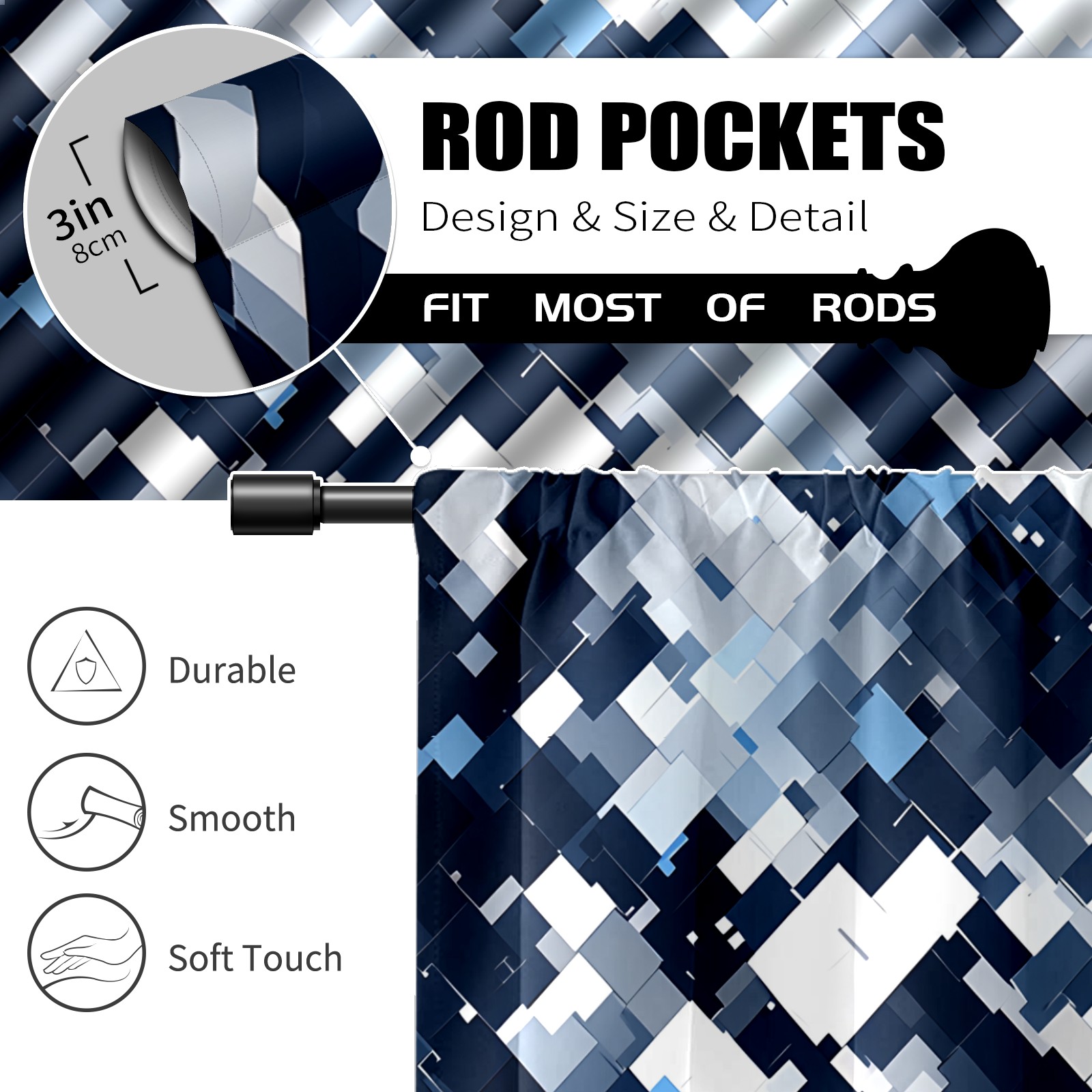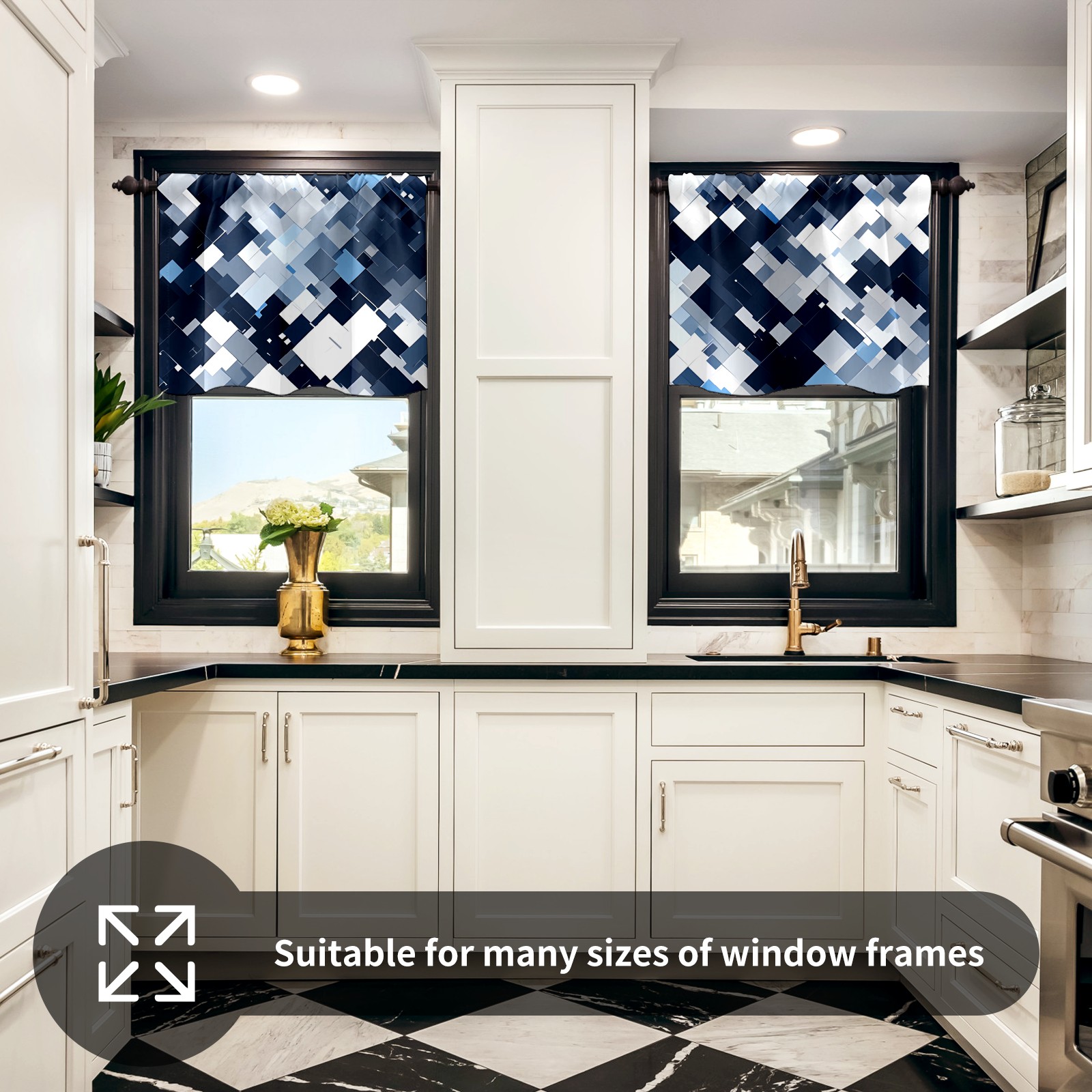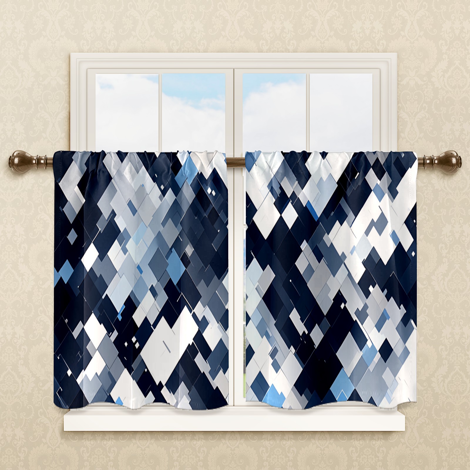 Шторы-панно для дома, декоративные драпировки для гостиной и спальни, легкие и прочные, Blue White Squares
