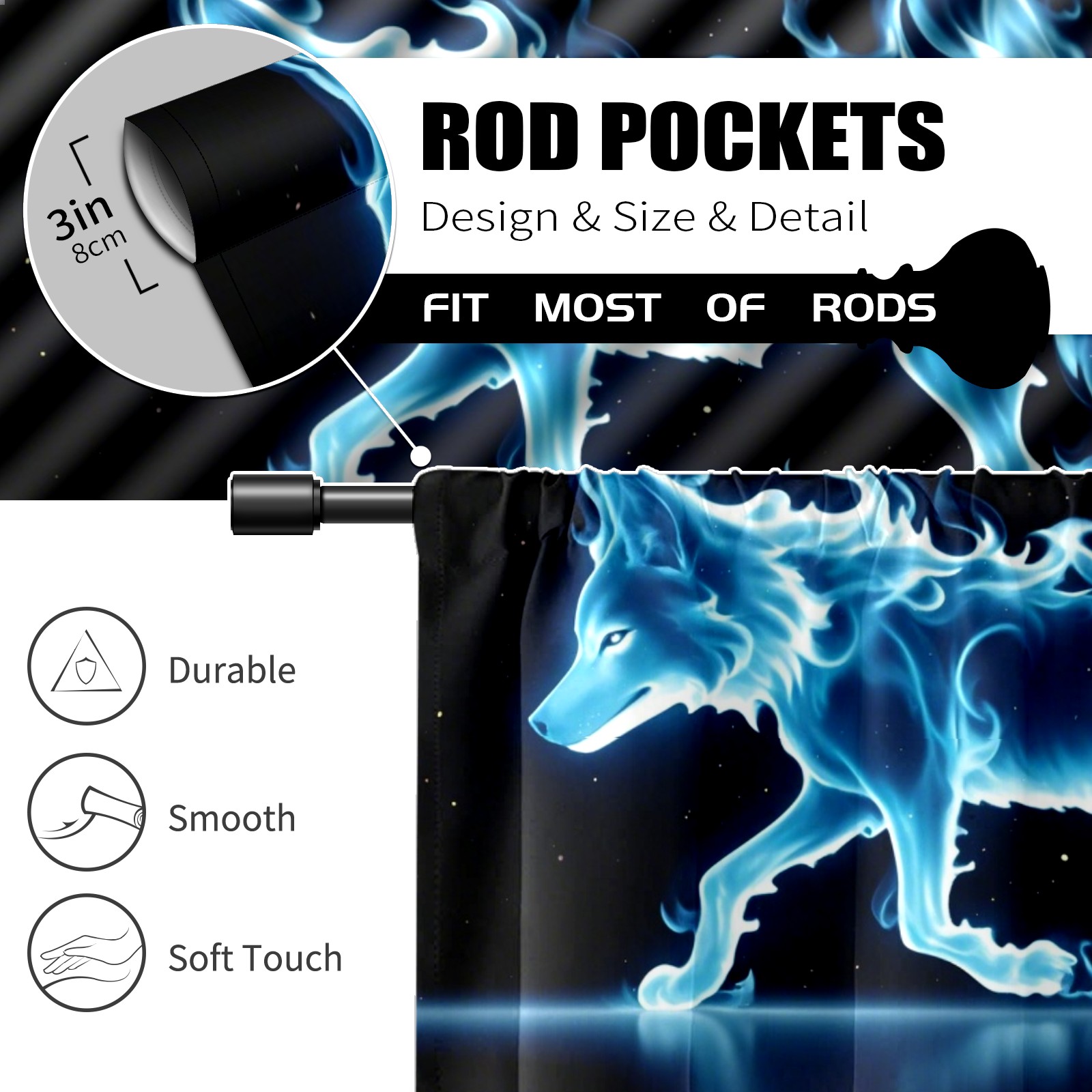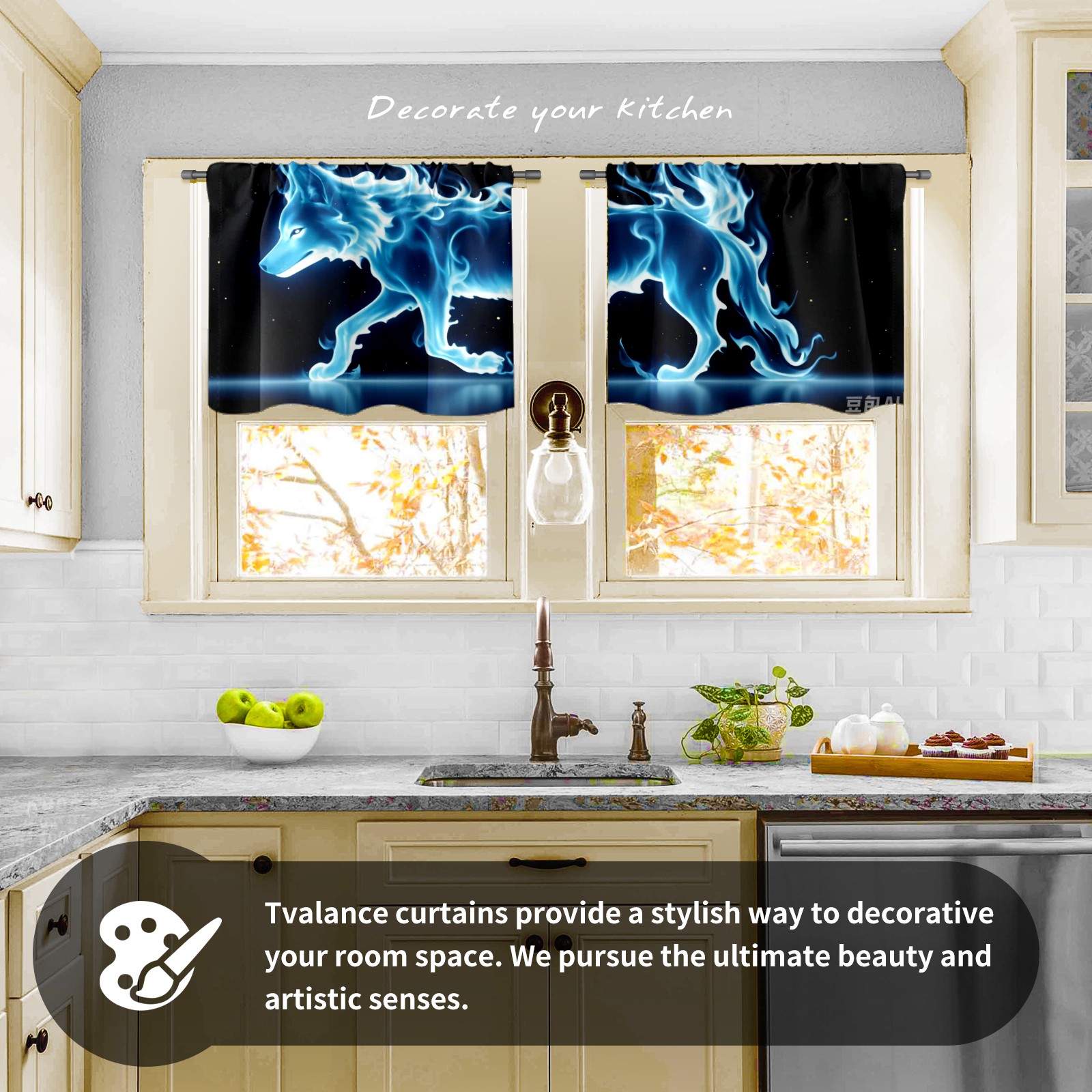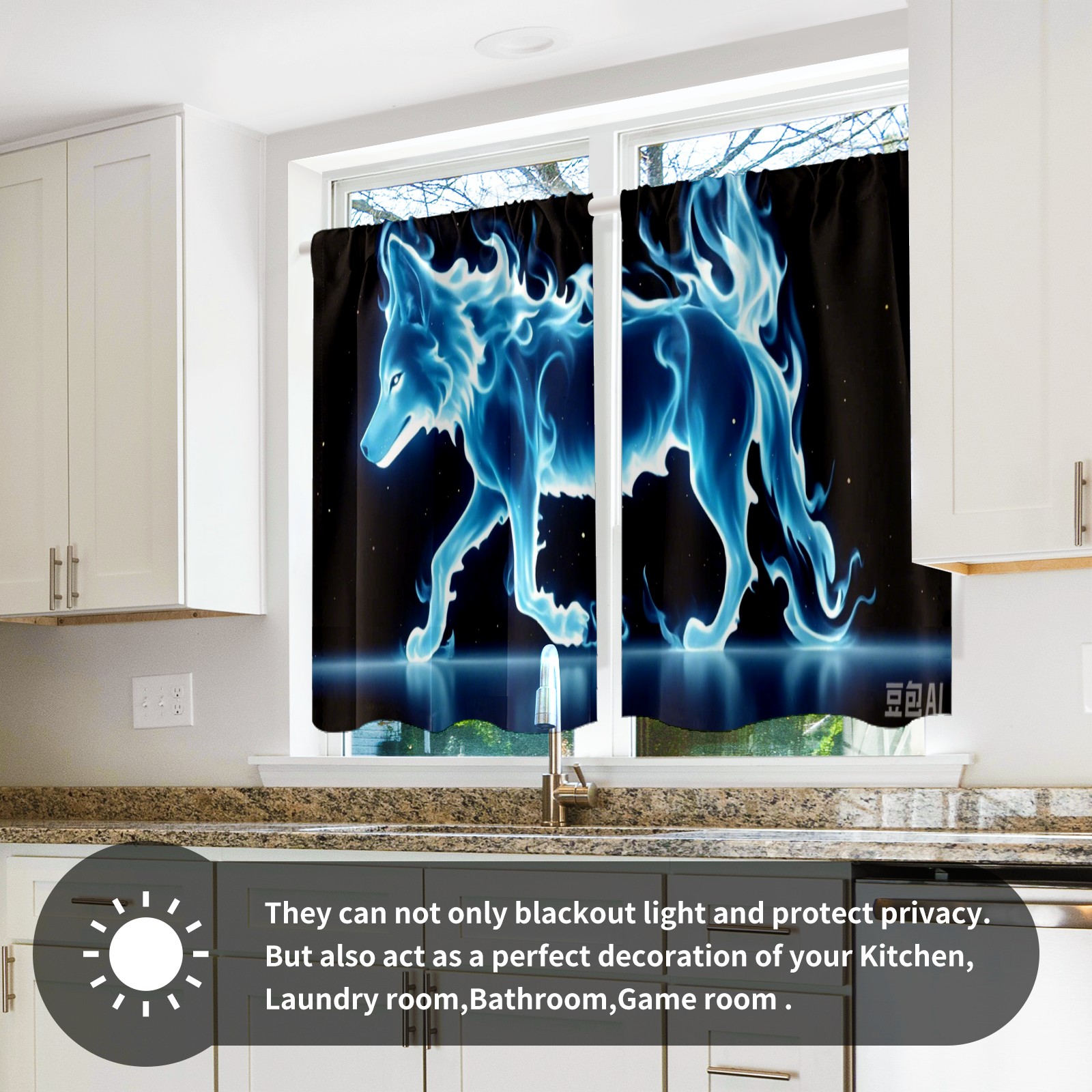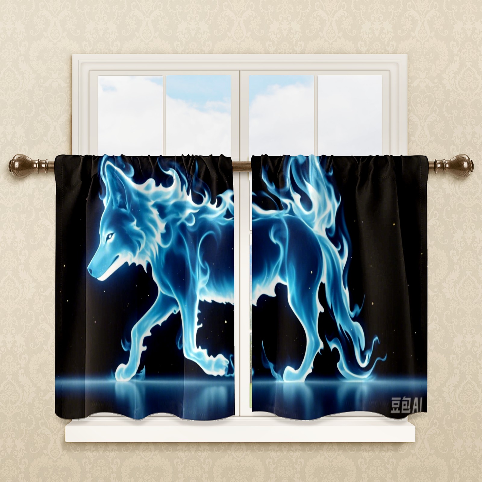 Шторы-панно для дома, декоративные драпировки для гостиной и спальни, легкие и прочные, Blue Flame Wolf