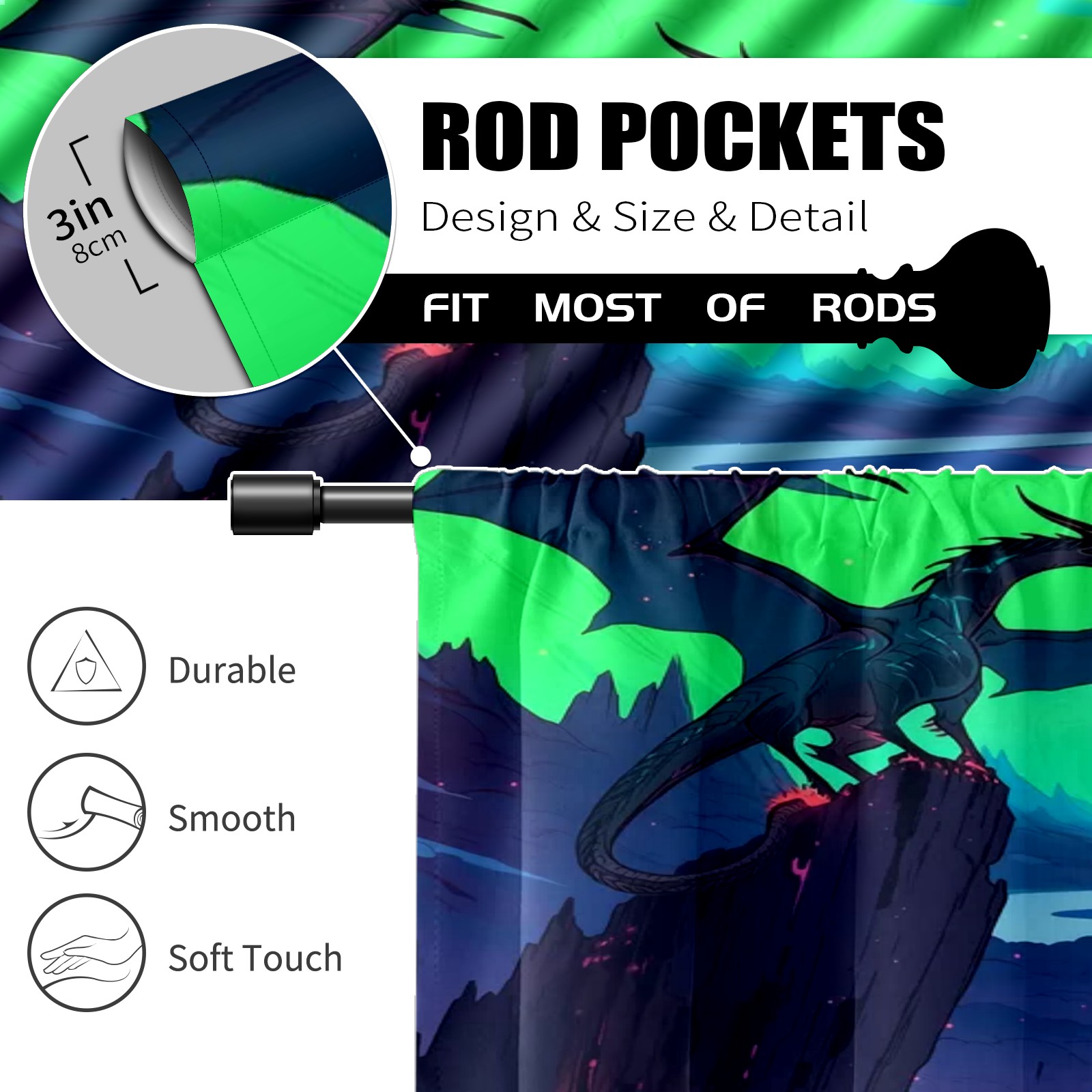 Шторы-панно для дома, декоративные драпировки для гостиной и спальни, легкие и прочные, Anime Evil Dragon