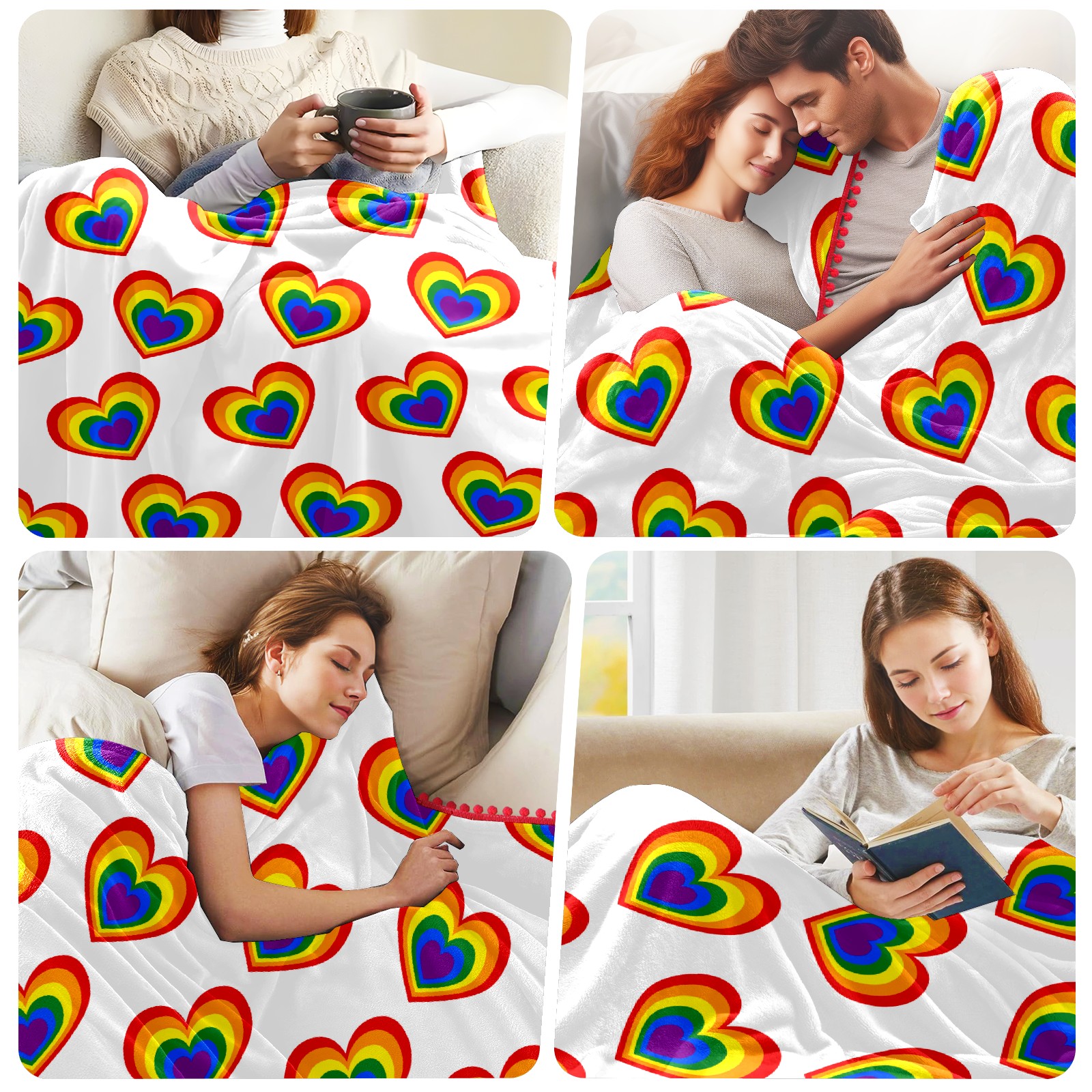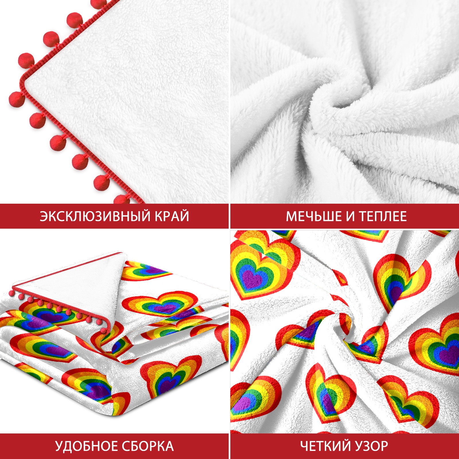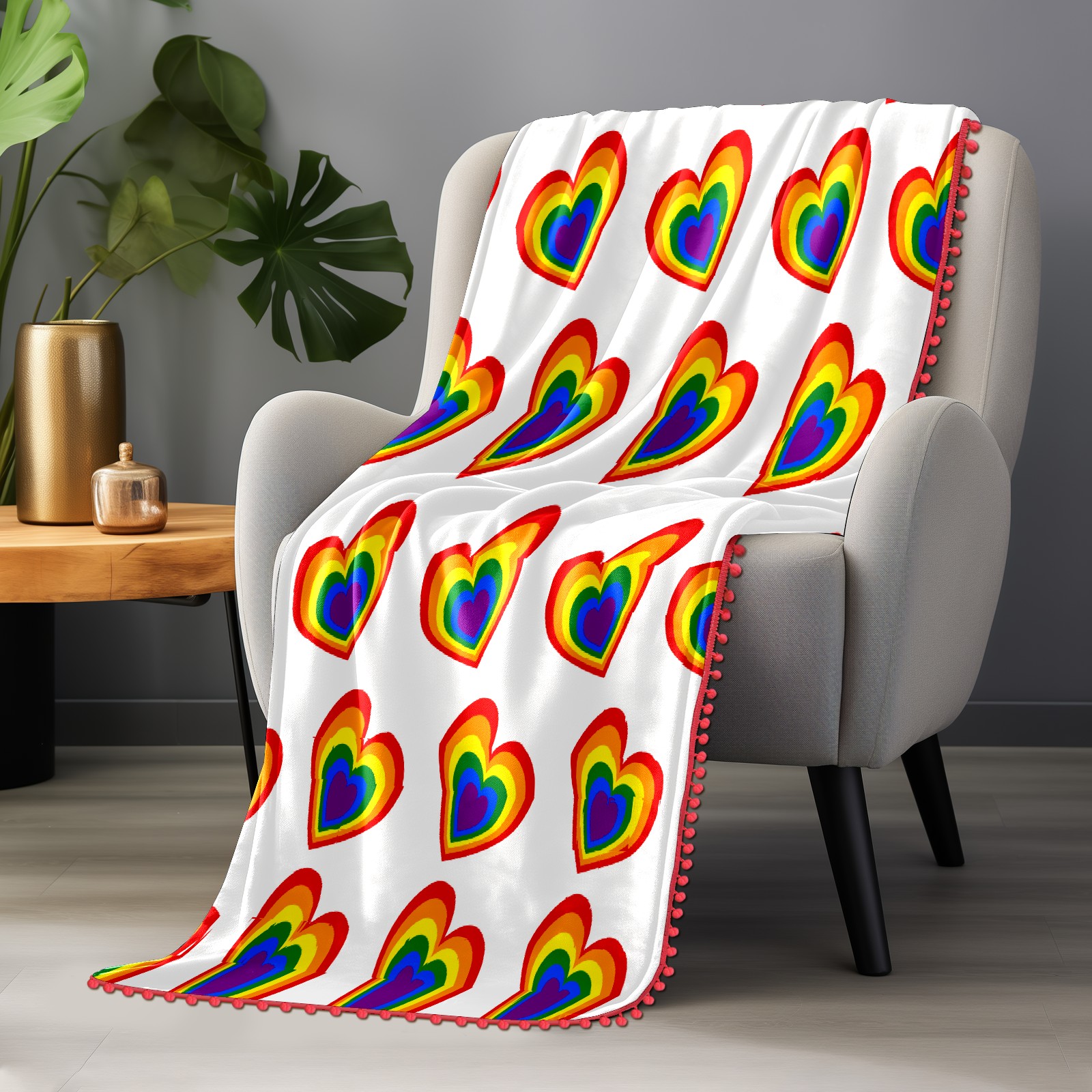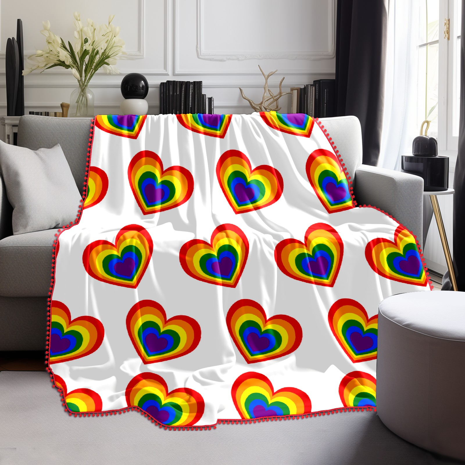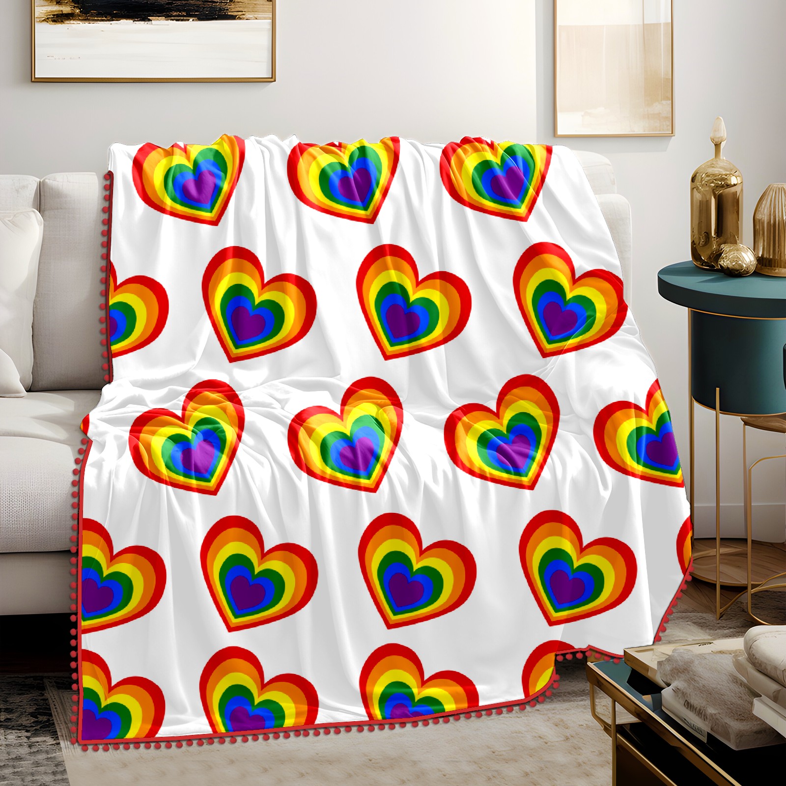 流苏毛毯 Rainbow Love Valentine's Day Heart