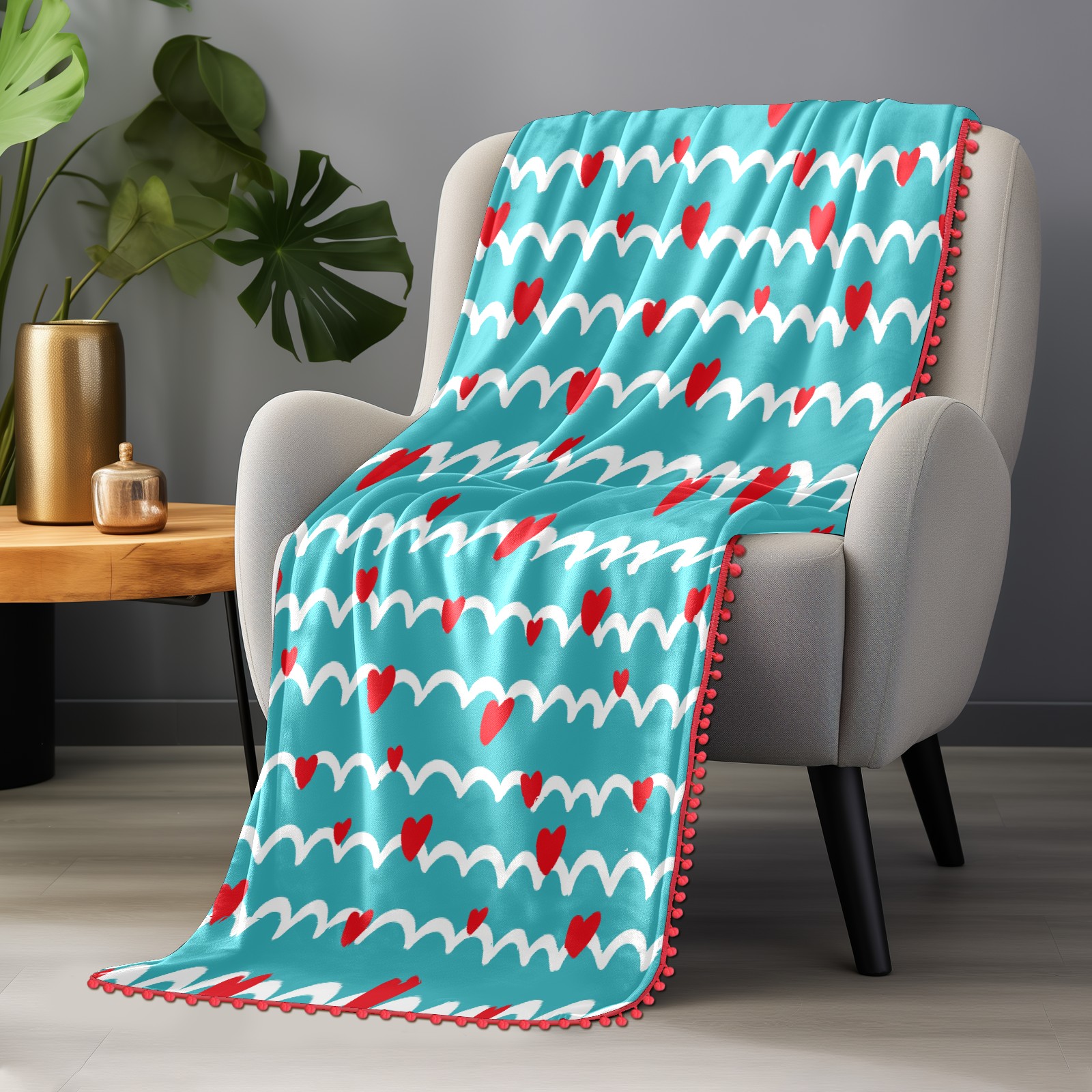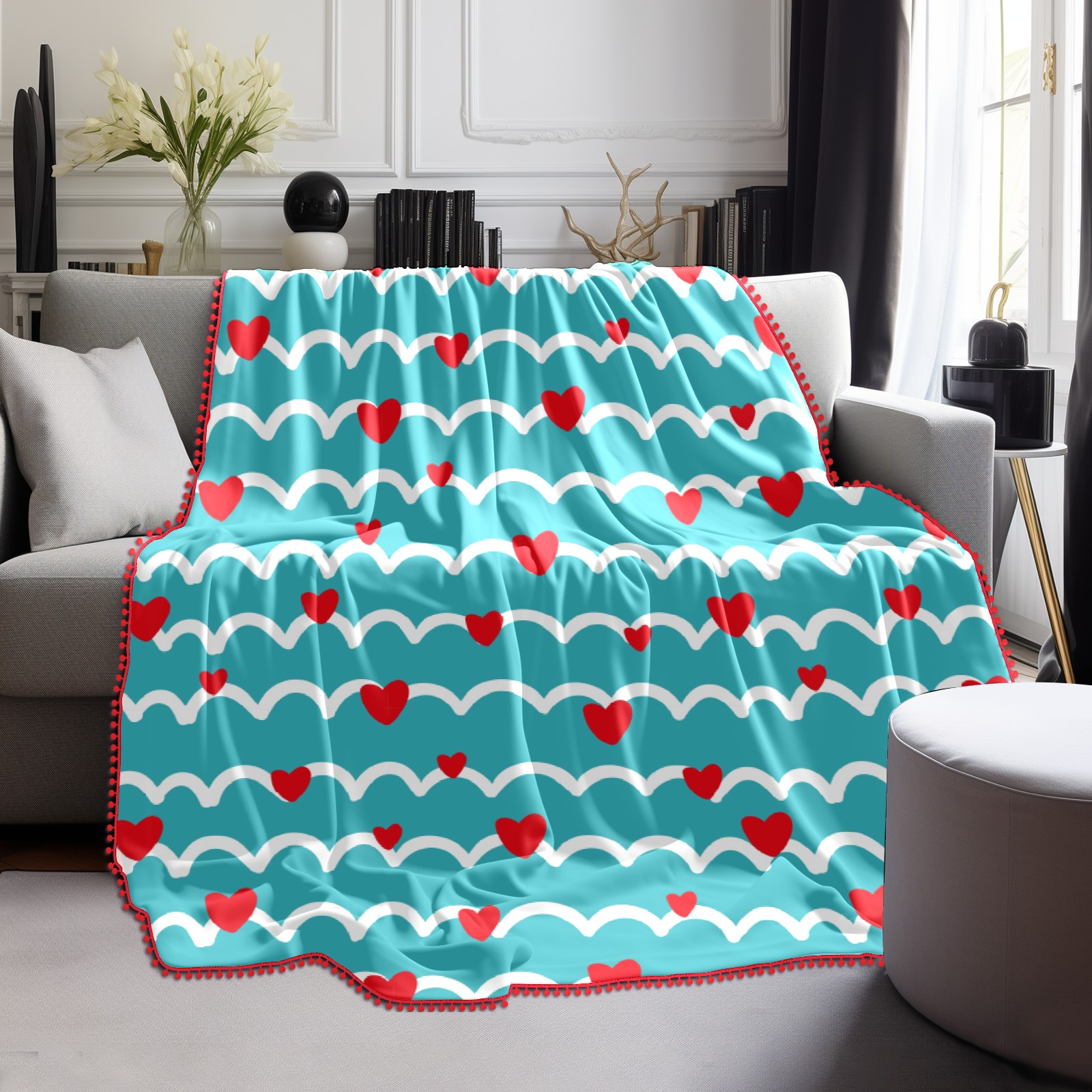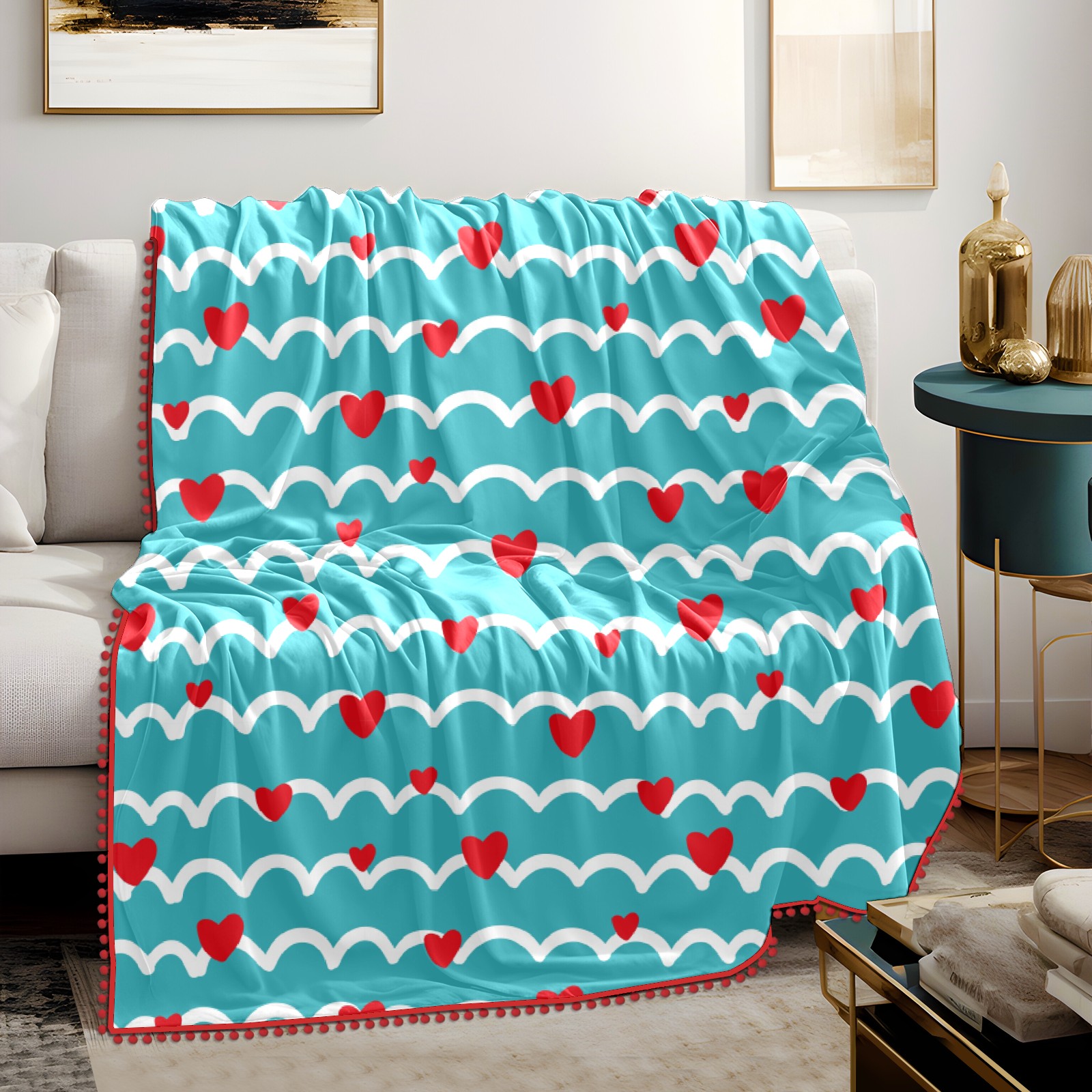 流苏毛毯 Love Heart Striped Blue