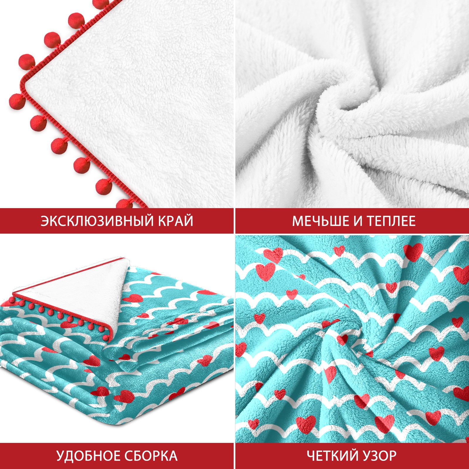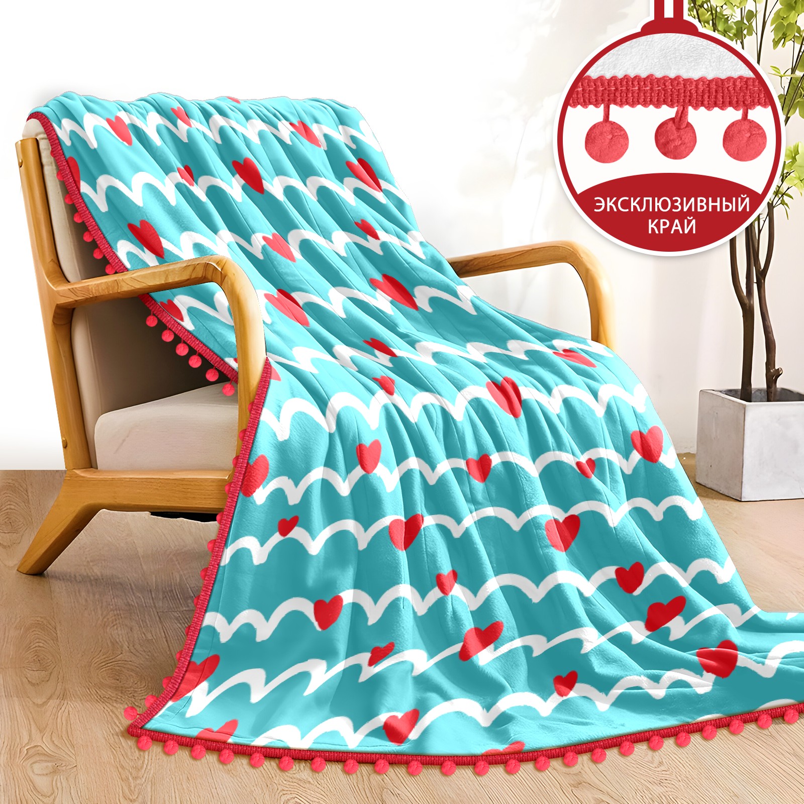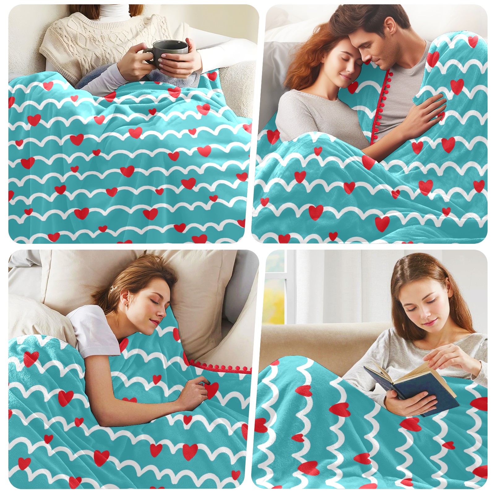 流苏毛毯 Love Heart Striped Blue
