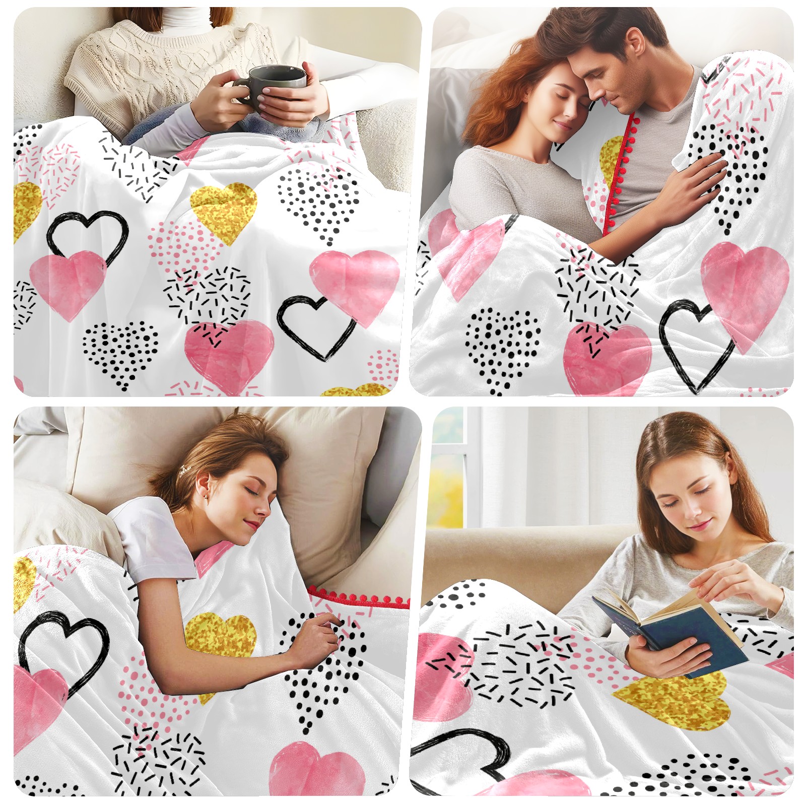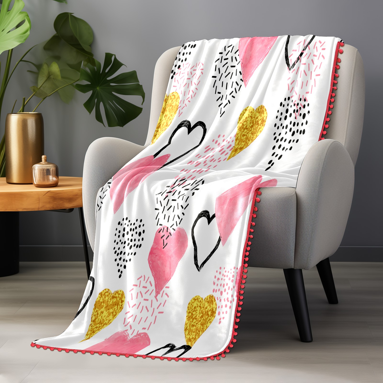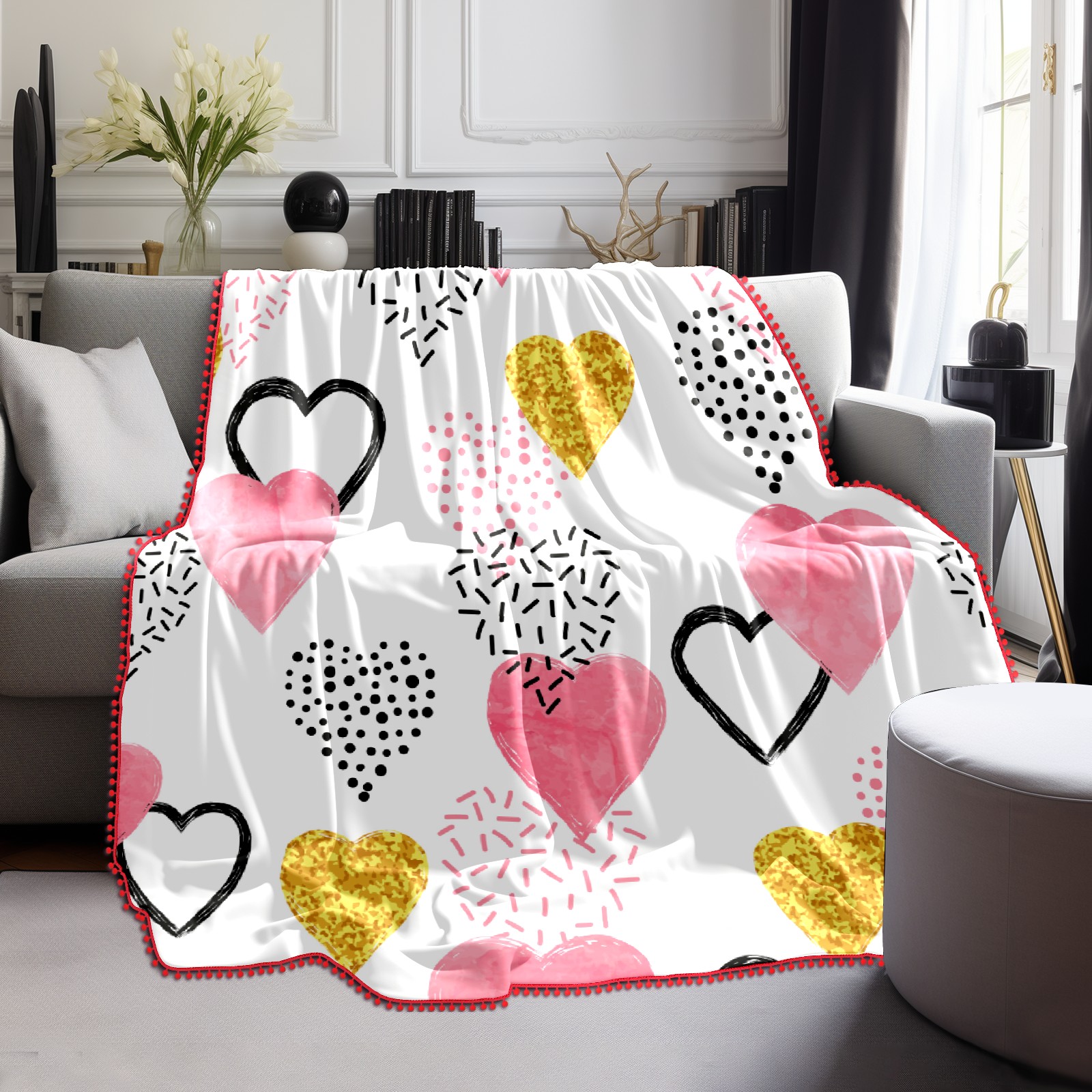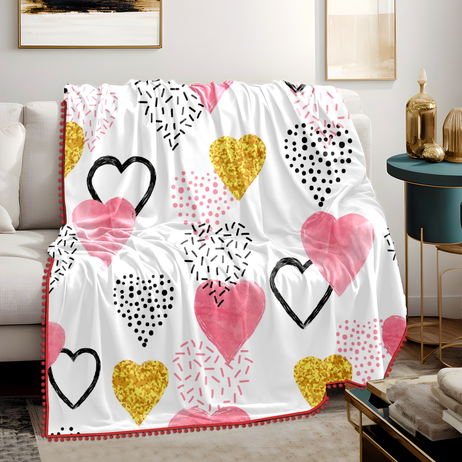 流苏毛毯 Colorful Love Hearts Valentine's Day