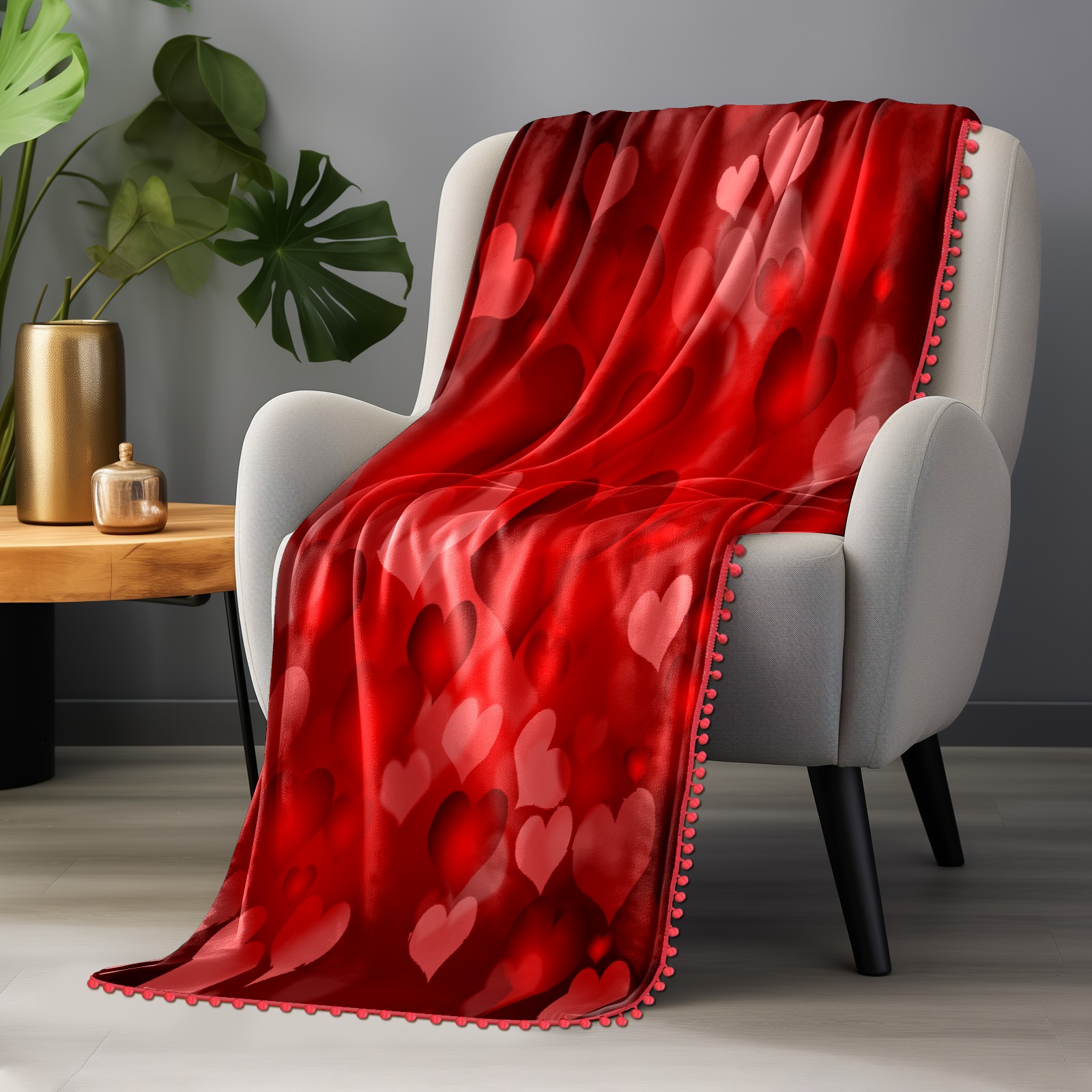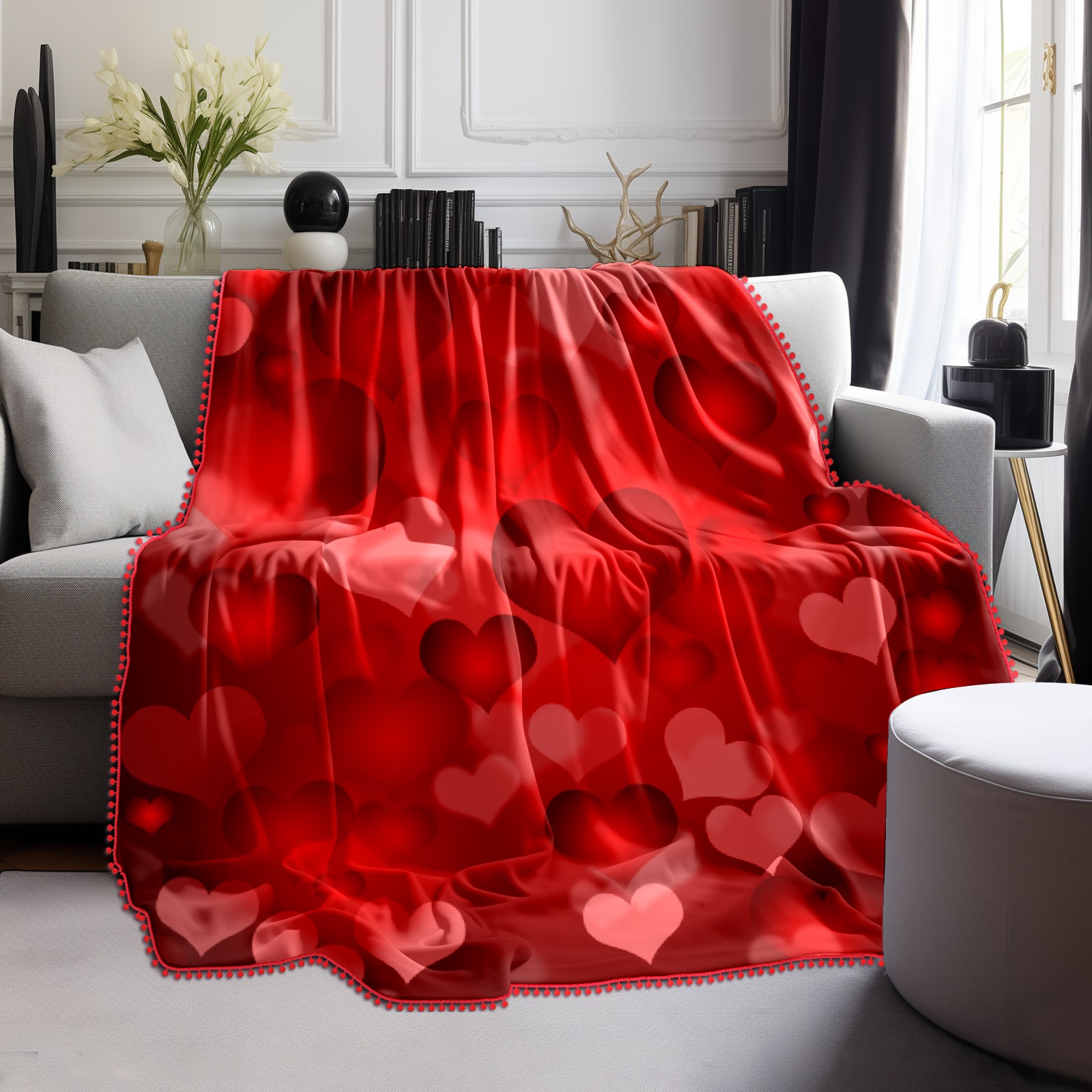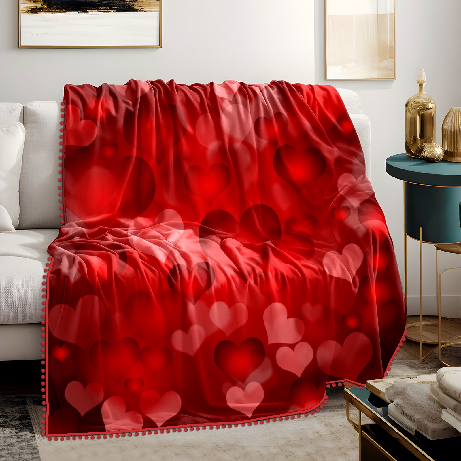流苏毛毯 Red Love Heart Valentine's Day