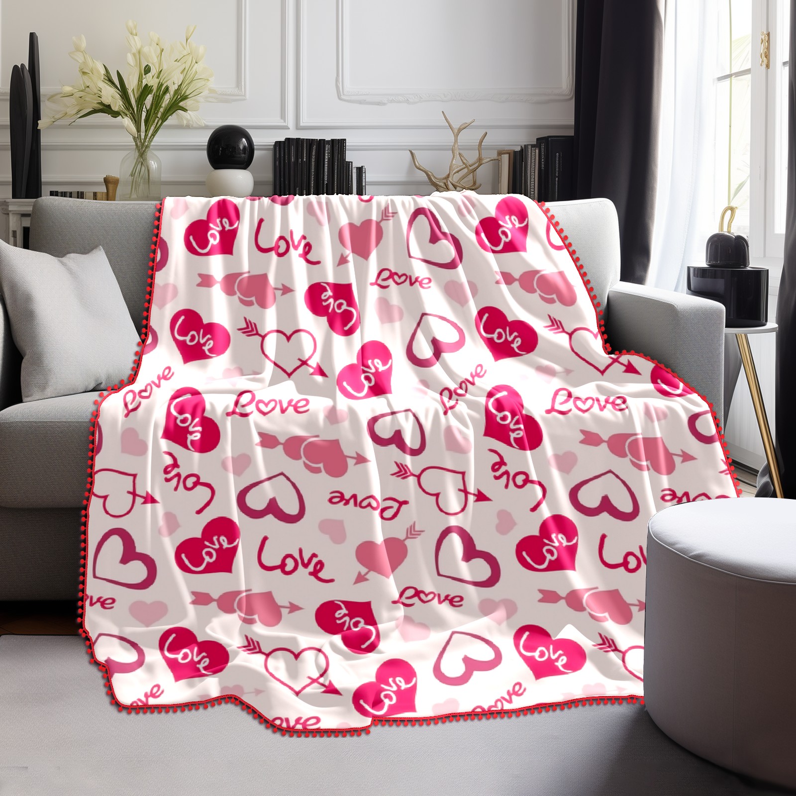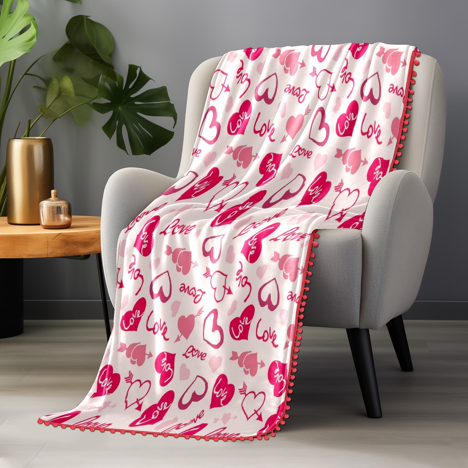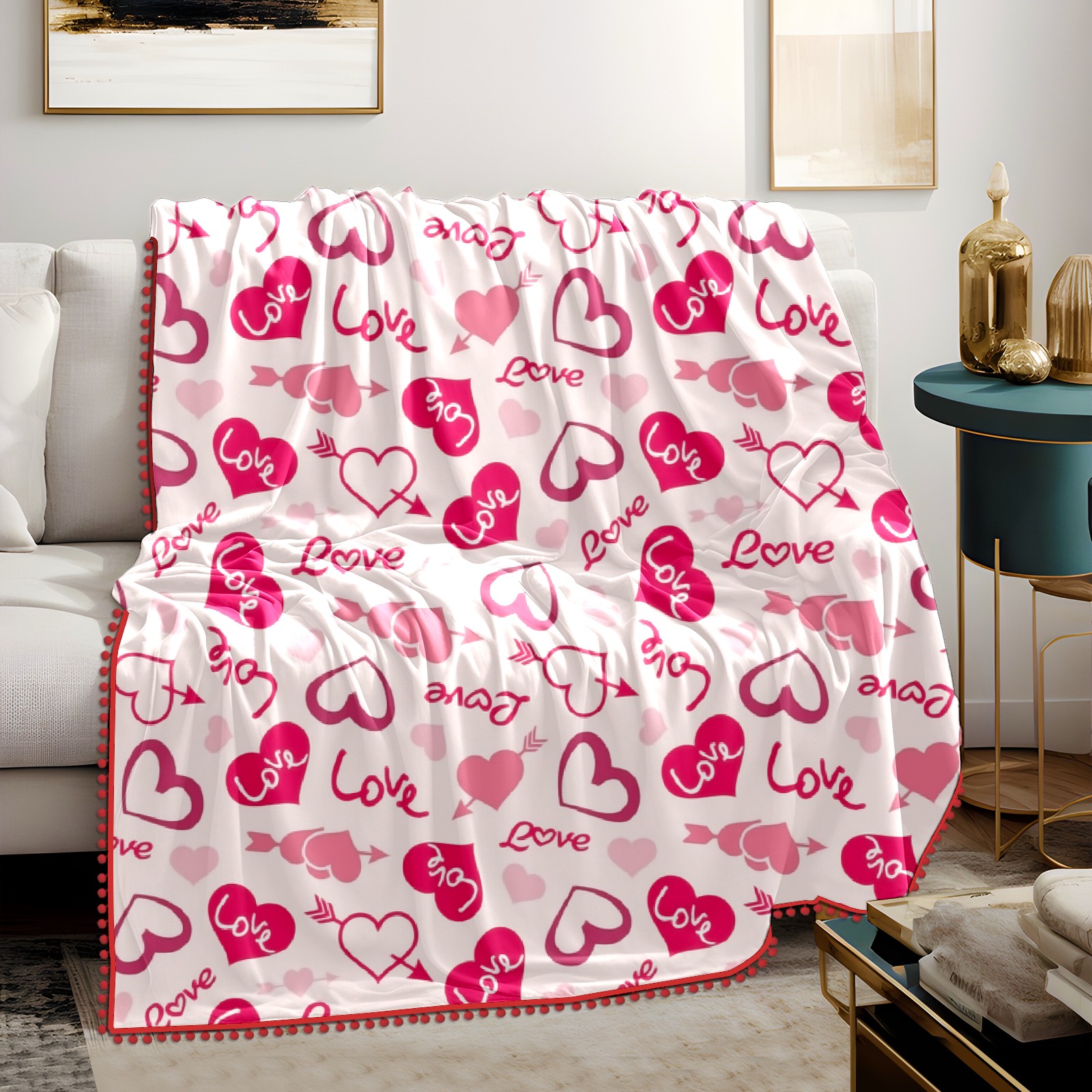 流苏毛毯 Love Theme Hearts Valentines Day