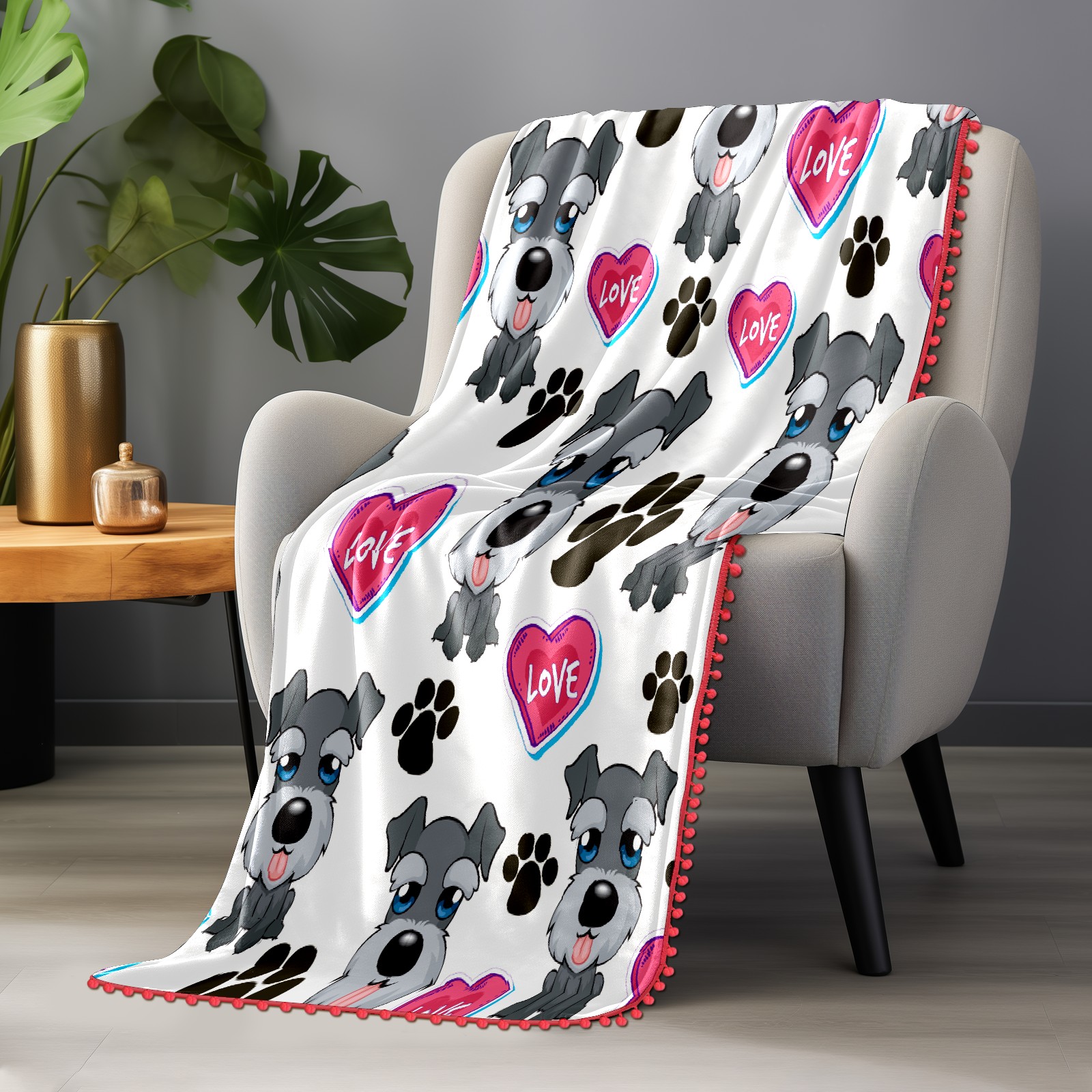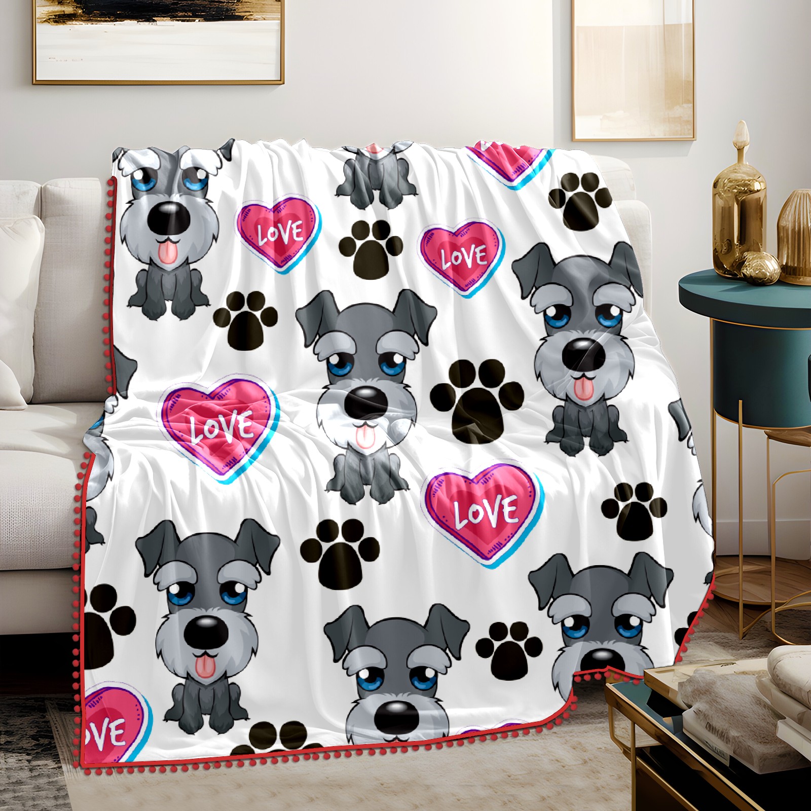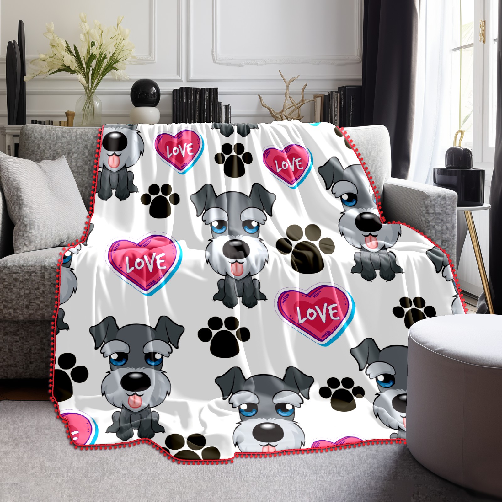 流苏毛毯 Cute Dog Paw And Love Heart