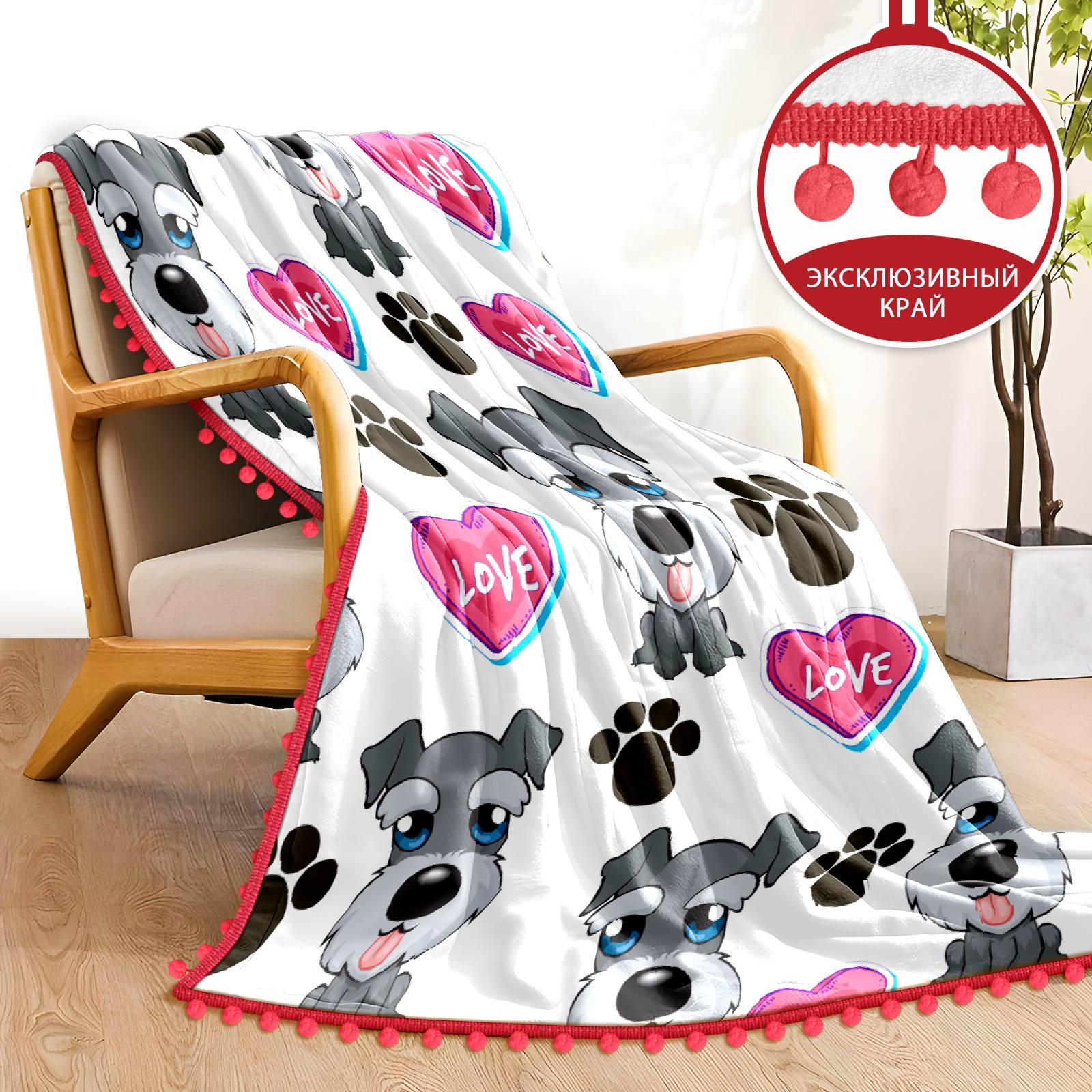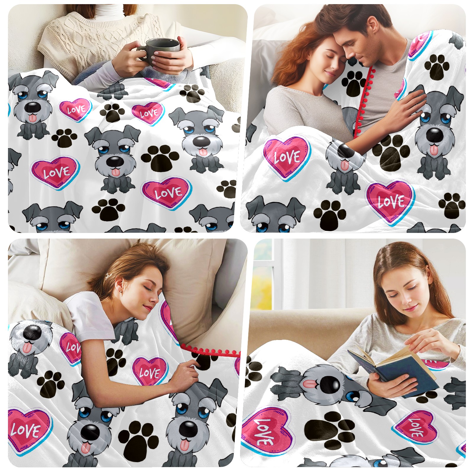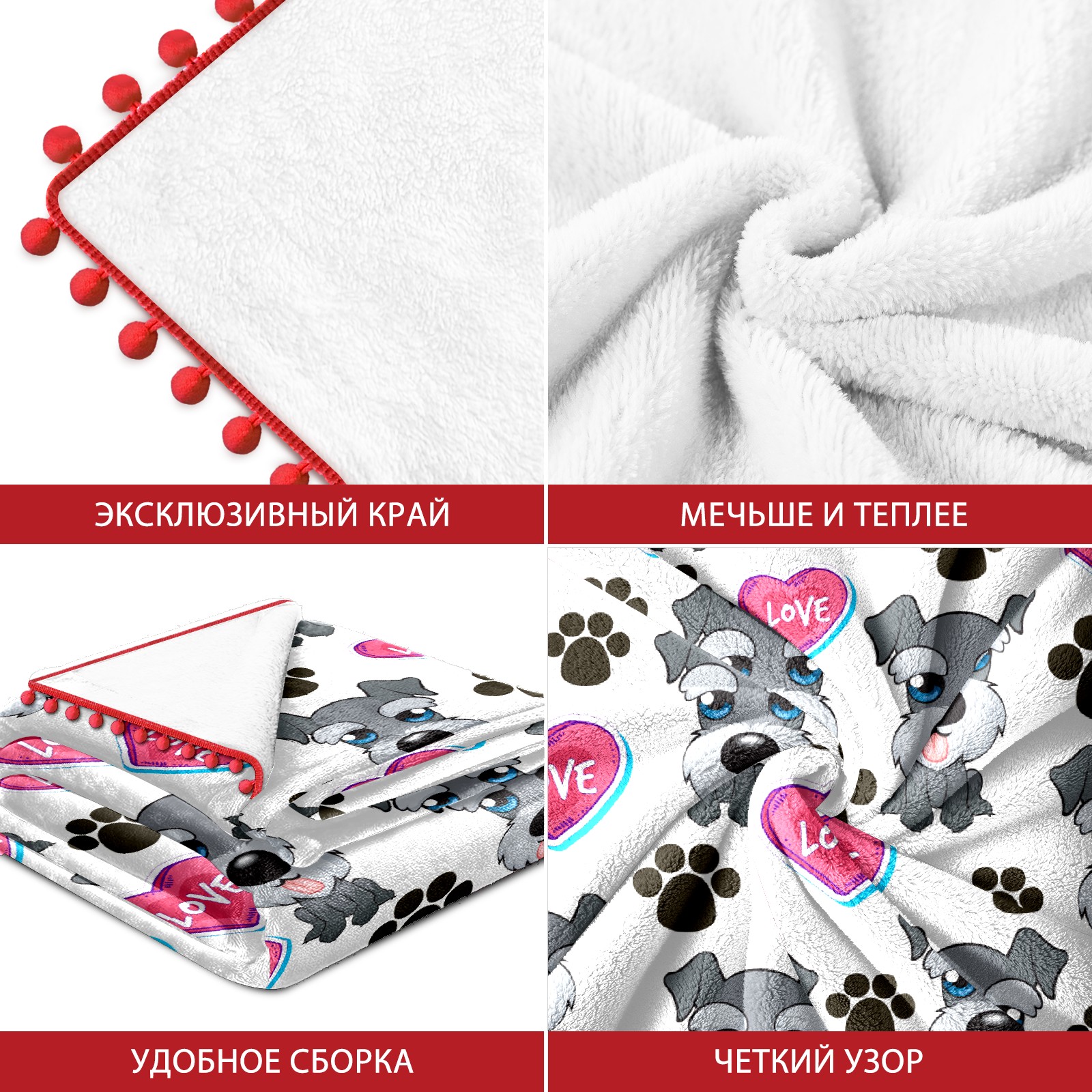 流苏毛毯 Cute Dog Paw And Love Heart