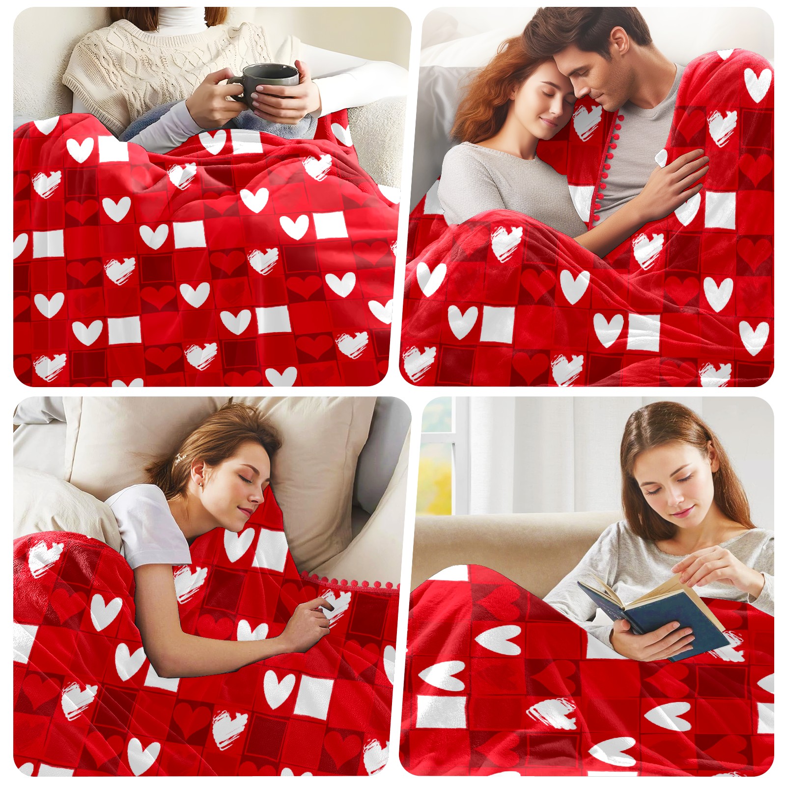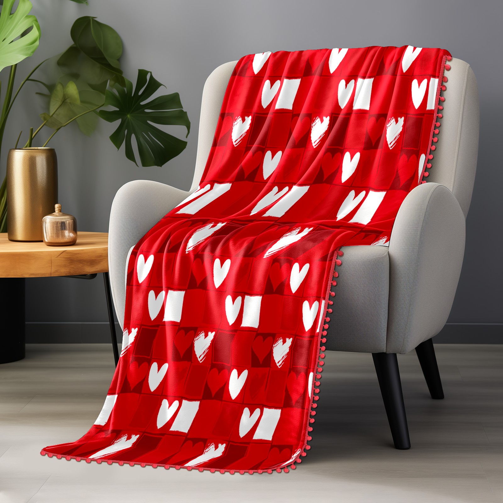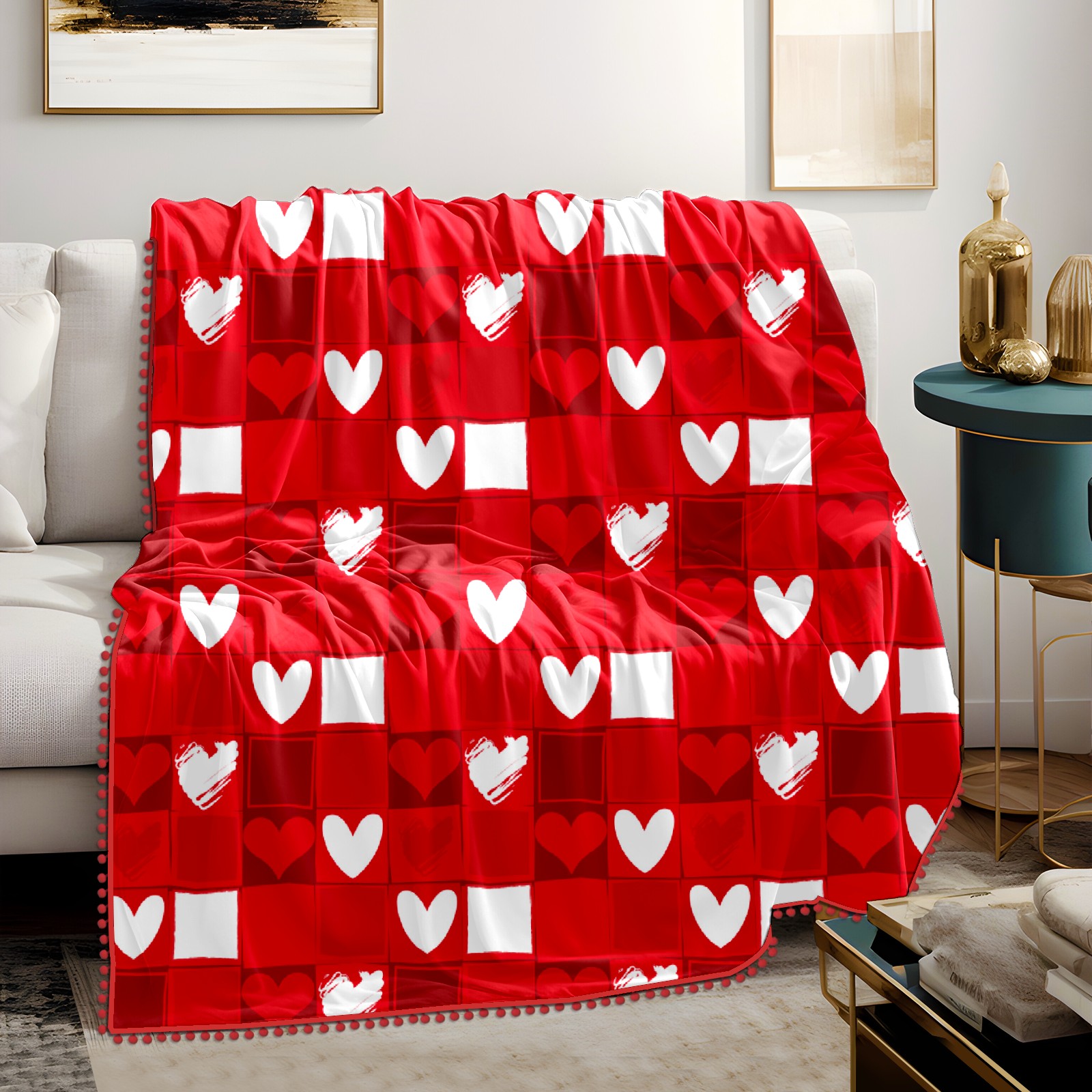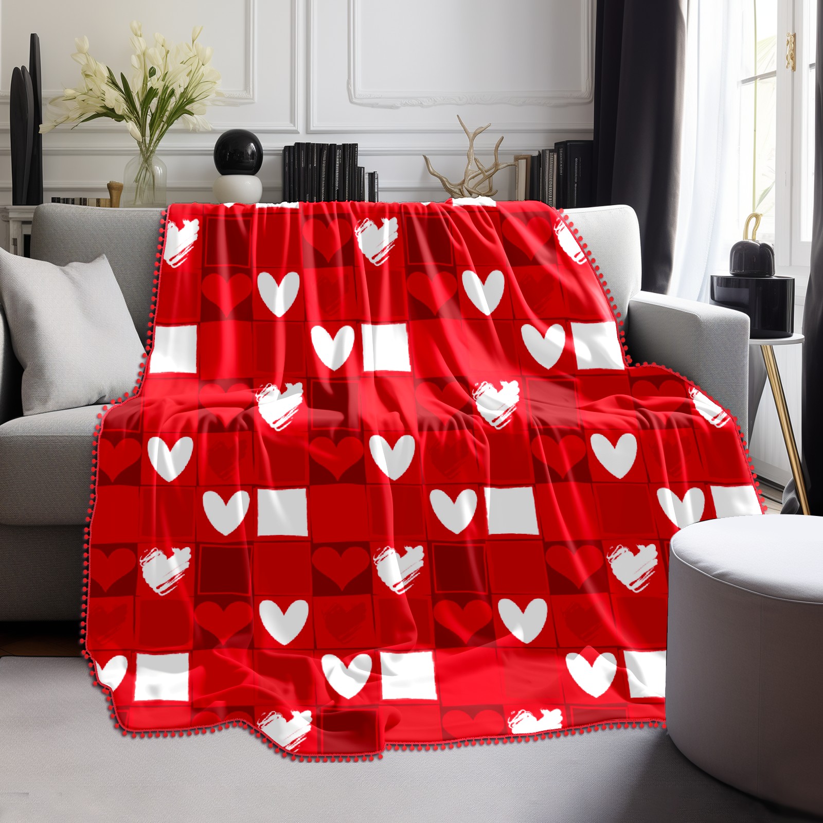 流苏毛毯 Valentine's Day Love Red Heart Pattern