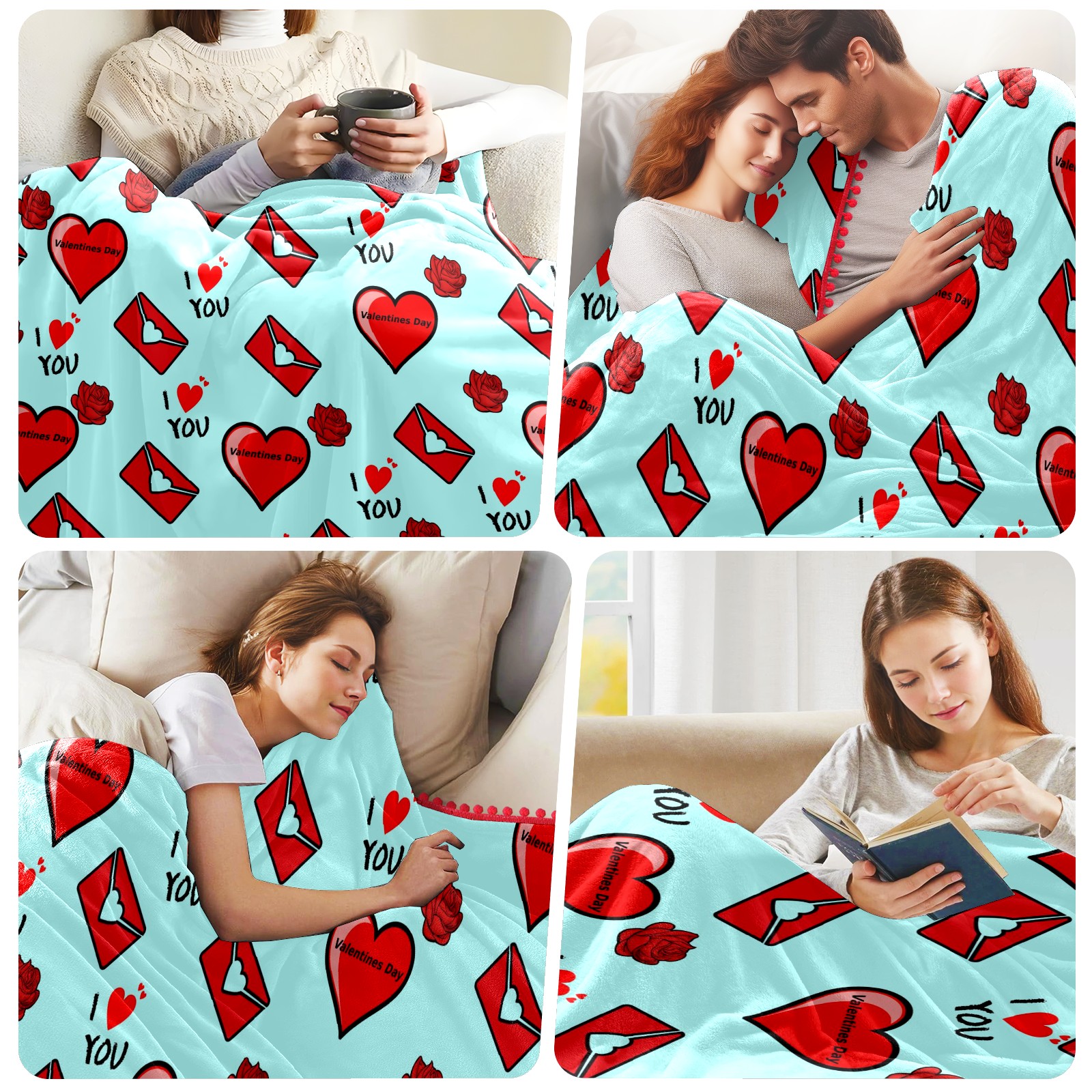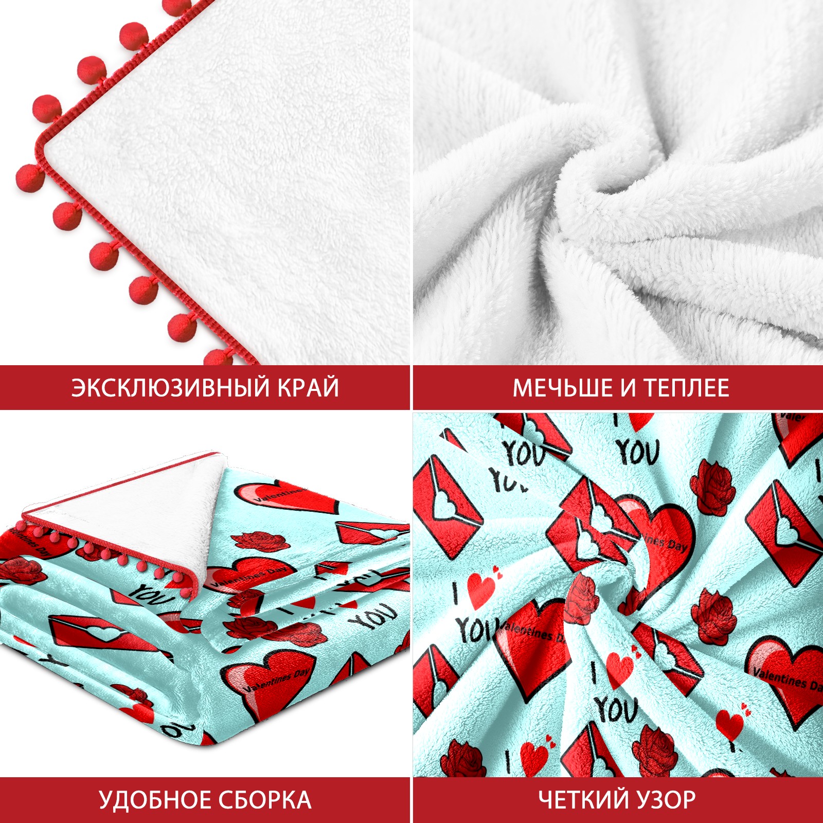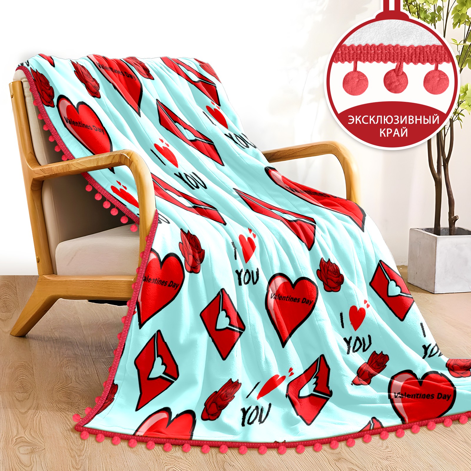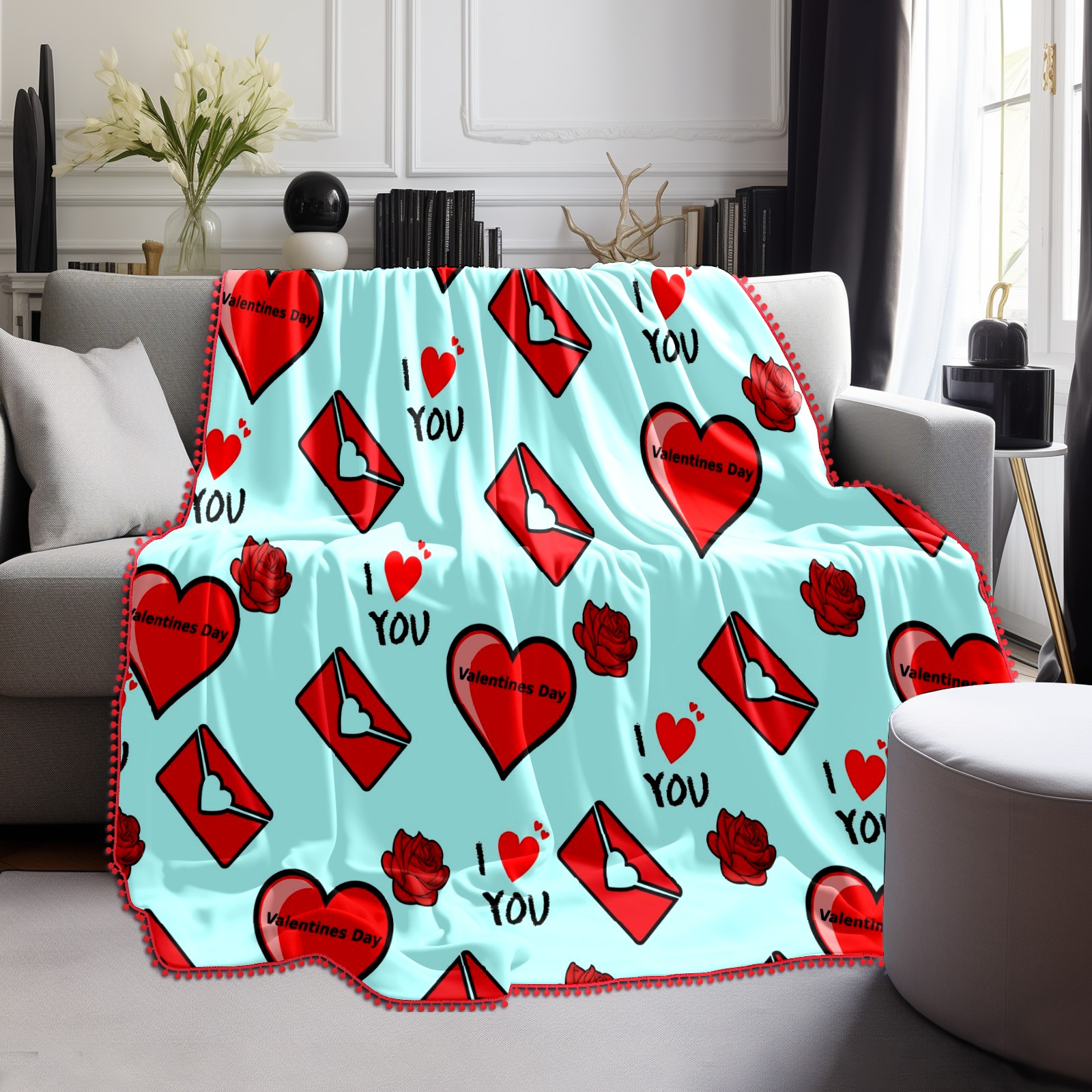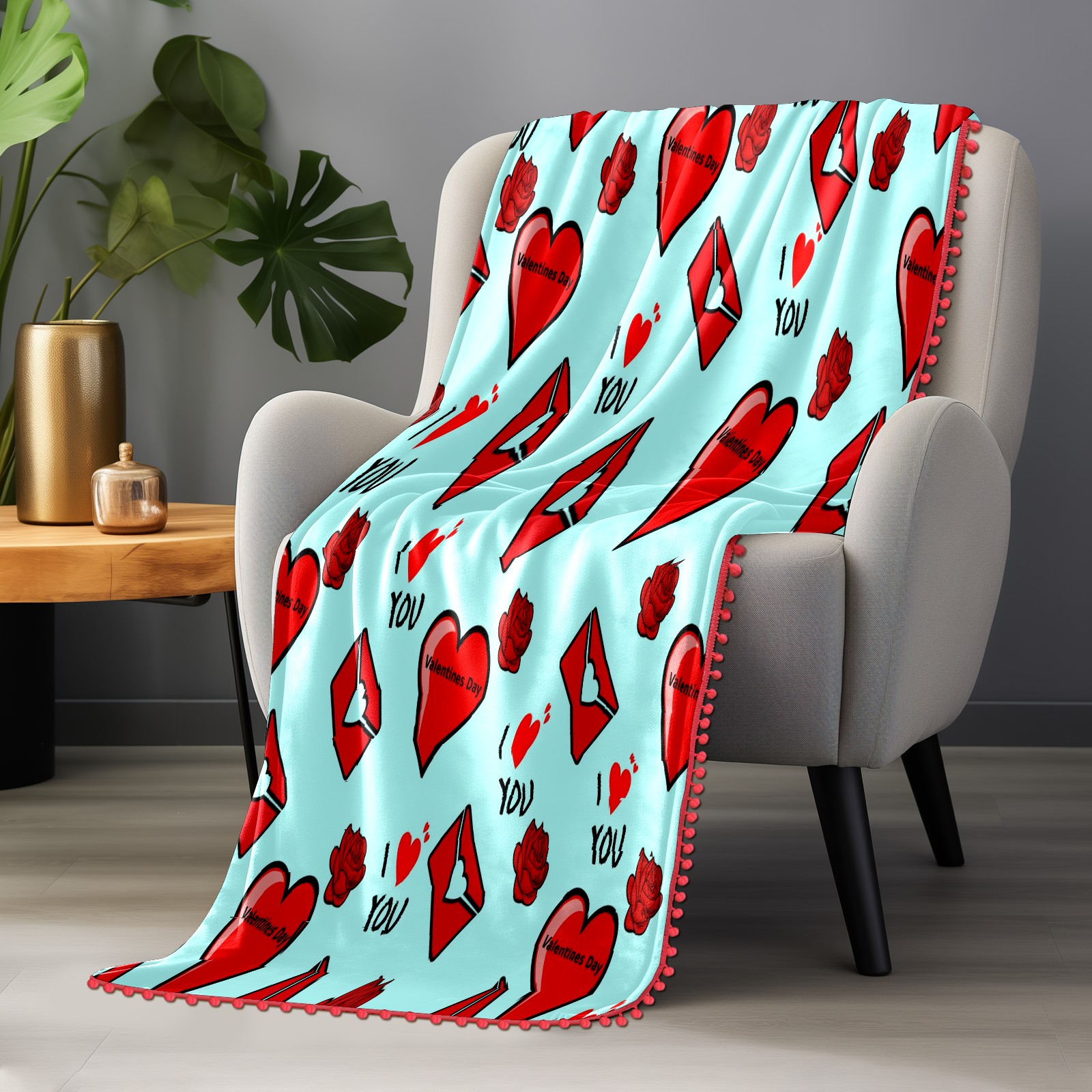 流苏毛毯 Love You Heart Envelope Rose
