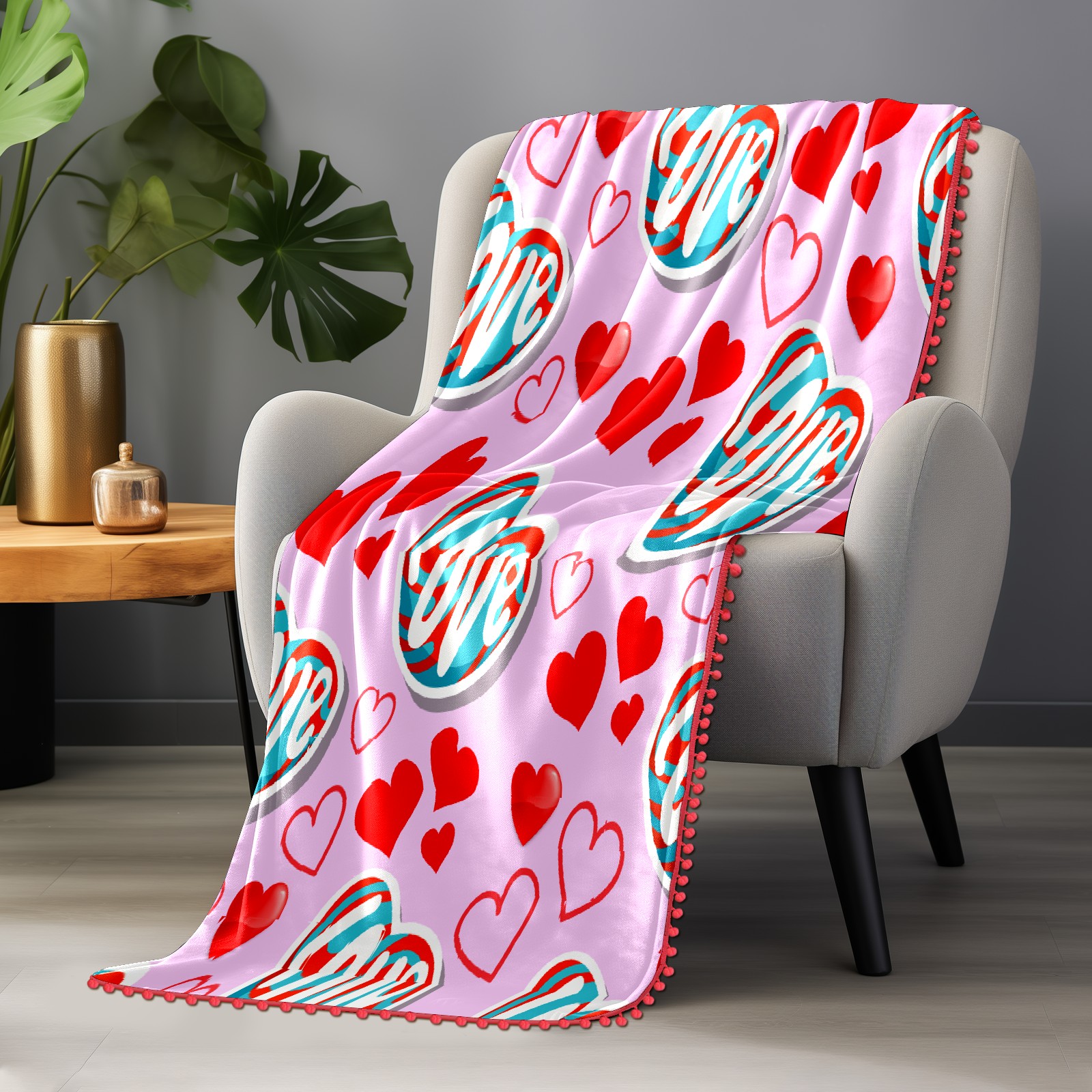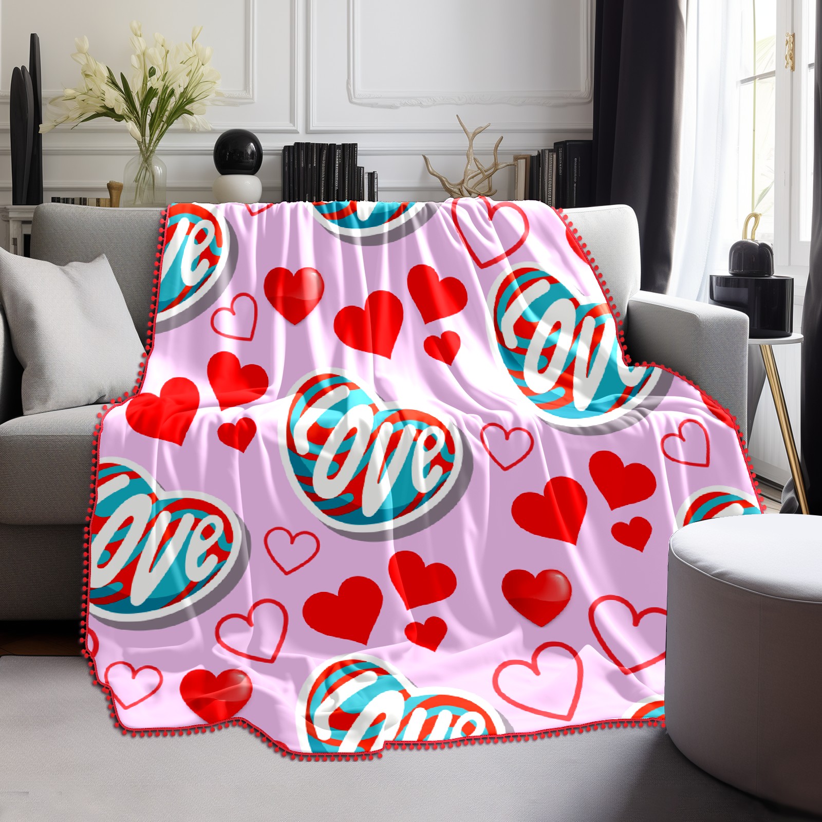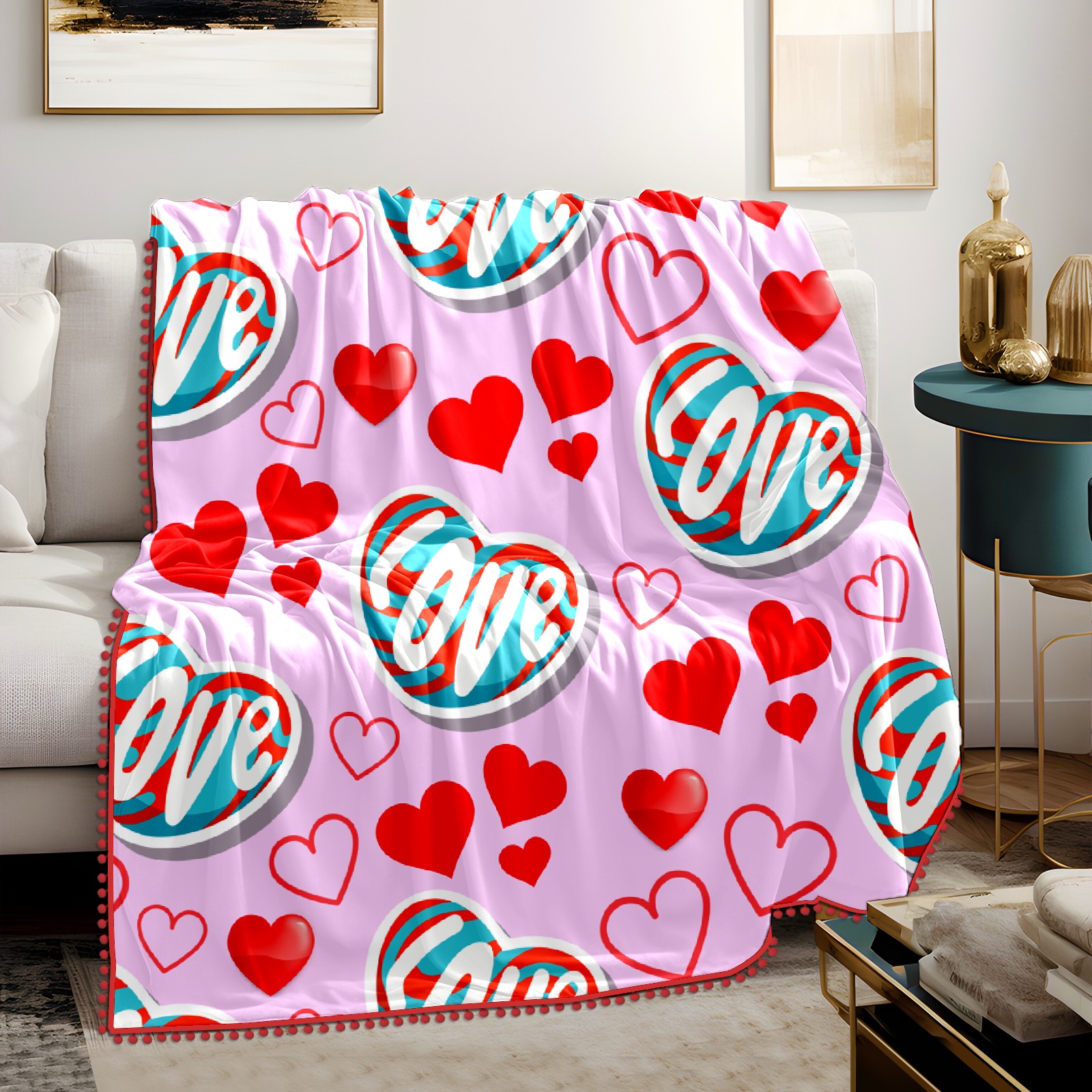 流苏毛毯 Love Heart On Pink