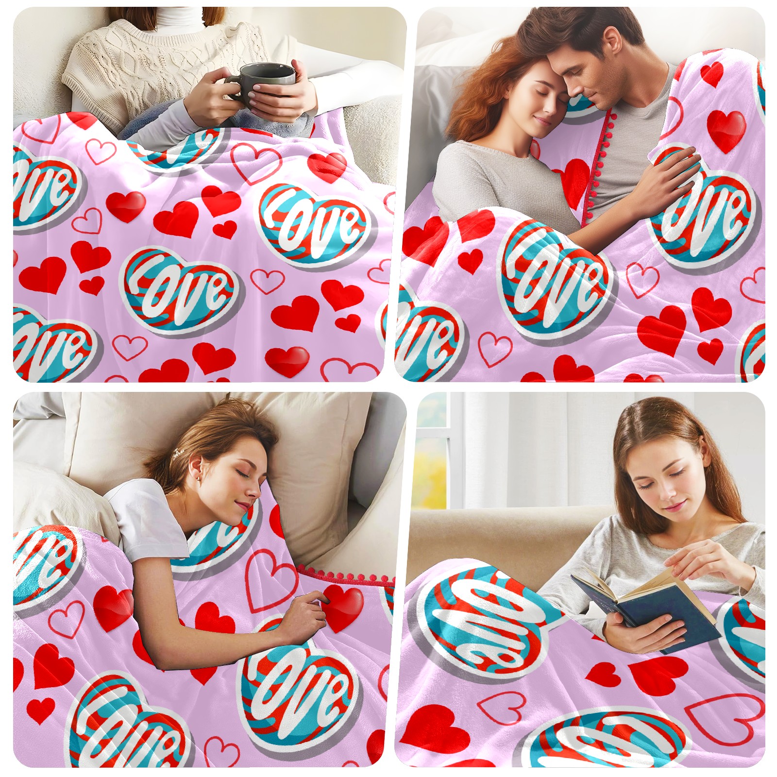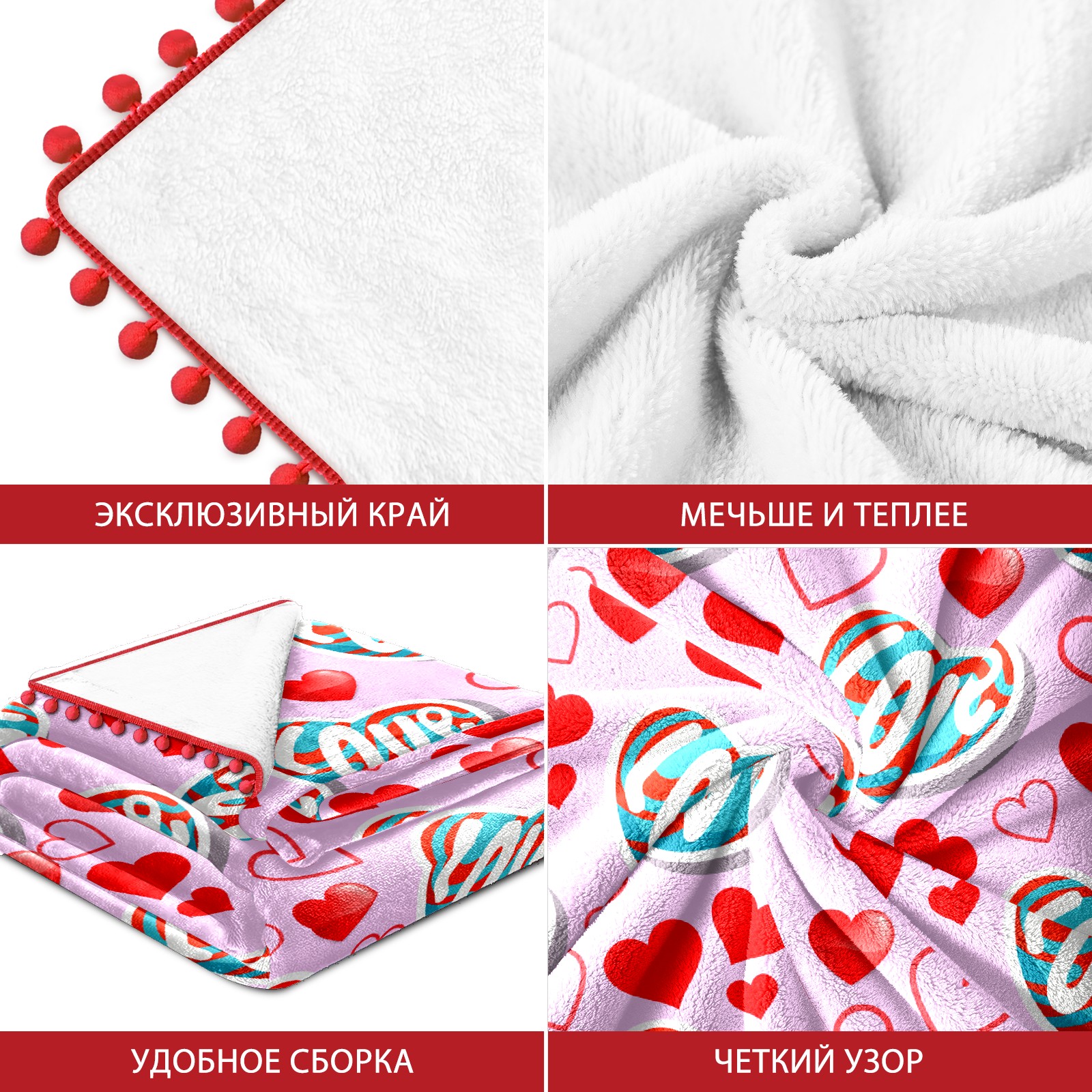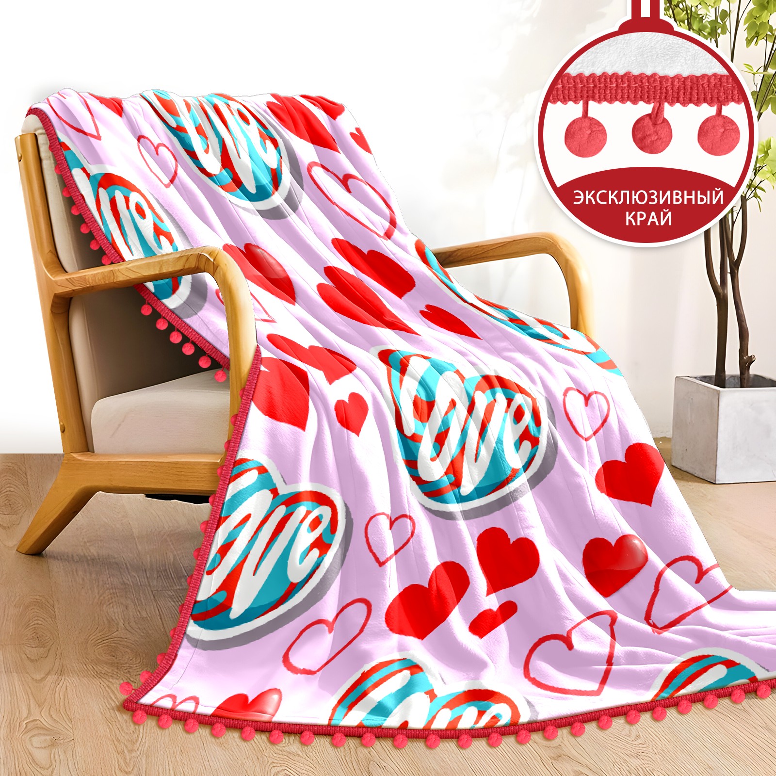 流苏毛毯 Love Heart On Pink