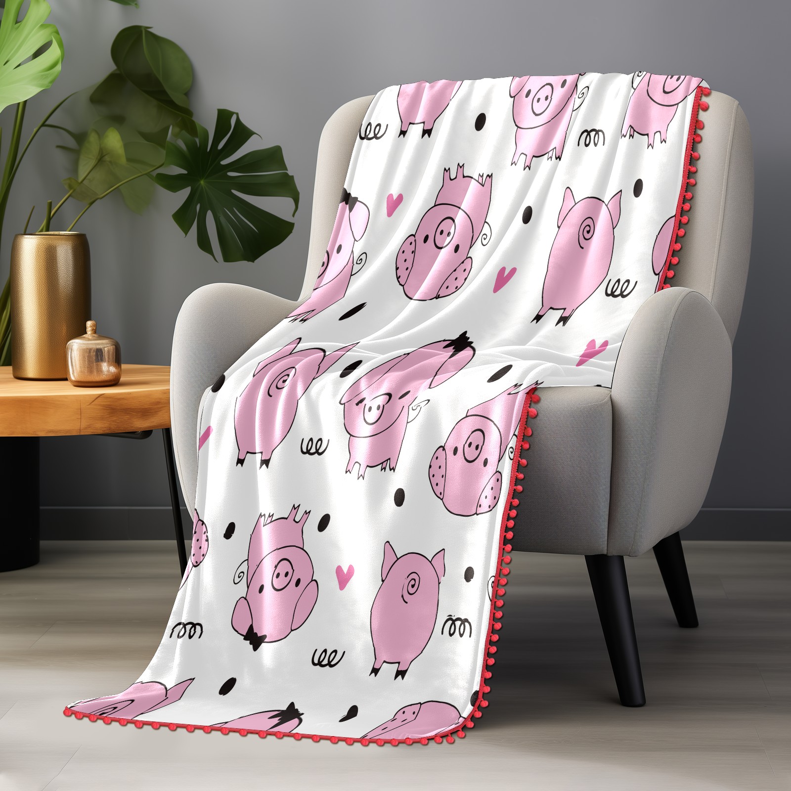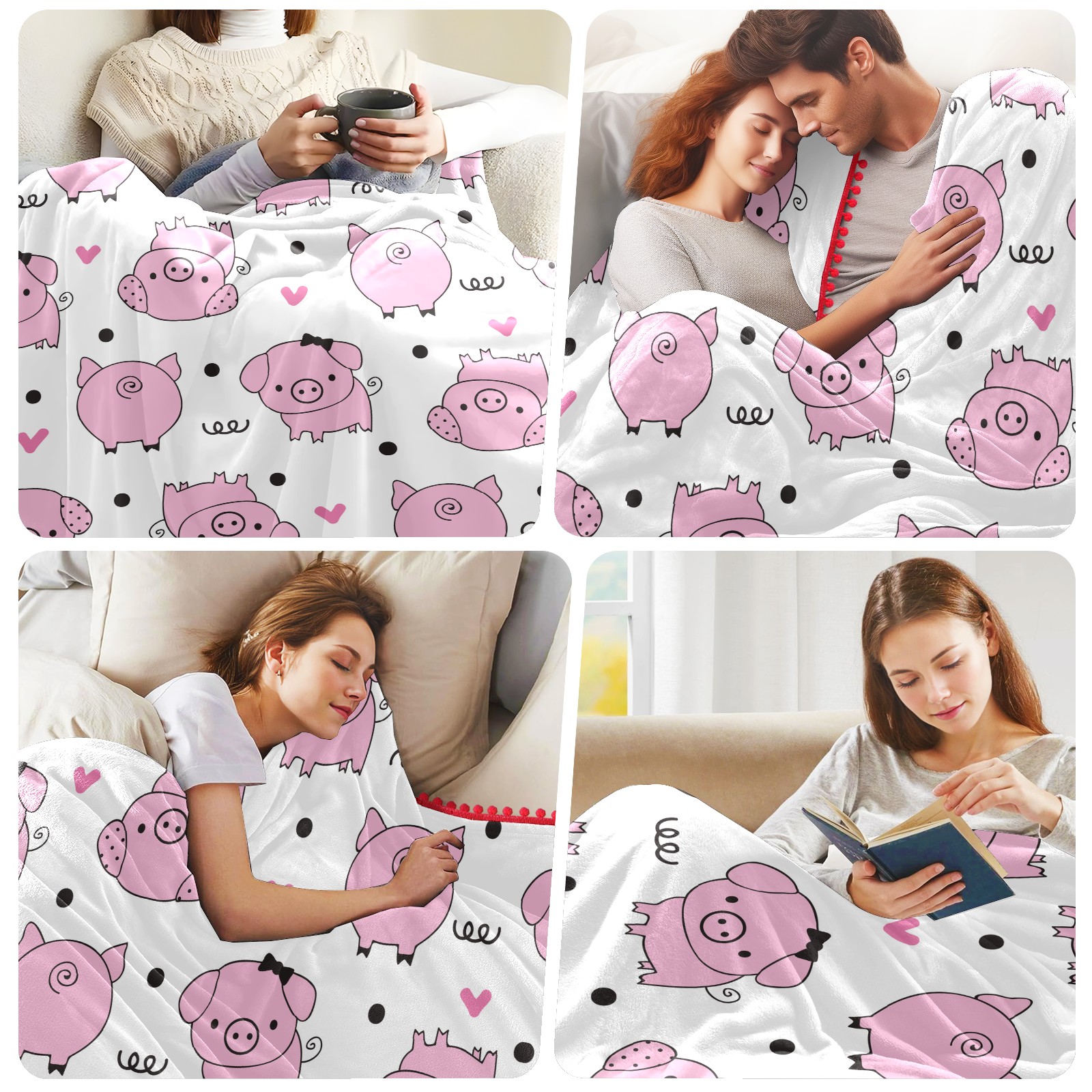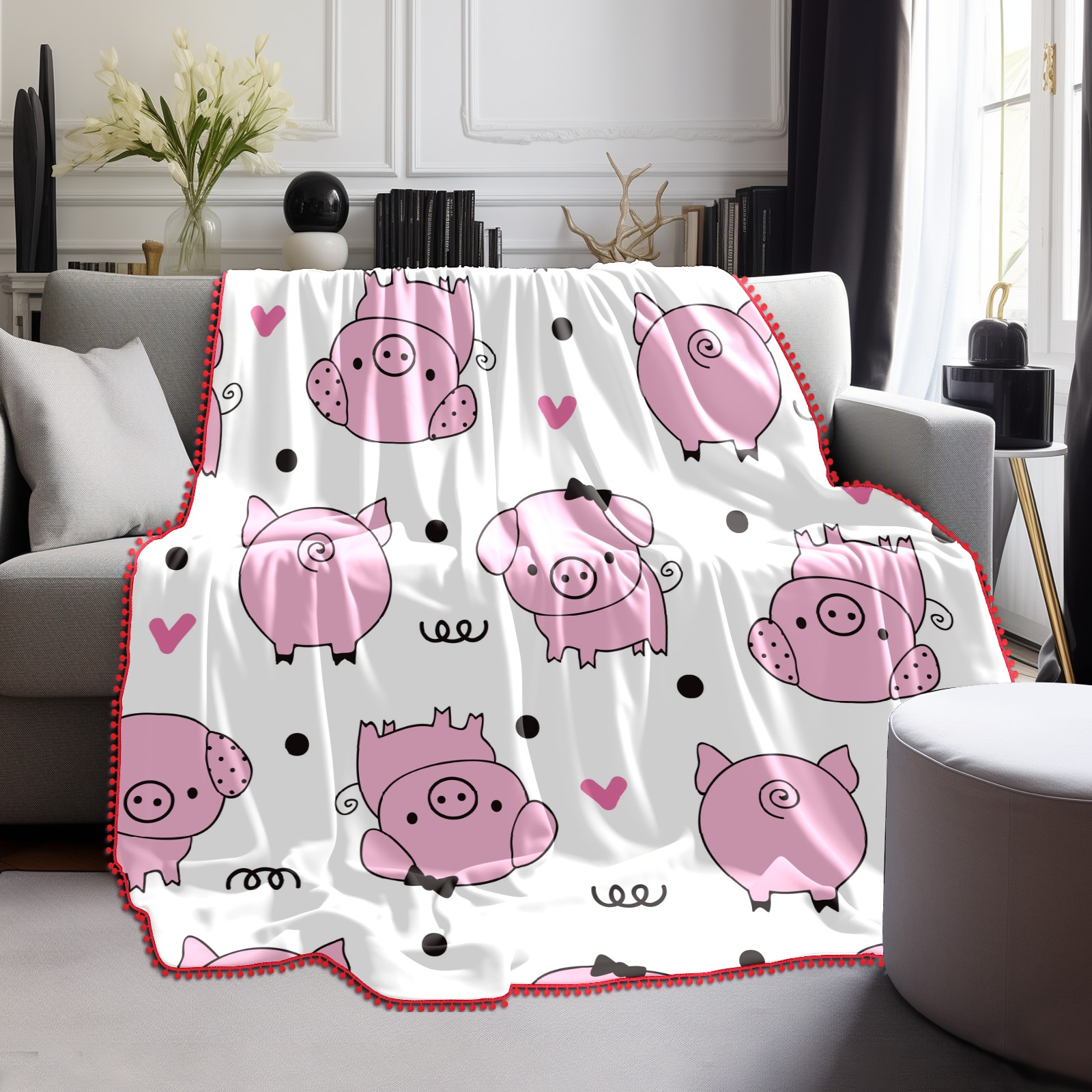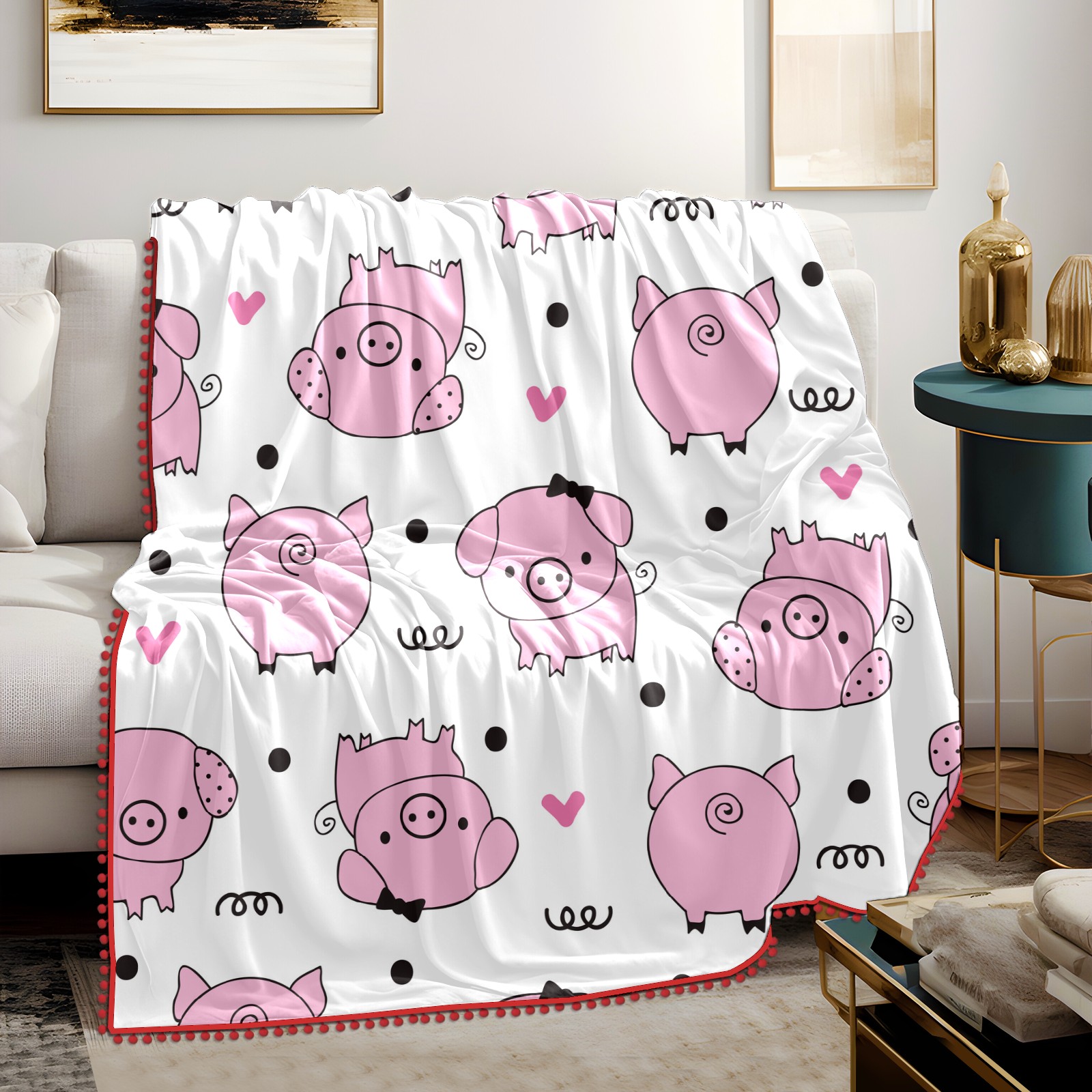 流苏毛毯 Pink Pigs Pattern Cute Love Heart