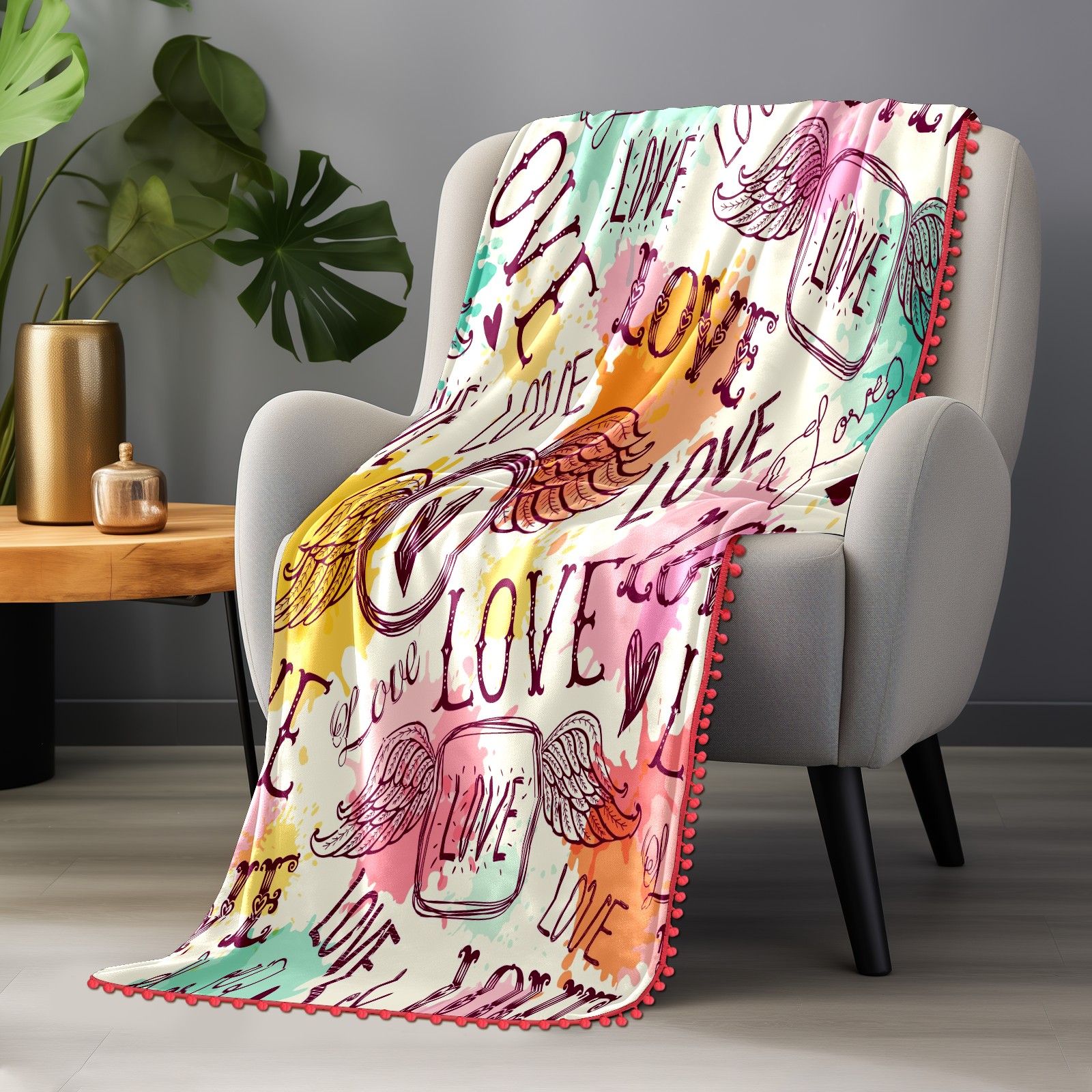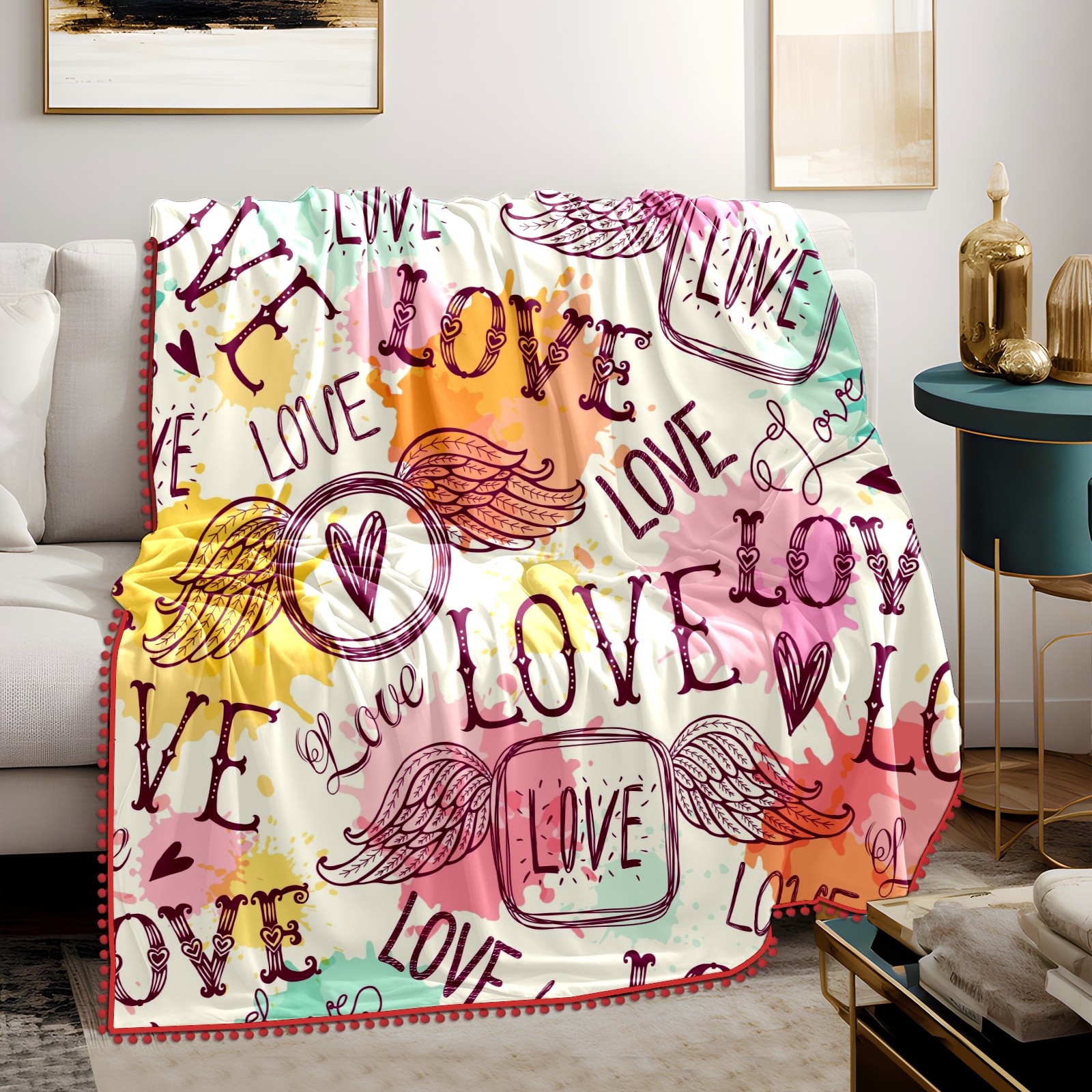 流苏毛毯 Love Heart Wing