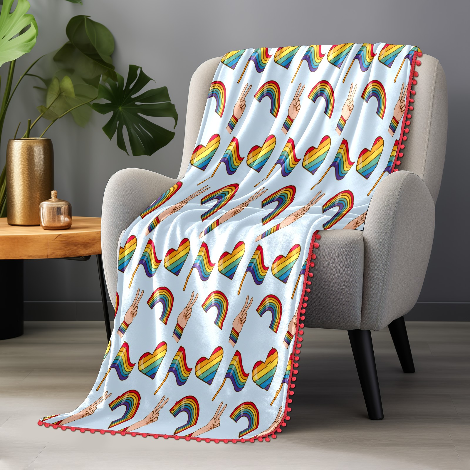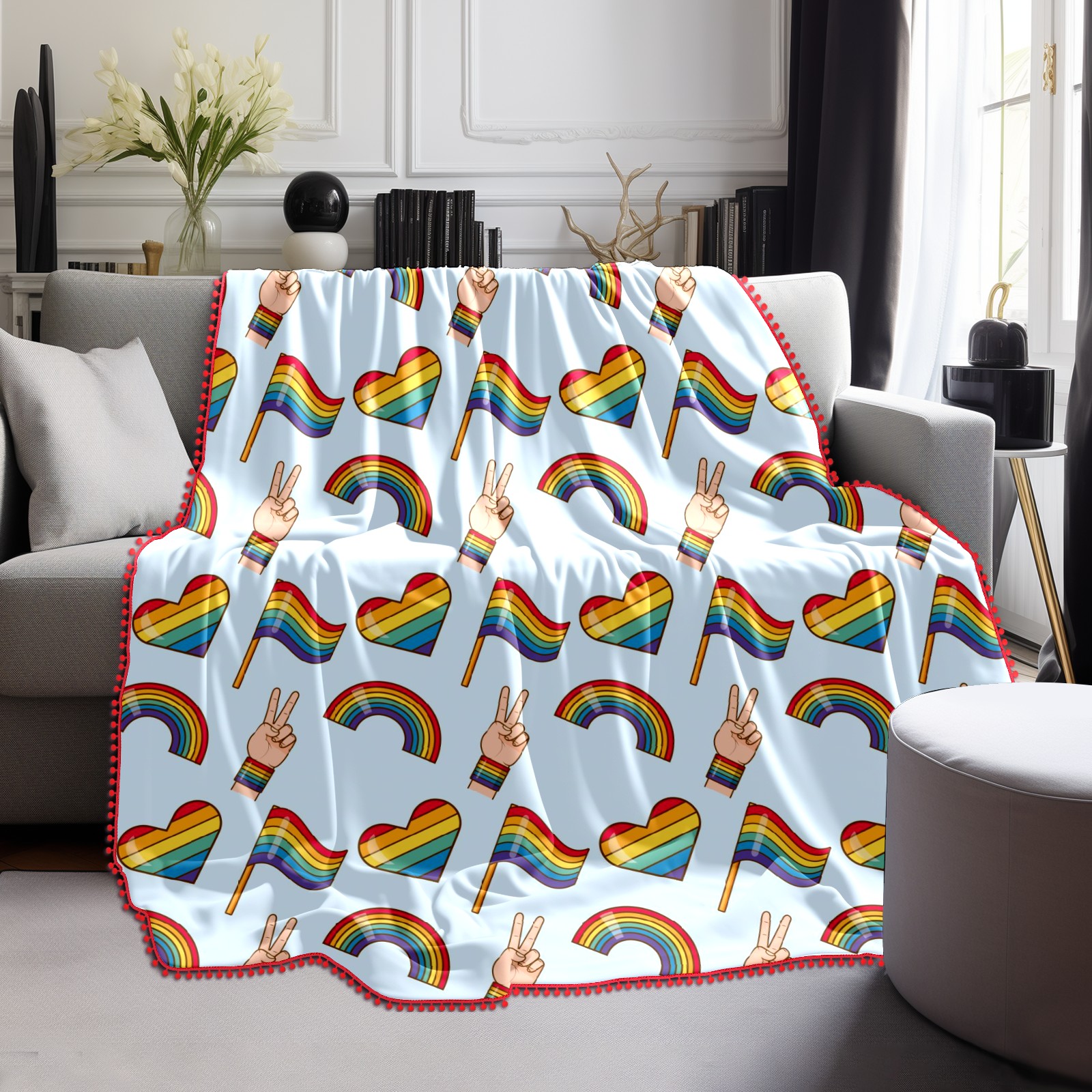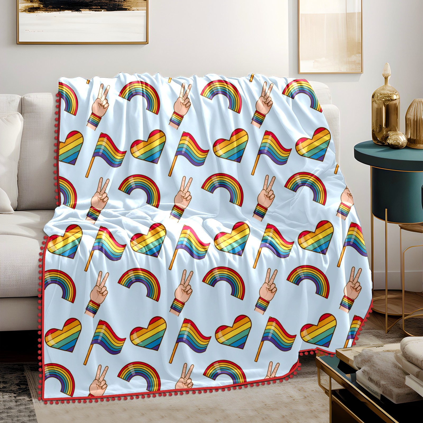 流苏毛毯 Pride Day Victory Love Heart Flag Rainbow