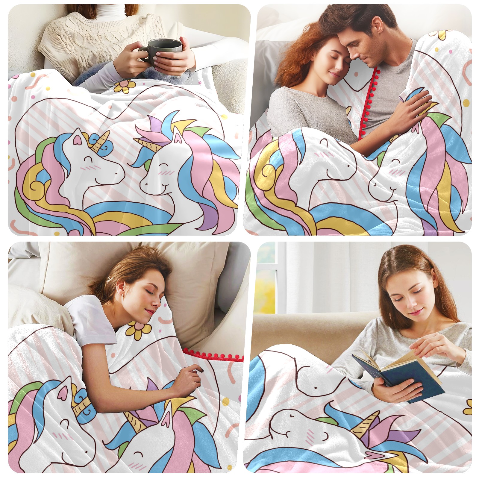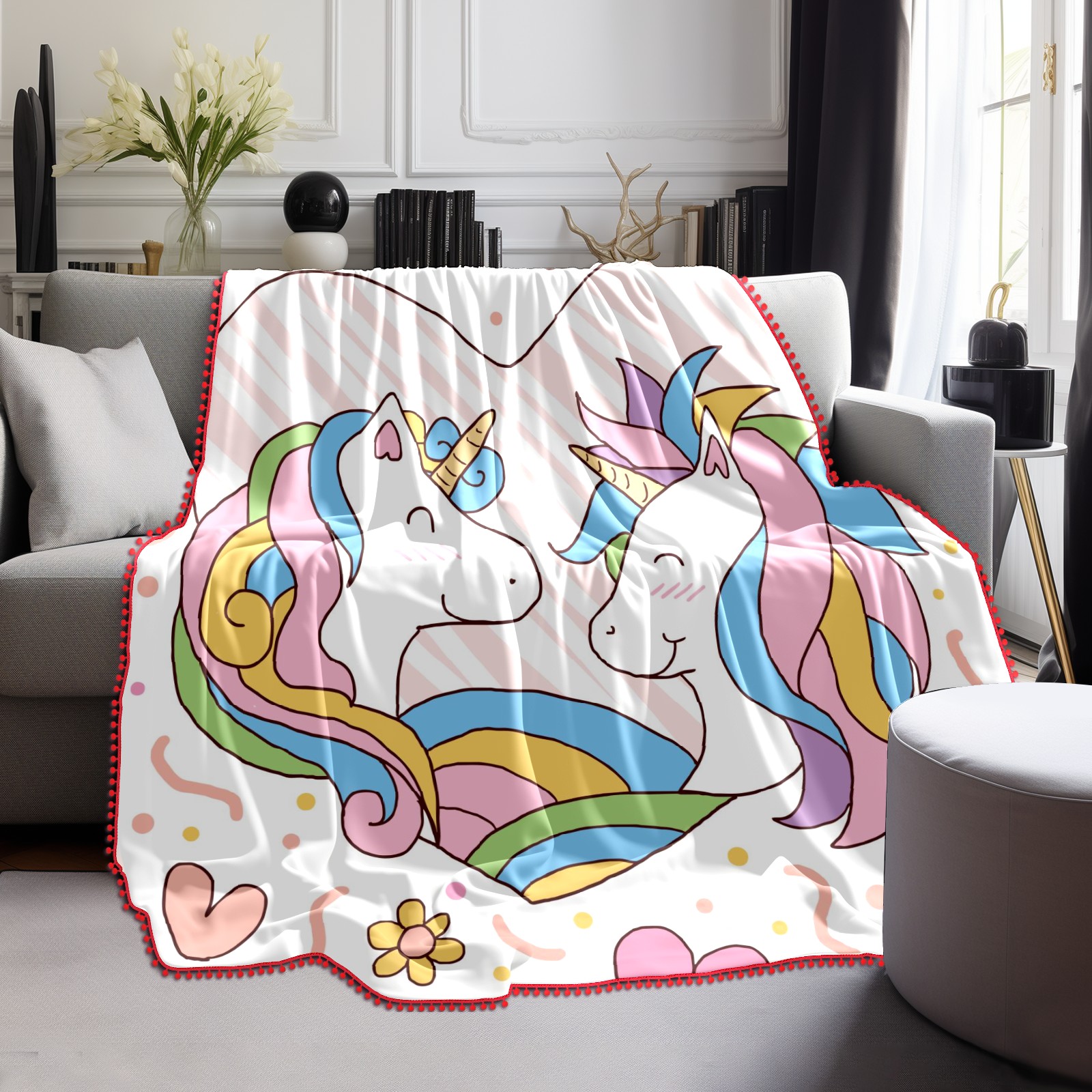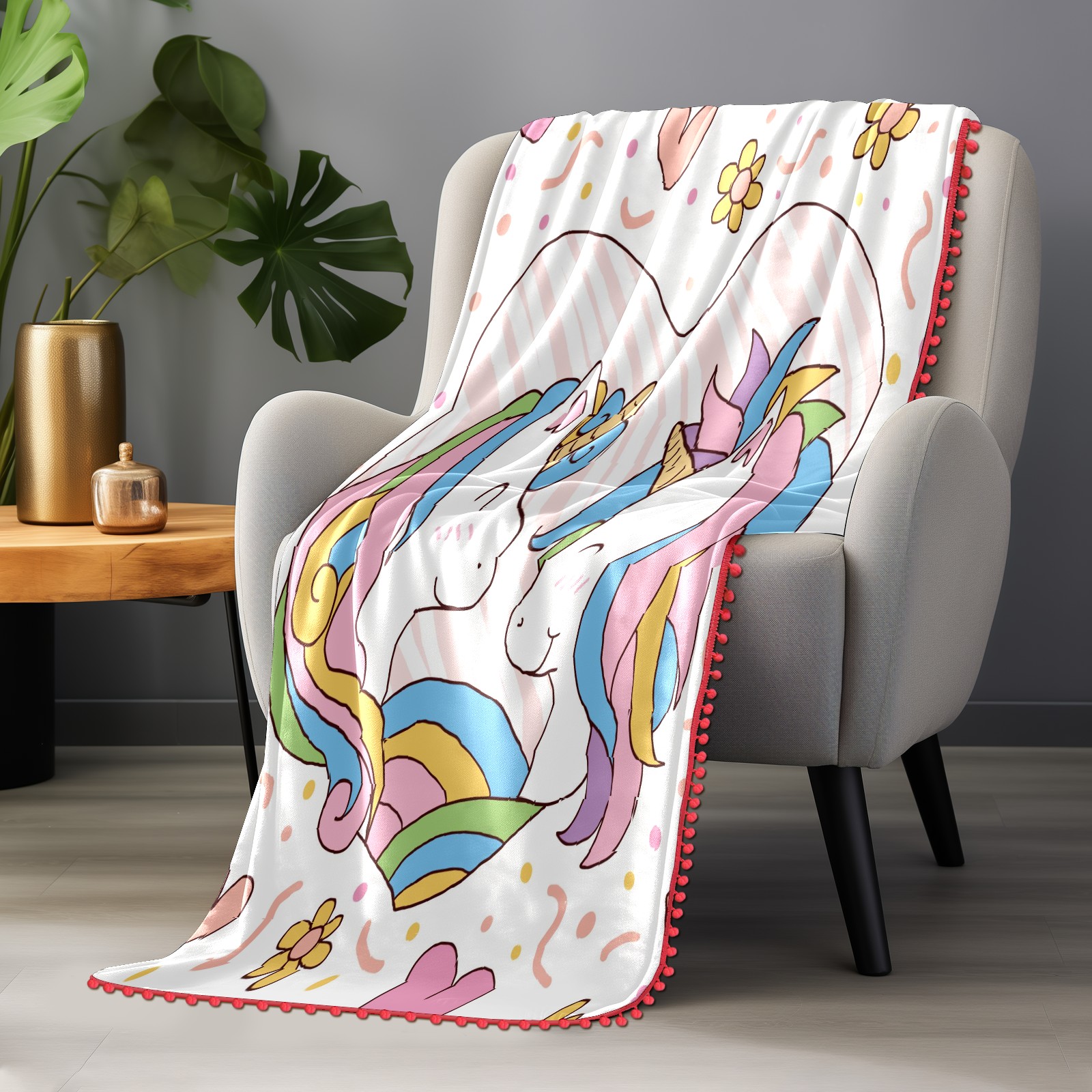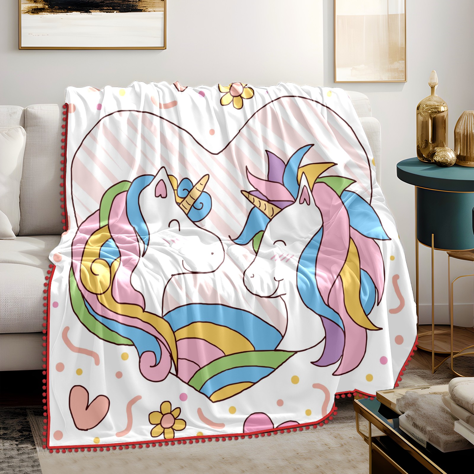 流苏毛毯 Rainbow Unicorn Love Pink Heart Flower