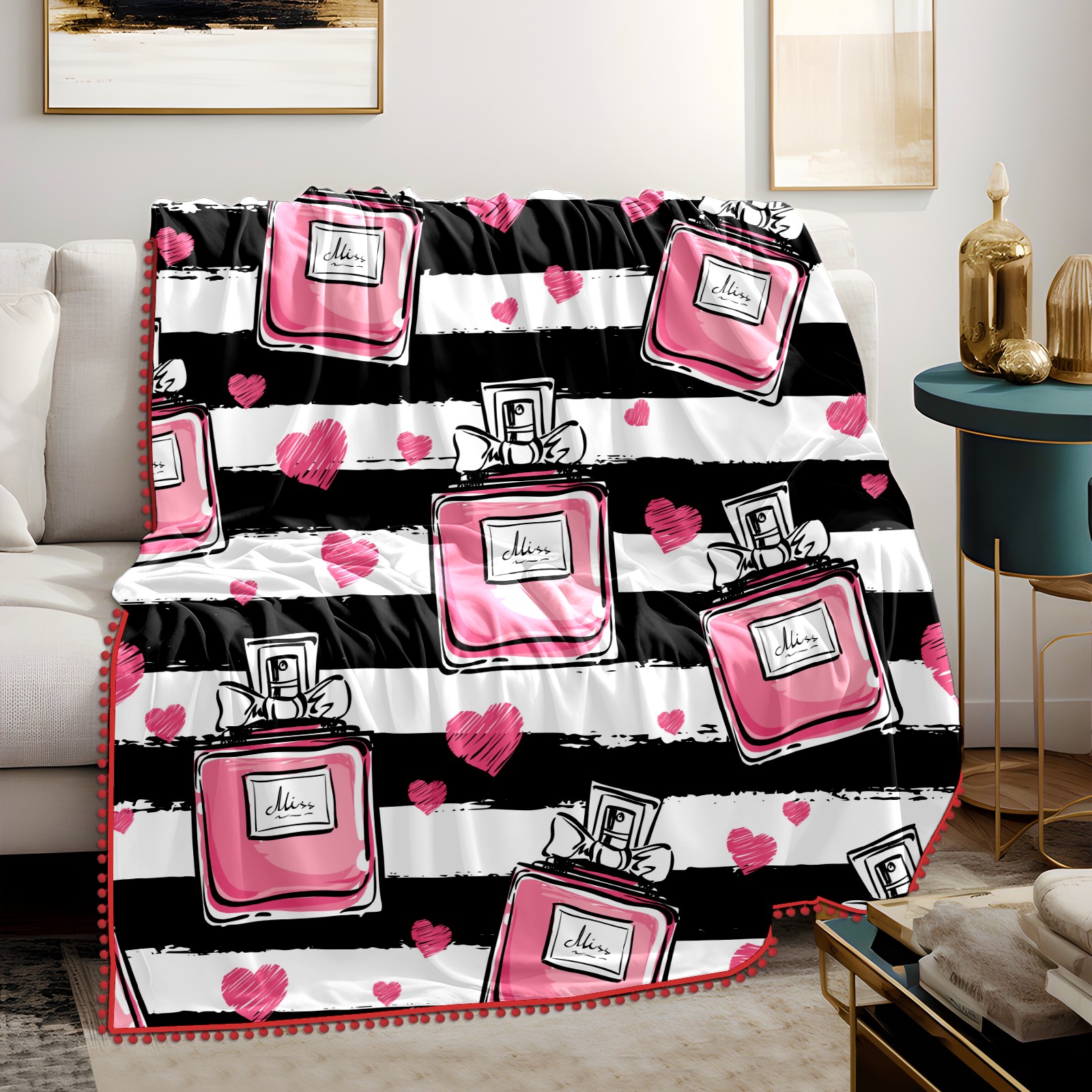 流苏毛毯 Pink Love Heart Perfume Pattern