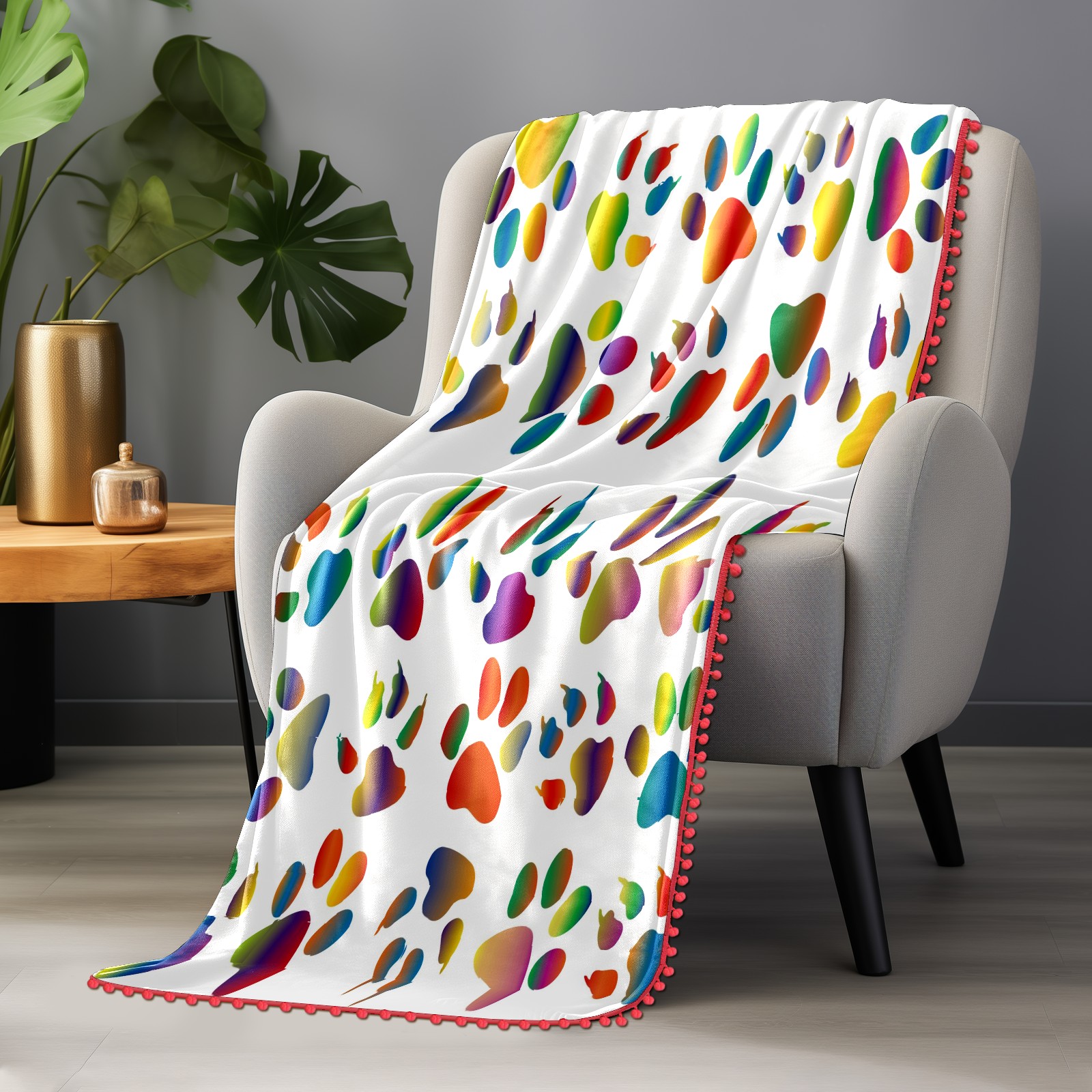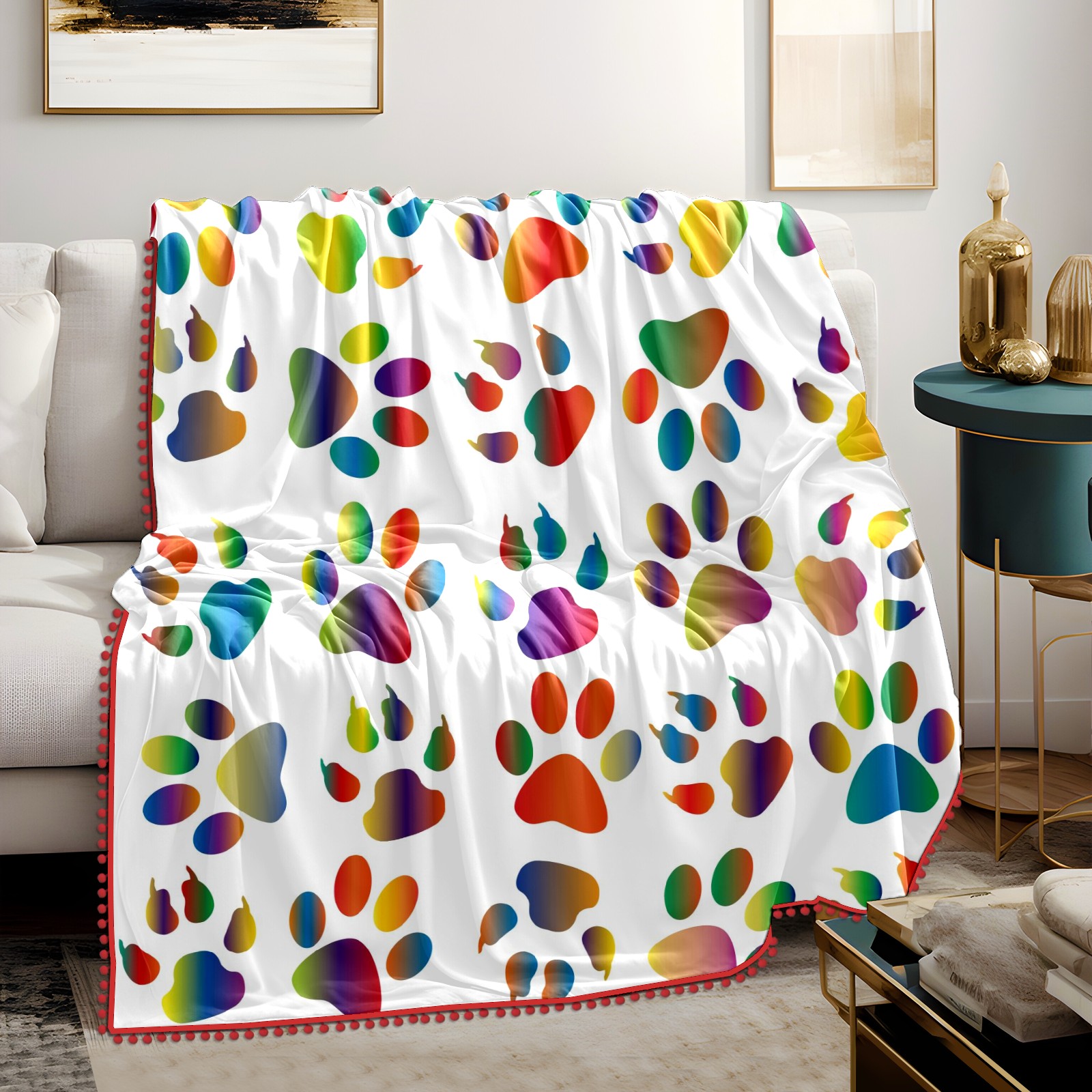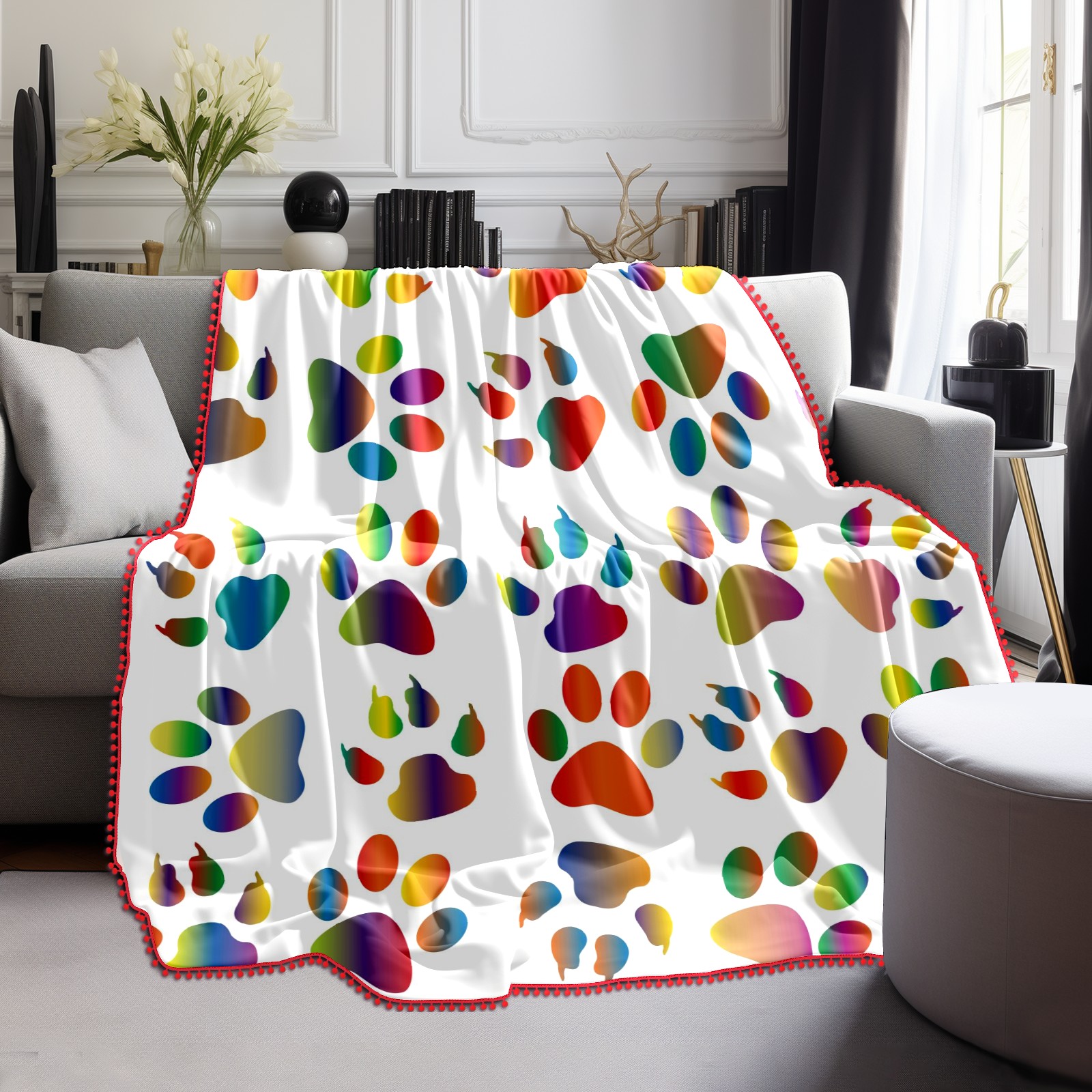 流苏毛毯 Colorful Prismatic Animal Paw Print