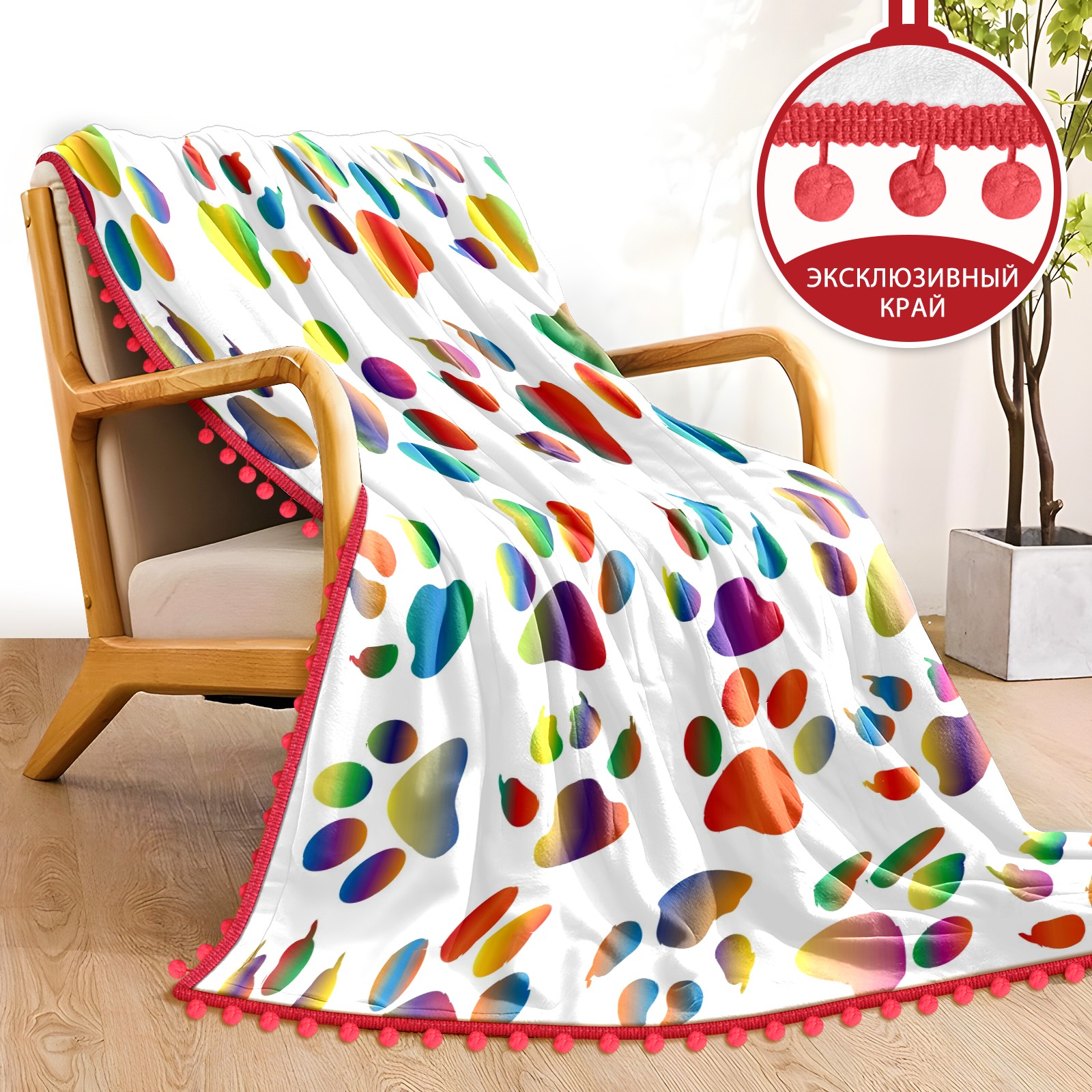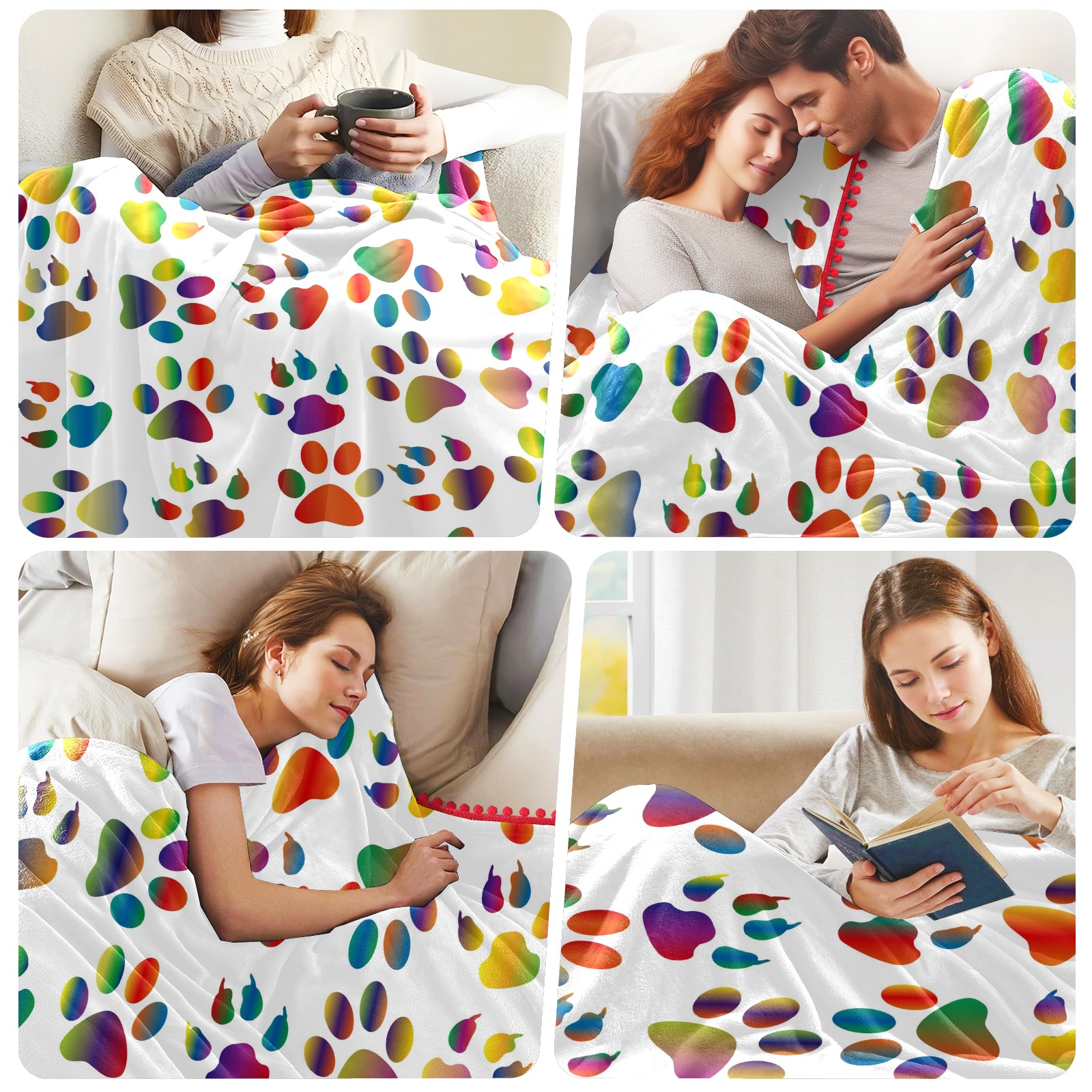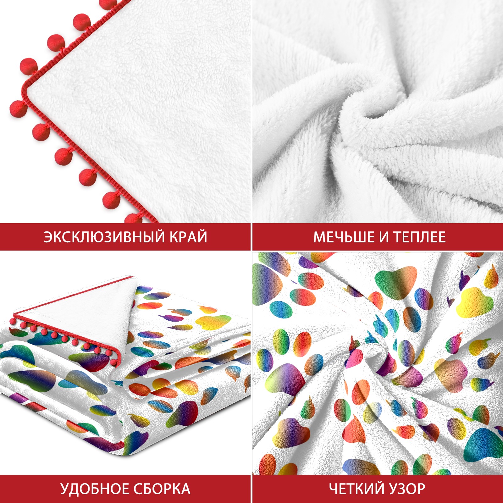 流苏毛毯 Colorful Prismatic Animal Paw Print