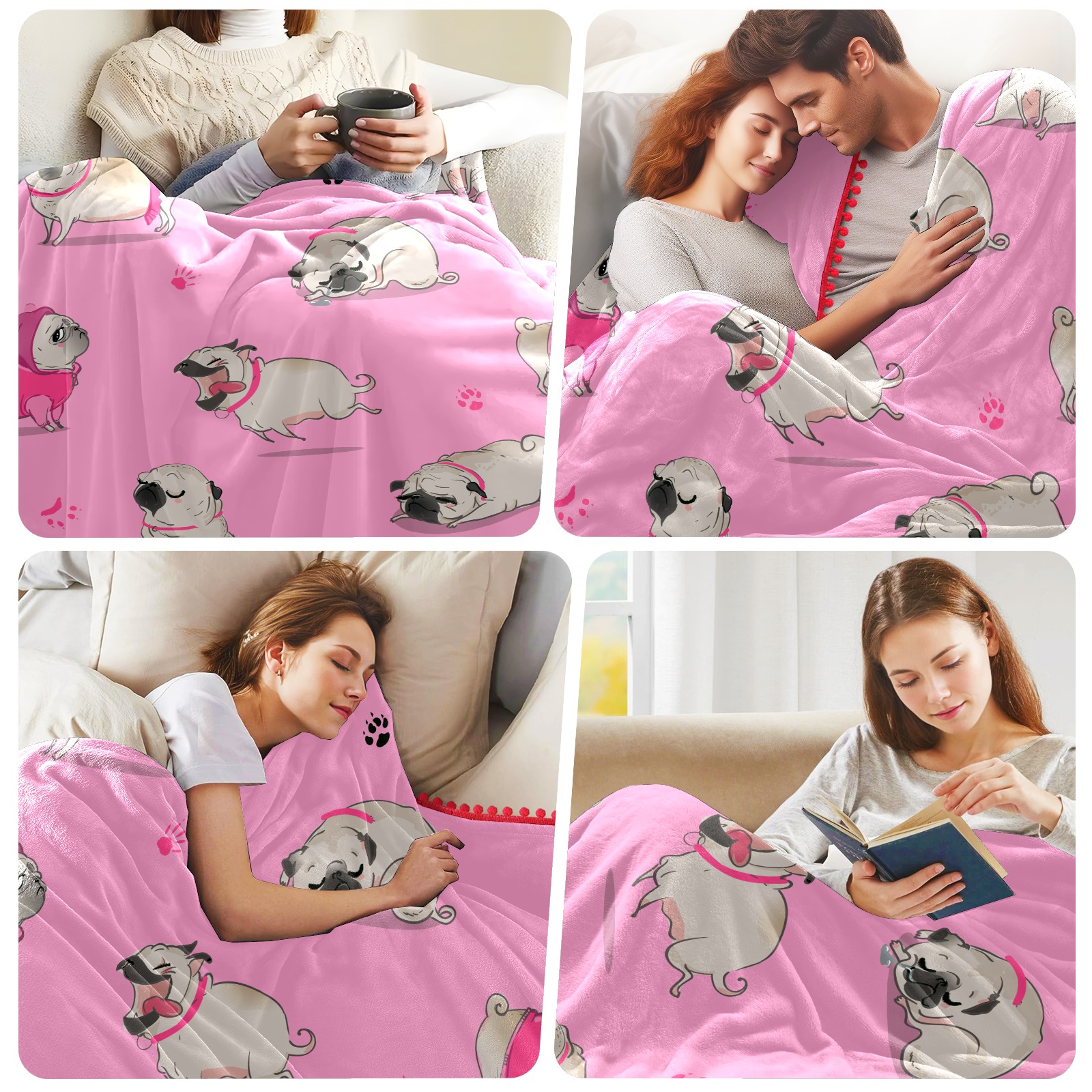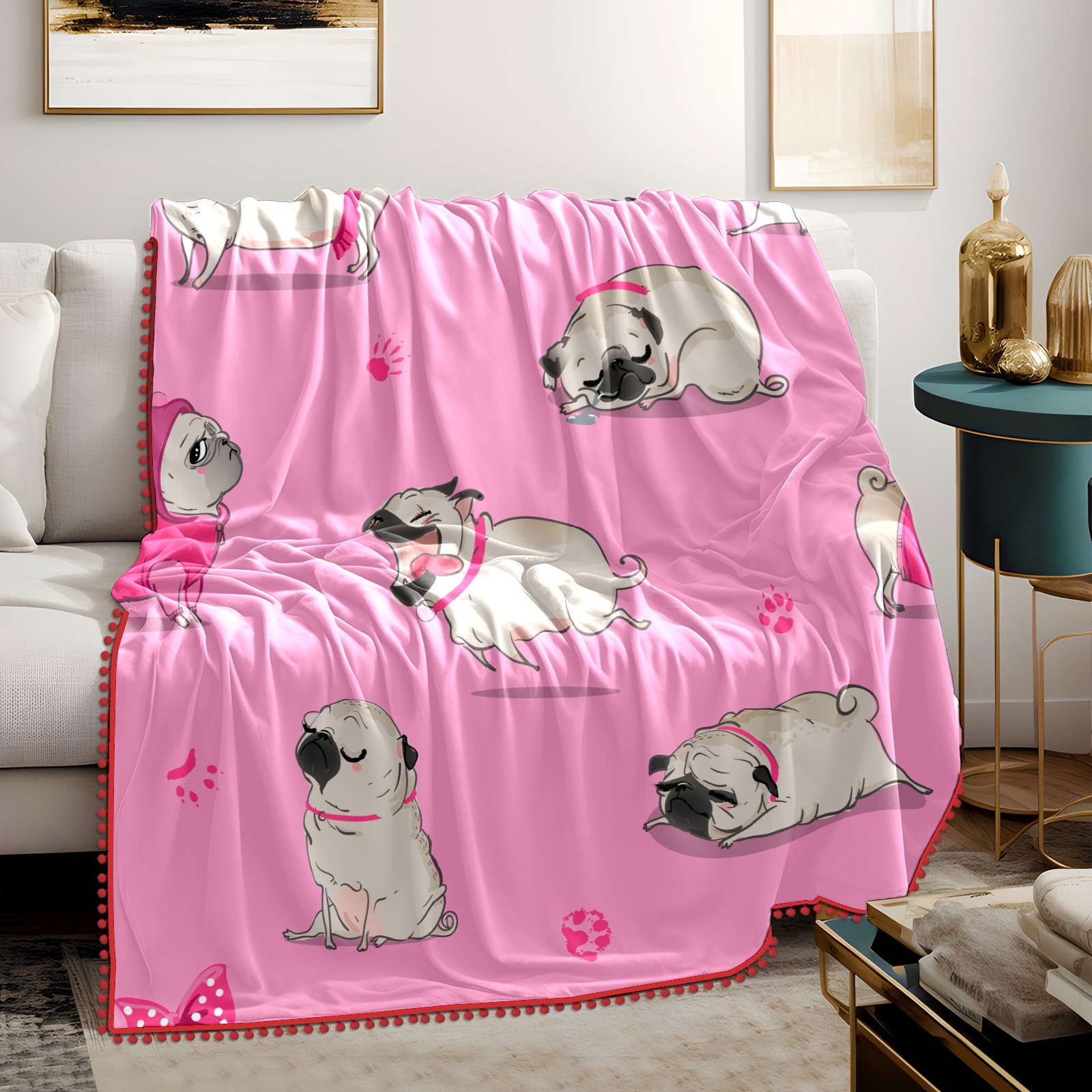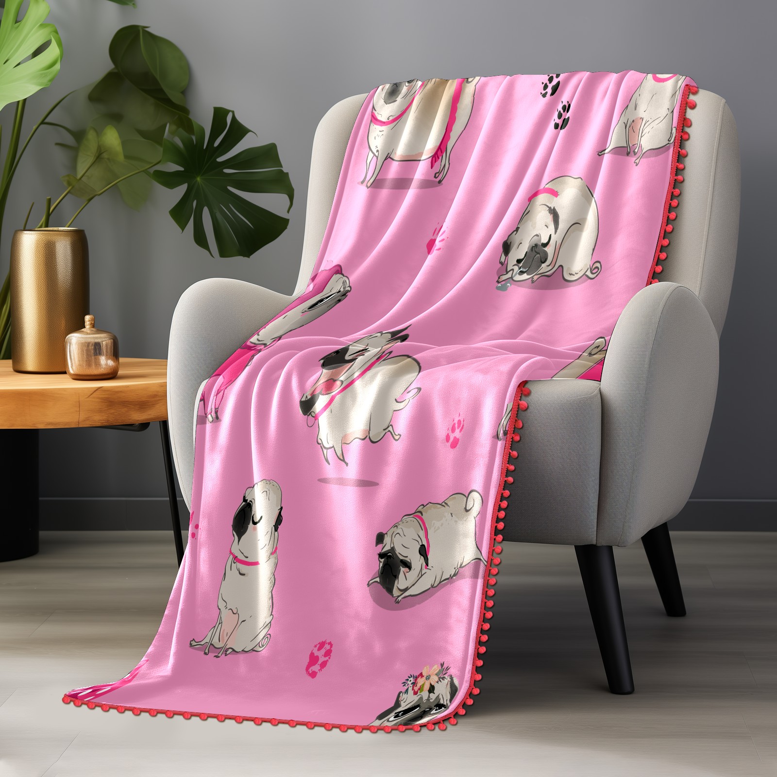 流苏毛毯 French Pug Bear Paw Dog Footprints