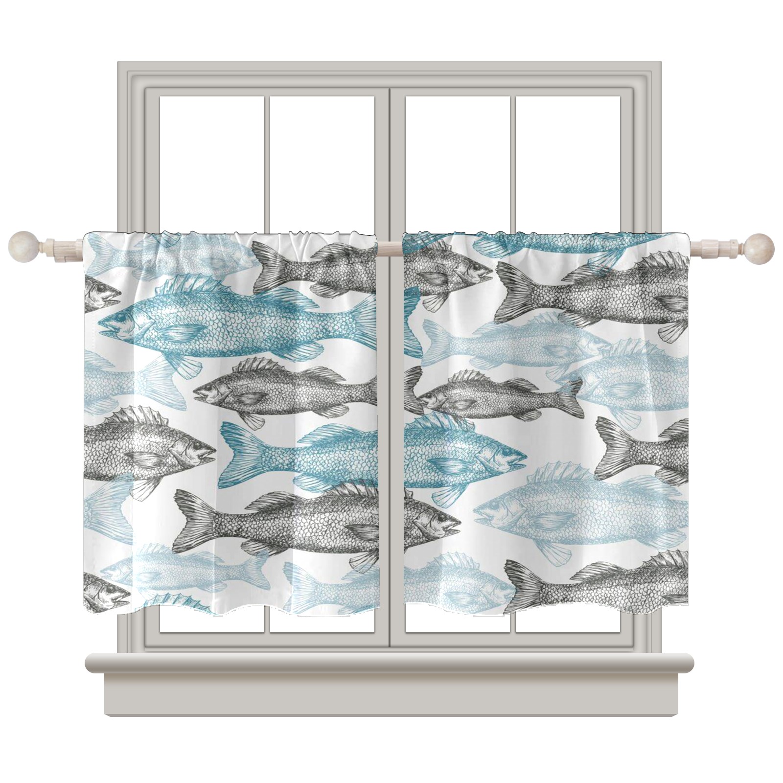 Шторы-панно для дома, декоративные драпировки для гостиной и спальни, легкие и прочные, Vintage Blue Fishes