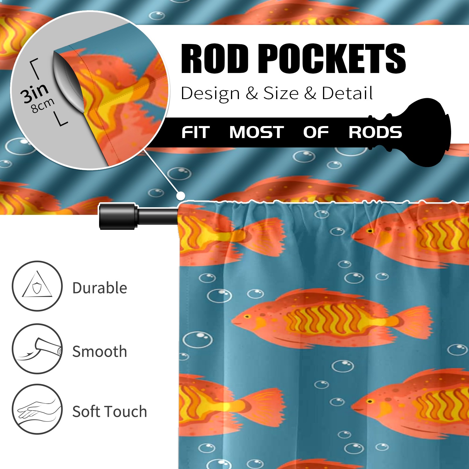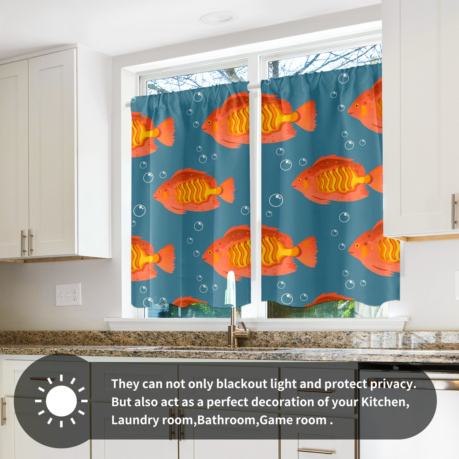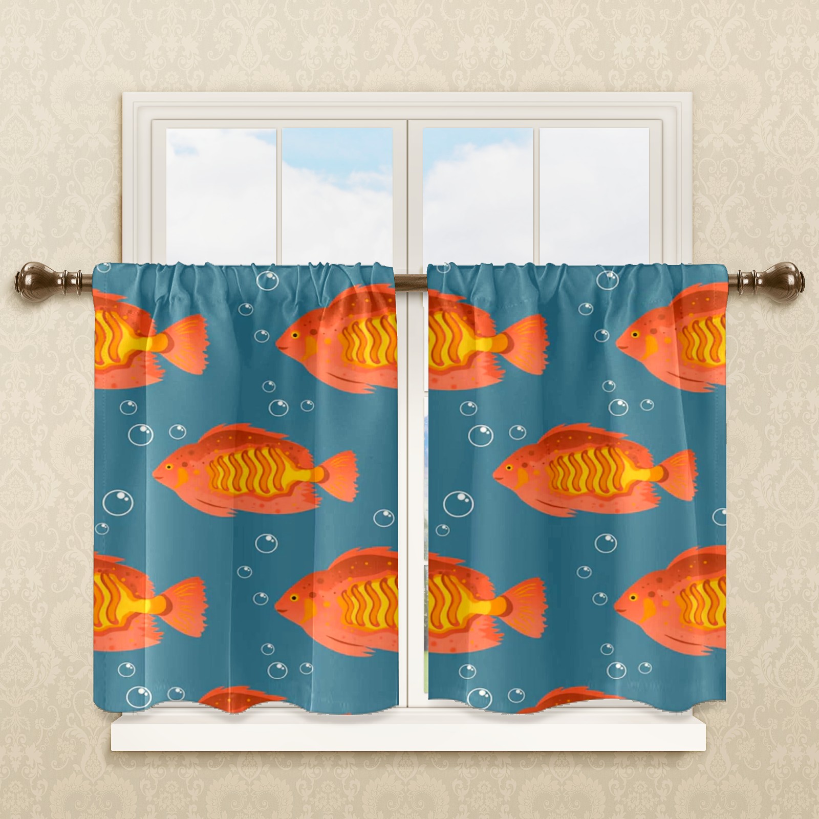 Шторы-панно для дома, декоративные драпировки для гостиной и спальни, легкие и прочные, Orange Sea Fishes
