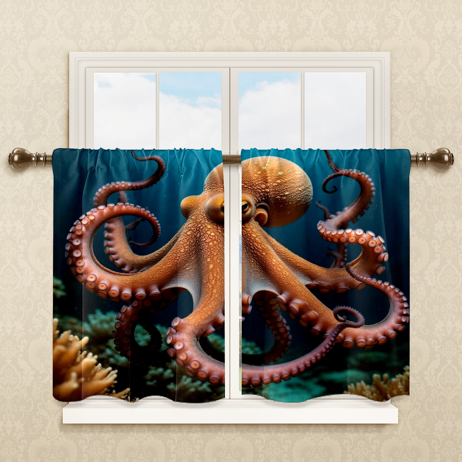 Шторы-панно для дома, декоративные драпировки для гостиной и спальни, легкие и прочные, Brown Octopus