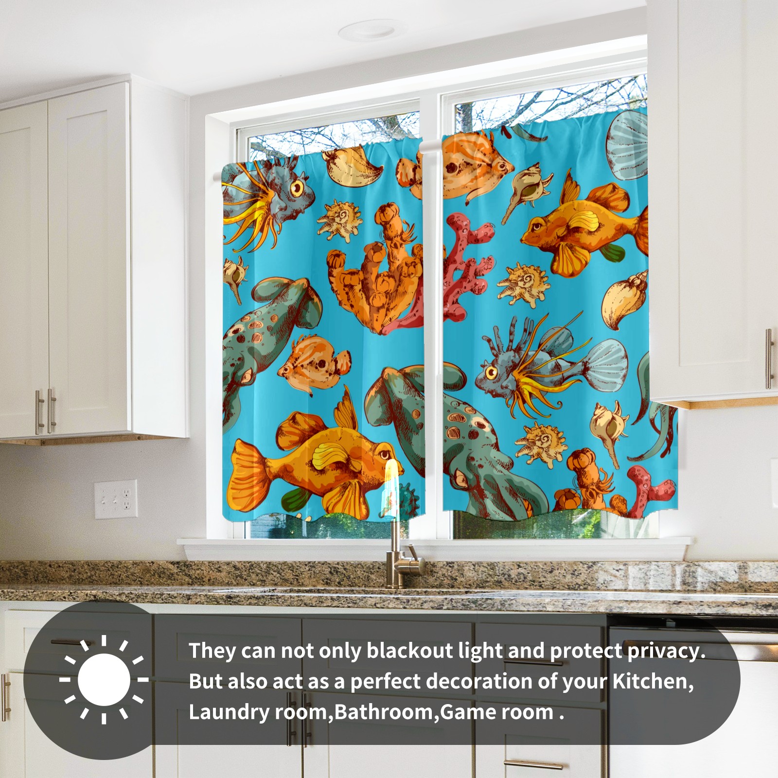 Шторы-панно для дома, декоративные драпировки для гостиной и спальни, легкие и прочные, Blue Sea Colorful Fishes