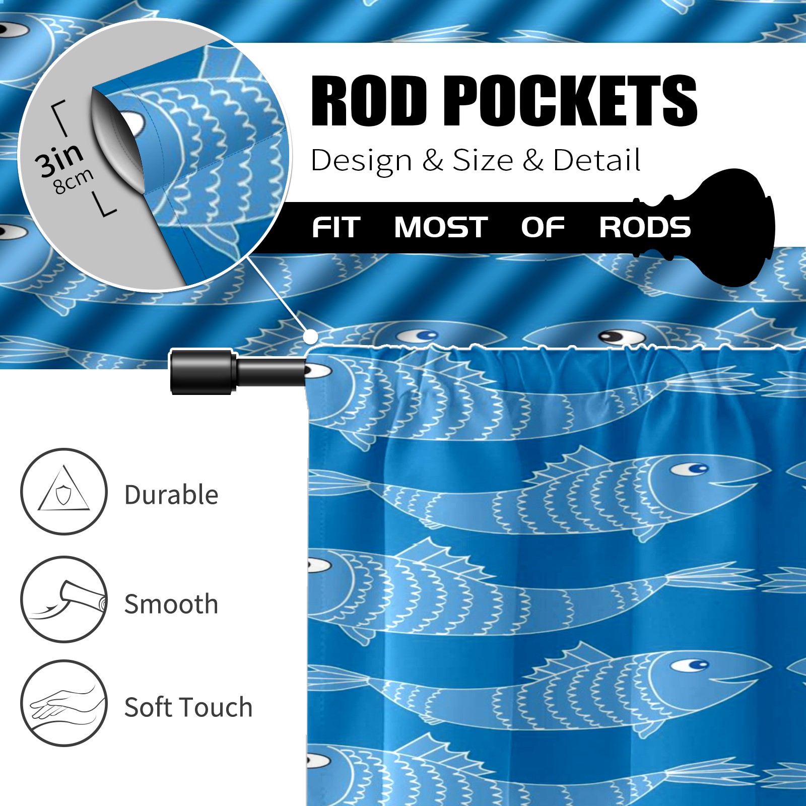 Шторы-панно для дома, декоративные драпировки для гостиной и спальни, легкие и прочные, Blue Sea Fishes