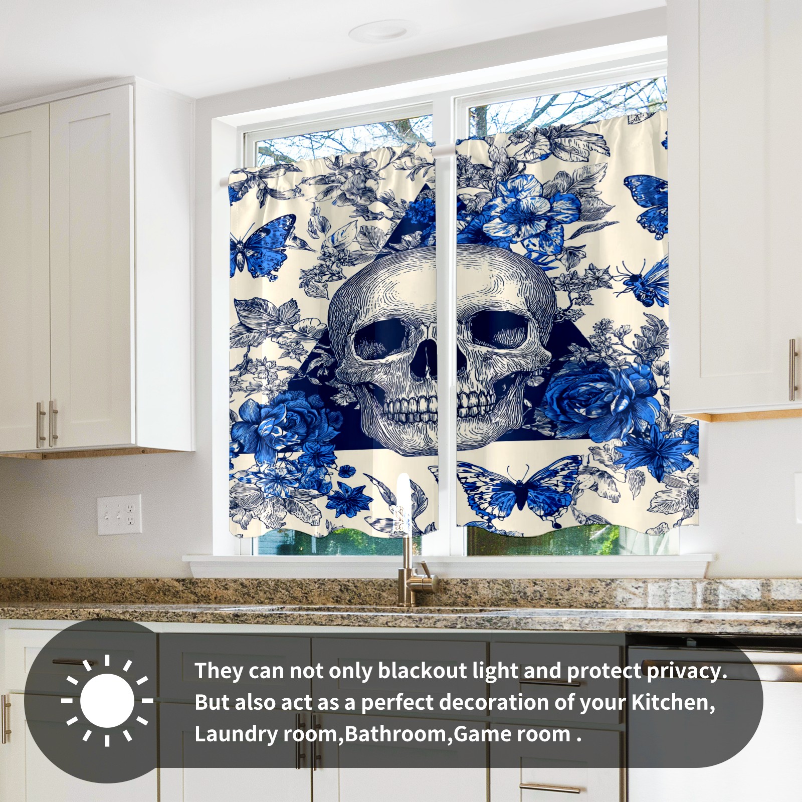 Шторы-панно для дома, декоративные драпировки для гостиной и спальни, легкие и прочные, Blue Skull Flowers