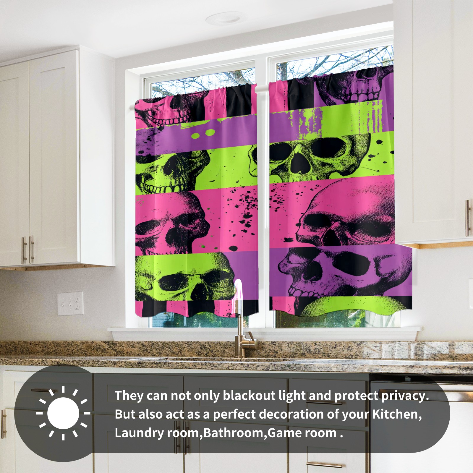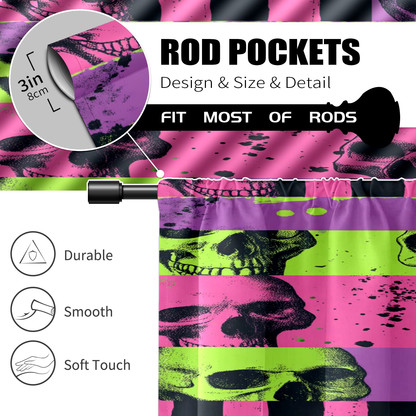 Шторы-панно для дома, декоративные драпировки для гостиной и спальни, легкие и прочные, Pink Purple Skulls Stripes