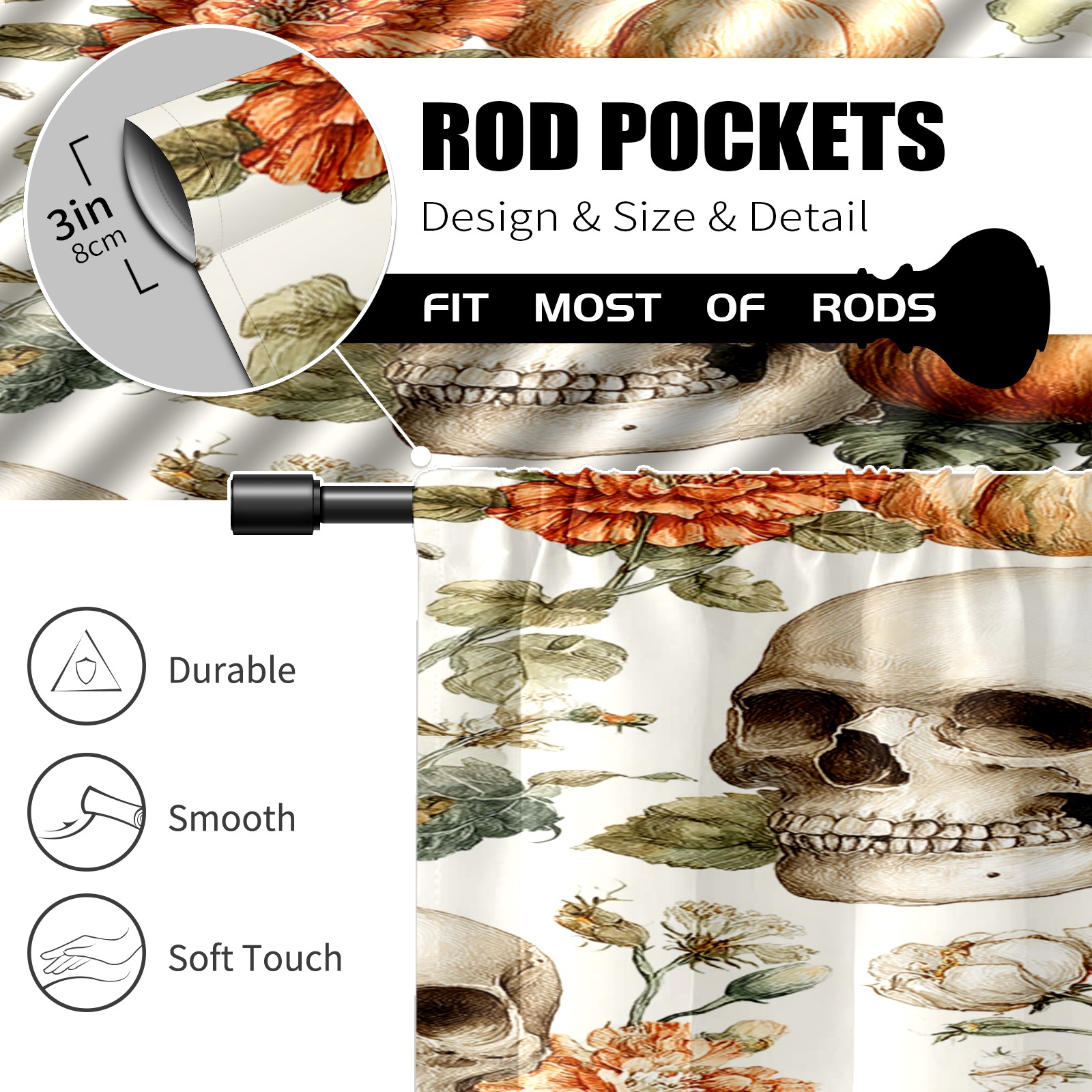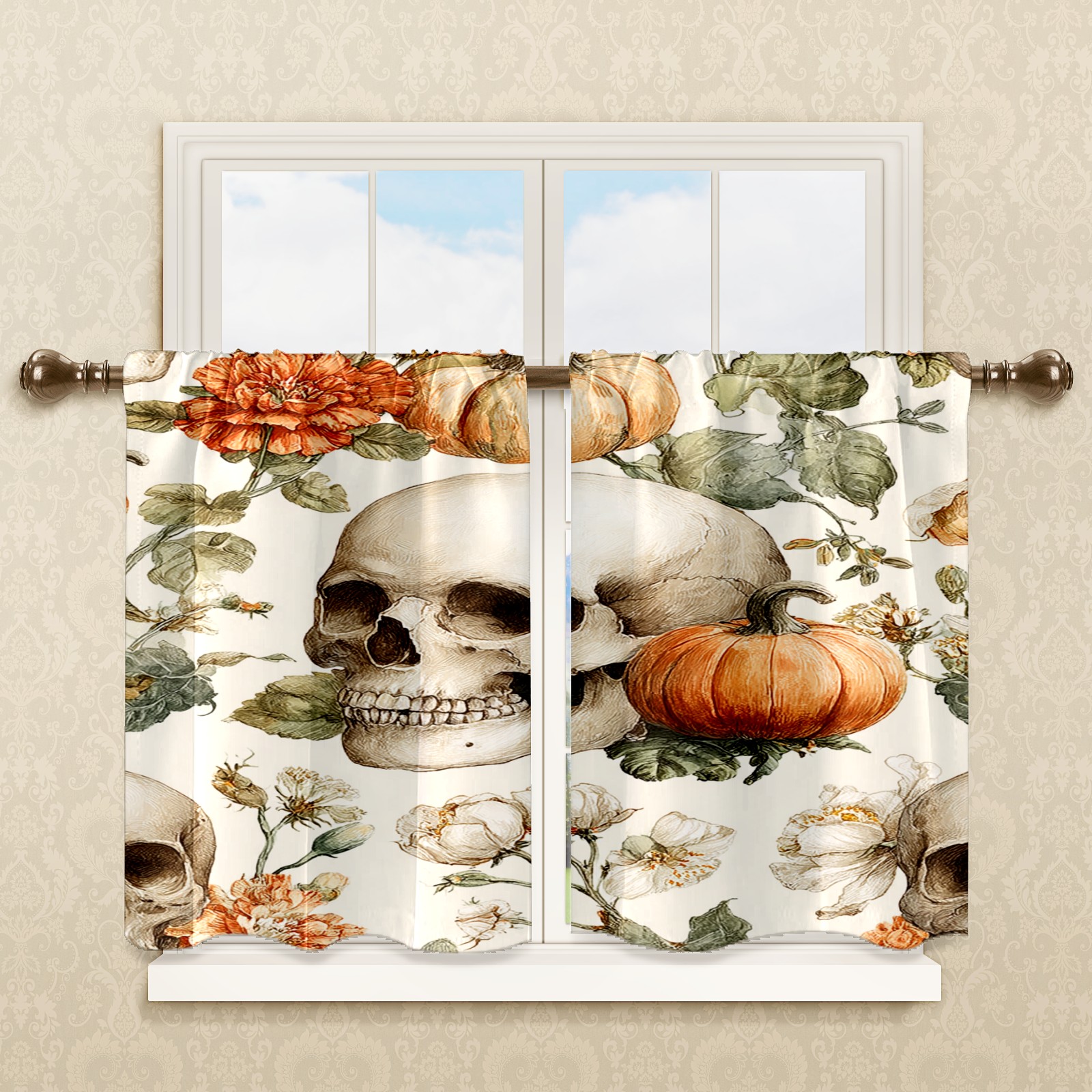 Шторы-панно для дома, декоративные драпировки для гостиной и спальни, легкие и прочные, Beige Skulls Pumpkins