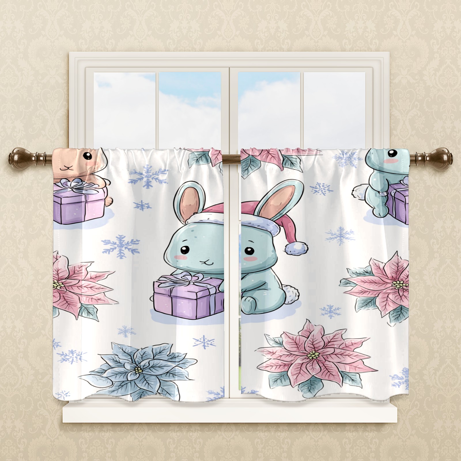 Шторы-панно для дома, декоративные драпировки для гостиной и спальни, легкие и прочные, Blue Bunnies Flowers