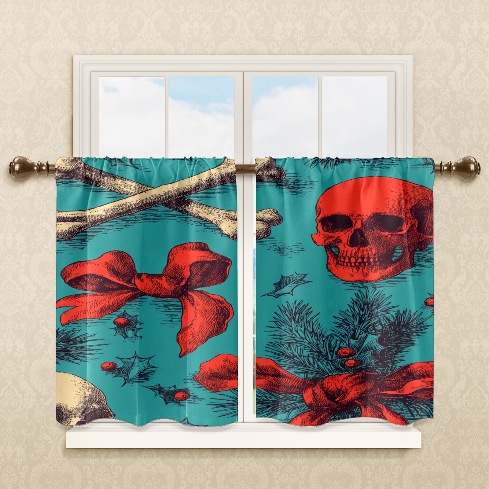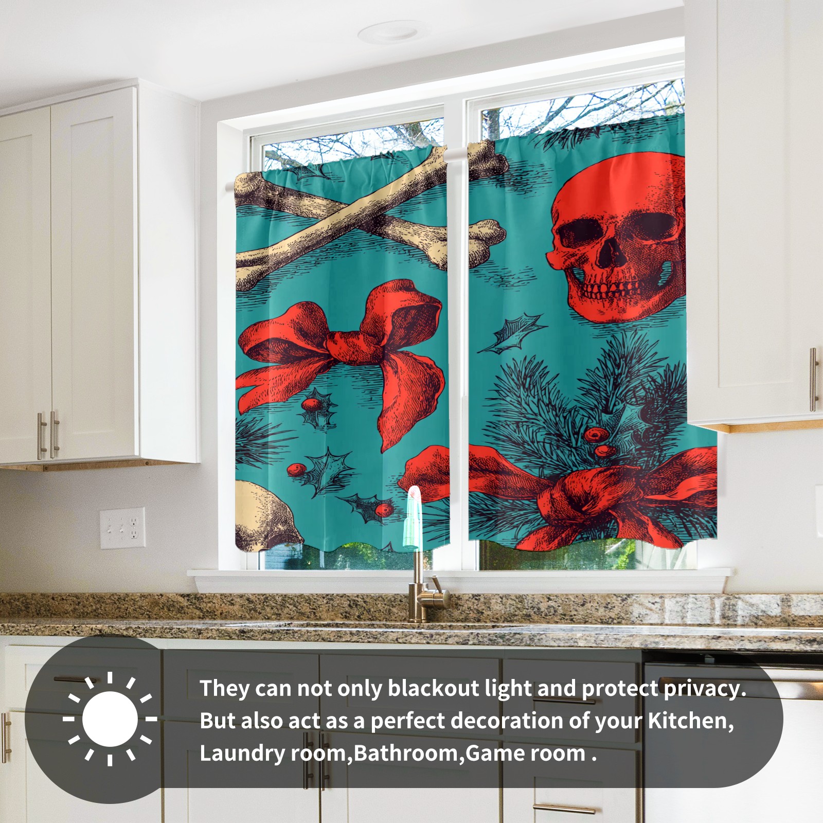 Шторы-панно для дома, декоративные драпировки для гостиной и спальни, легкие и прочные, Teal Skulls Red Bow