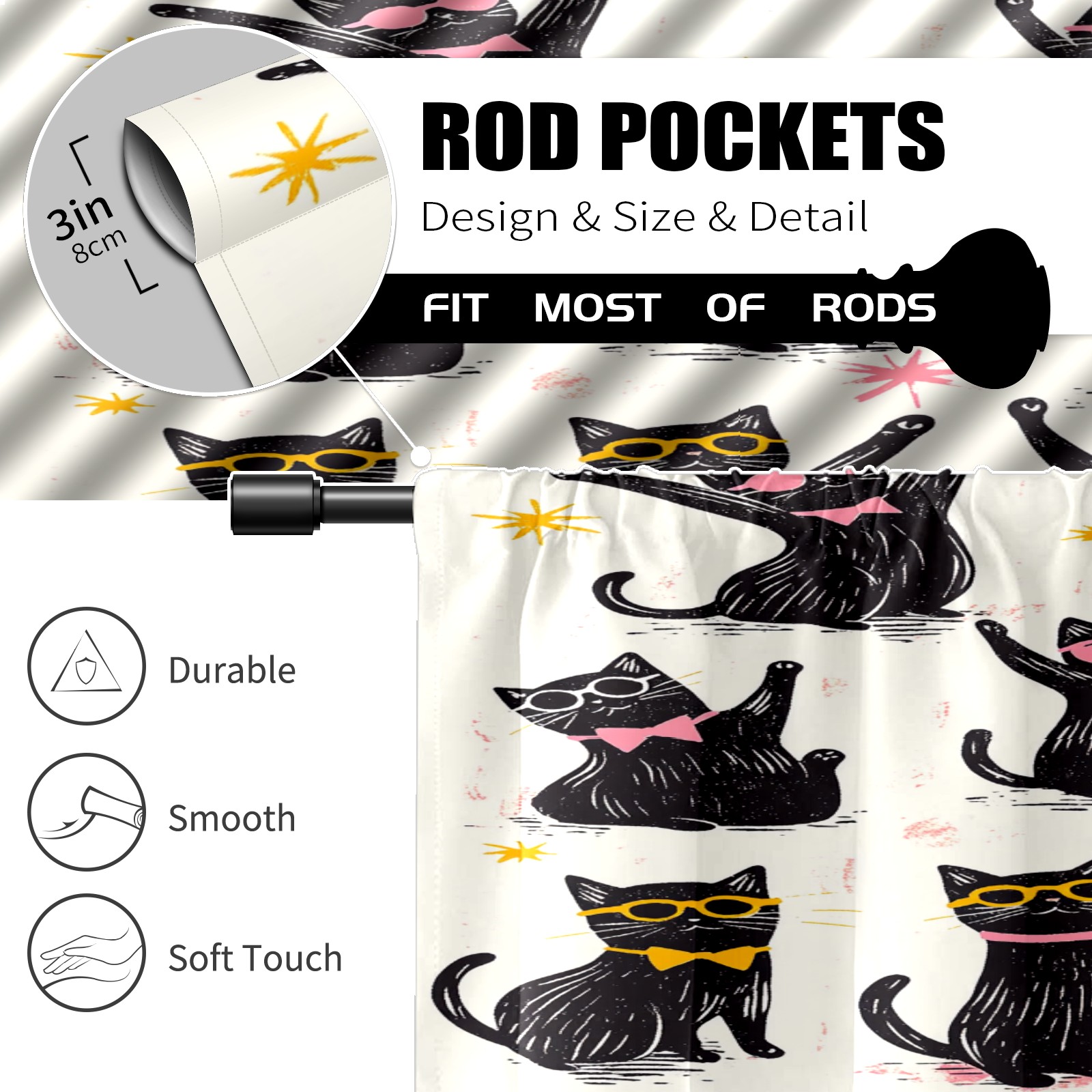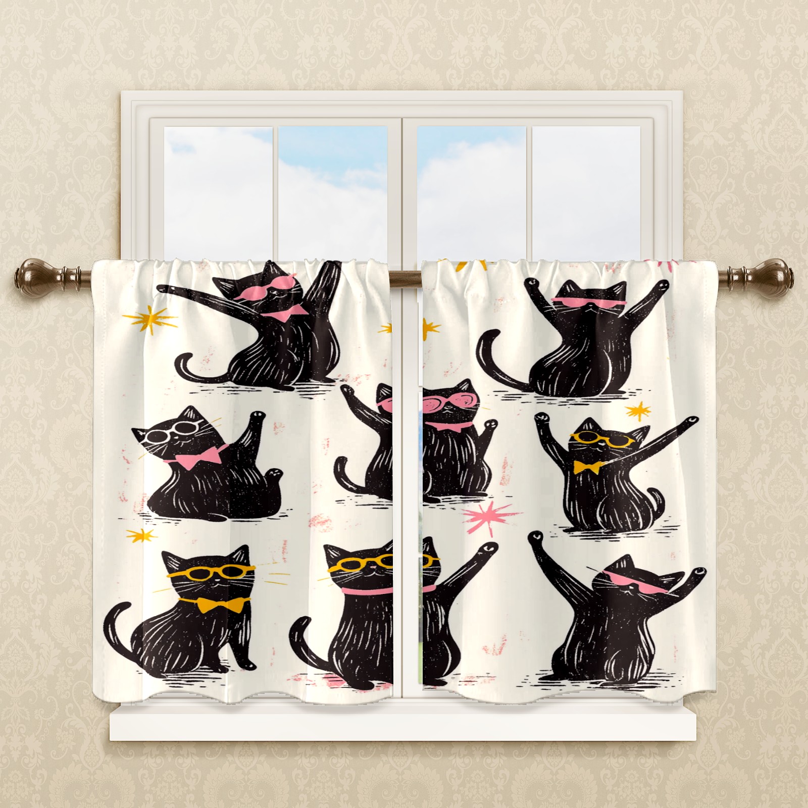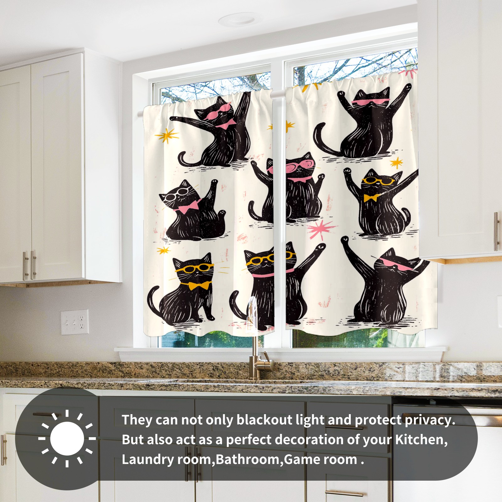 Шторы-панно для дома, декоративные драпировки для гостиной и спальни, легкие и прочные, Black Dancing Cats