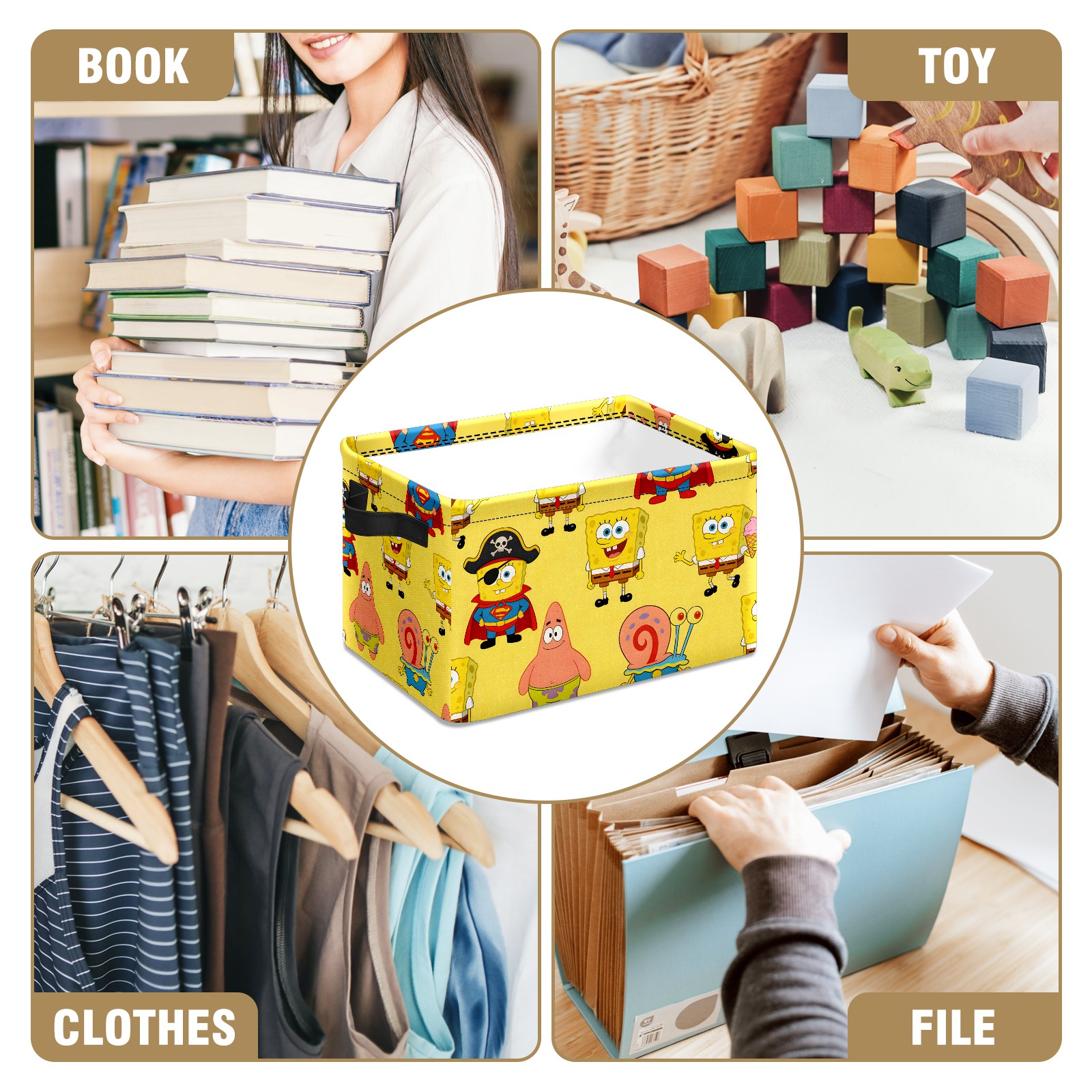 Foldable and Stackable Fabric Storage Basket for Home Organization with Handles, Decorative Closet Bins for Shelves and Laundry Storage( 创作经典IP图 (61))