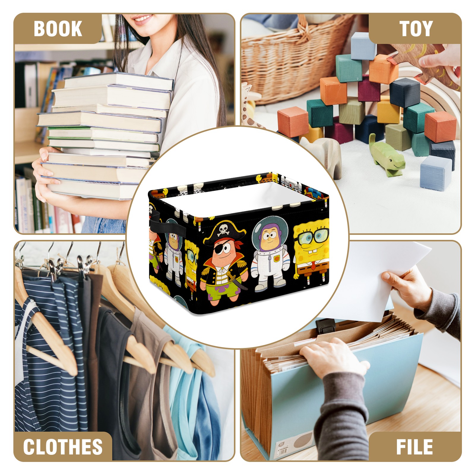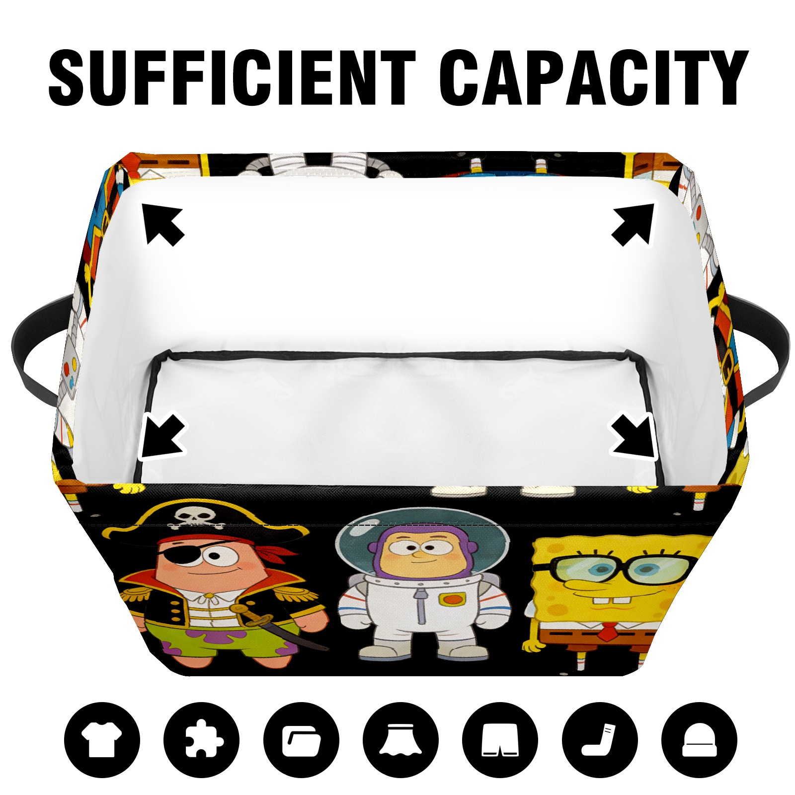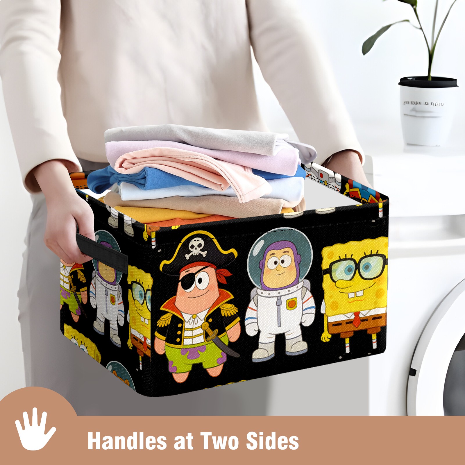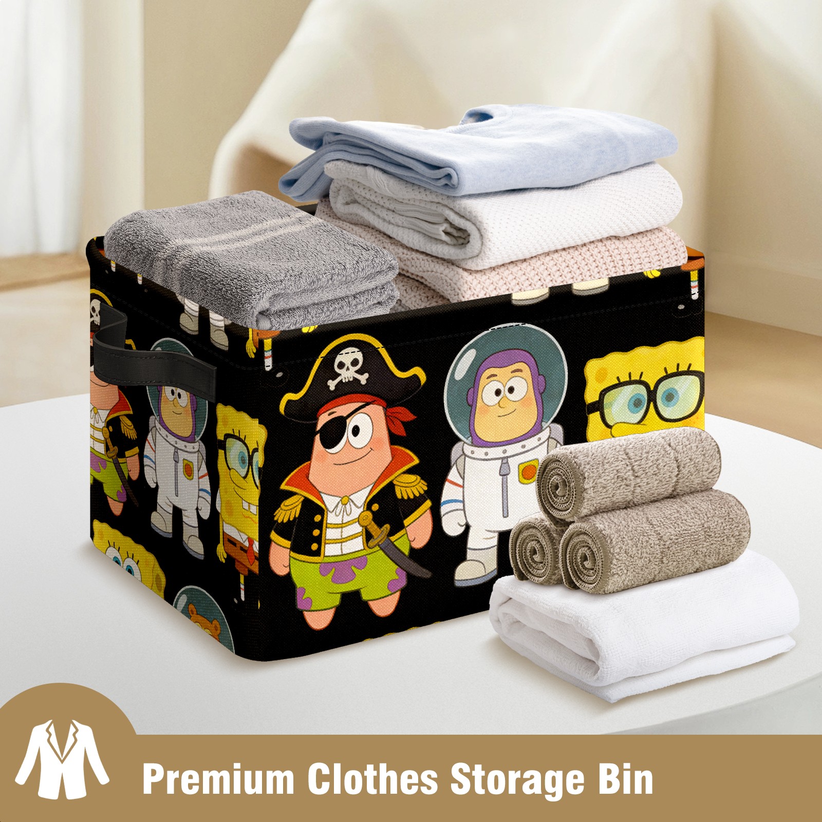 Foldable and Stackable Fabric Storage Basket for Home Organization with Handles, Decorative Closet Bins for Shelves and Laundry Storage( 创作经典IP图 (59))