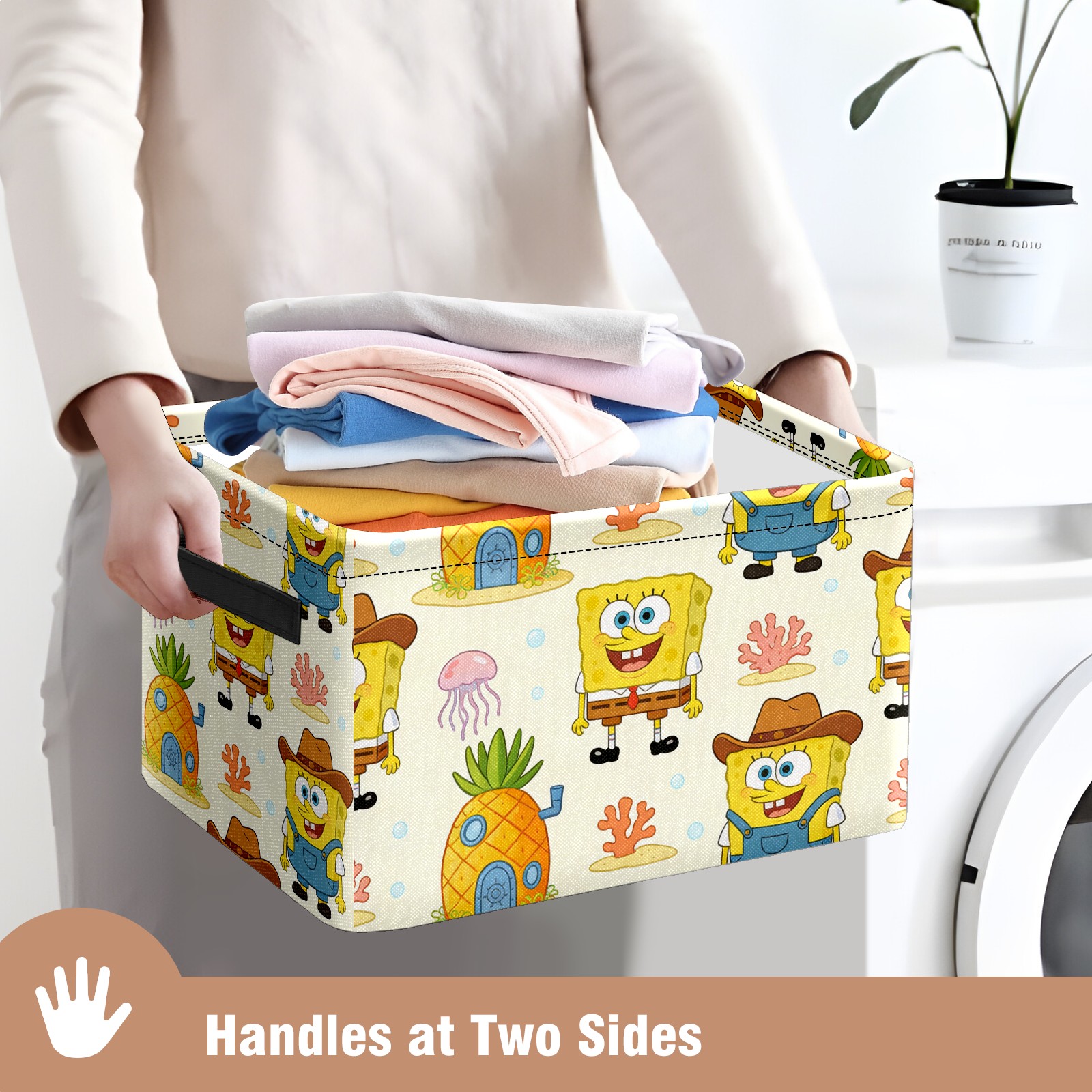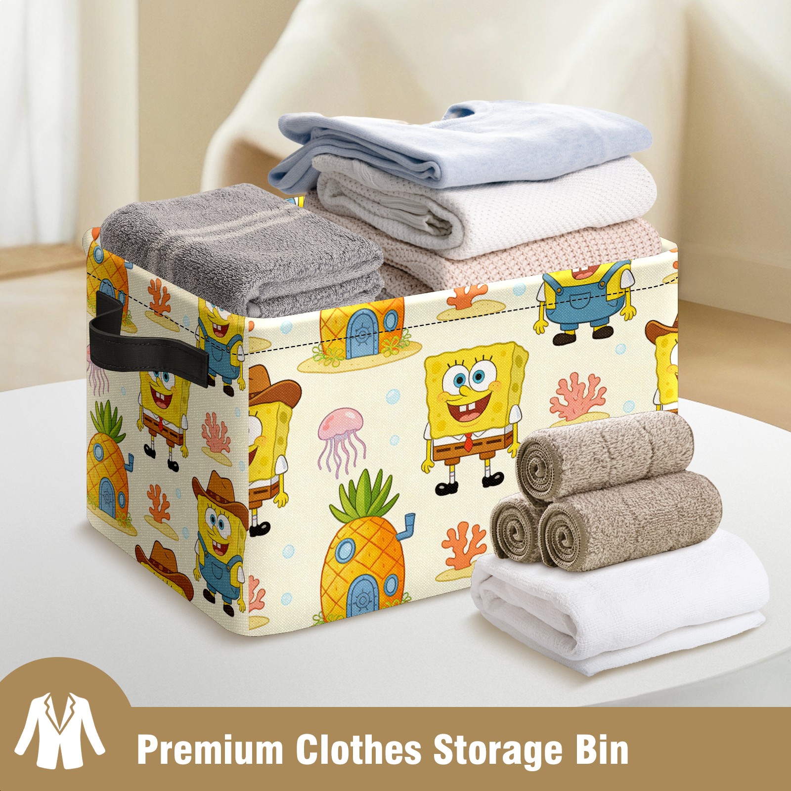 Foldable and Stackable Fabric Storage Basket for Home Organization with Handles, Decorative Closet Bins for Shelves and Laundry Storage( 创作经典IP图 (42))